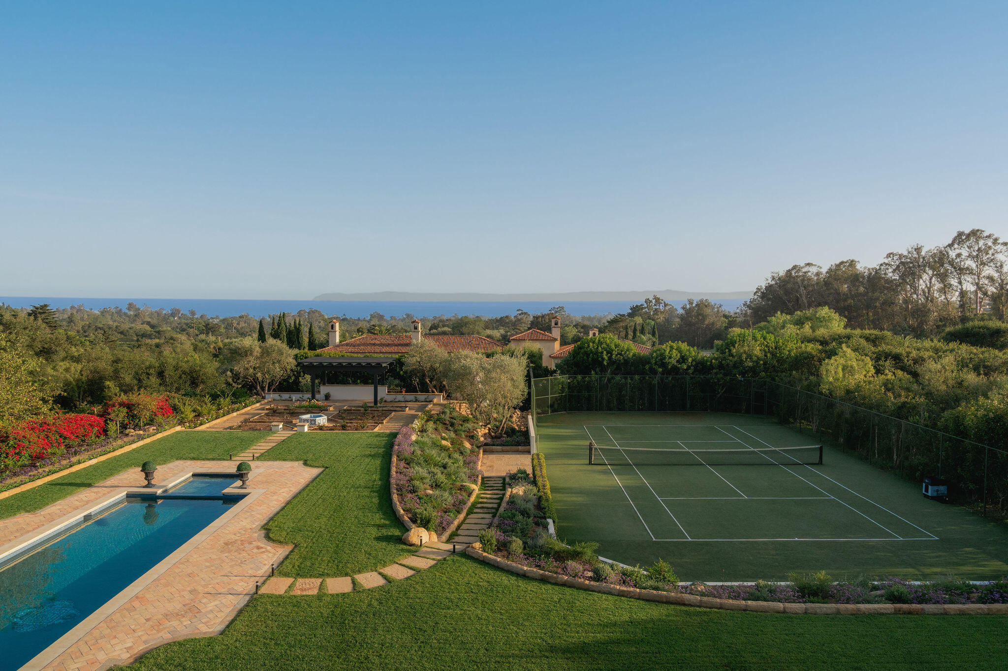 Epic views span the horizon at this newly refreshed Montecito estate, where scale and effortless elegance align. Flat, usable grounds and thoughtful design create a home that lives as beautifully as it presents, with nearly all rooms opening to vast ocean views. The Spanish Colonial-inspired residence has been reimagined with a refined modern sensibility, featuring arched passageways, expansive verandas, and Venetian plaster interiors. The home offers four bedroom suites on one level, including a luxe primary suite, along with formal and casual living spaces anchored by a sunlit kitchen/great room. A guest apartment, gym, game room, and nearly two acres with pool/spa, tennis court, and gardens complete this private Upper Village offering.