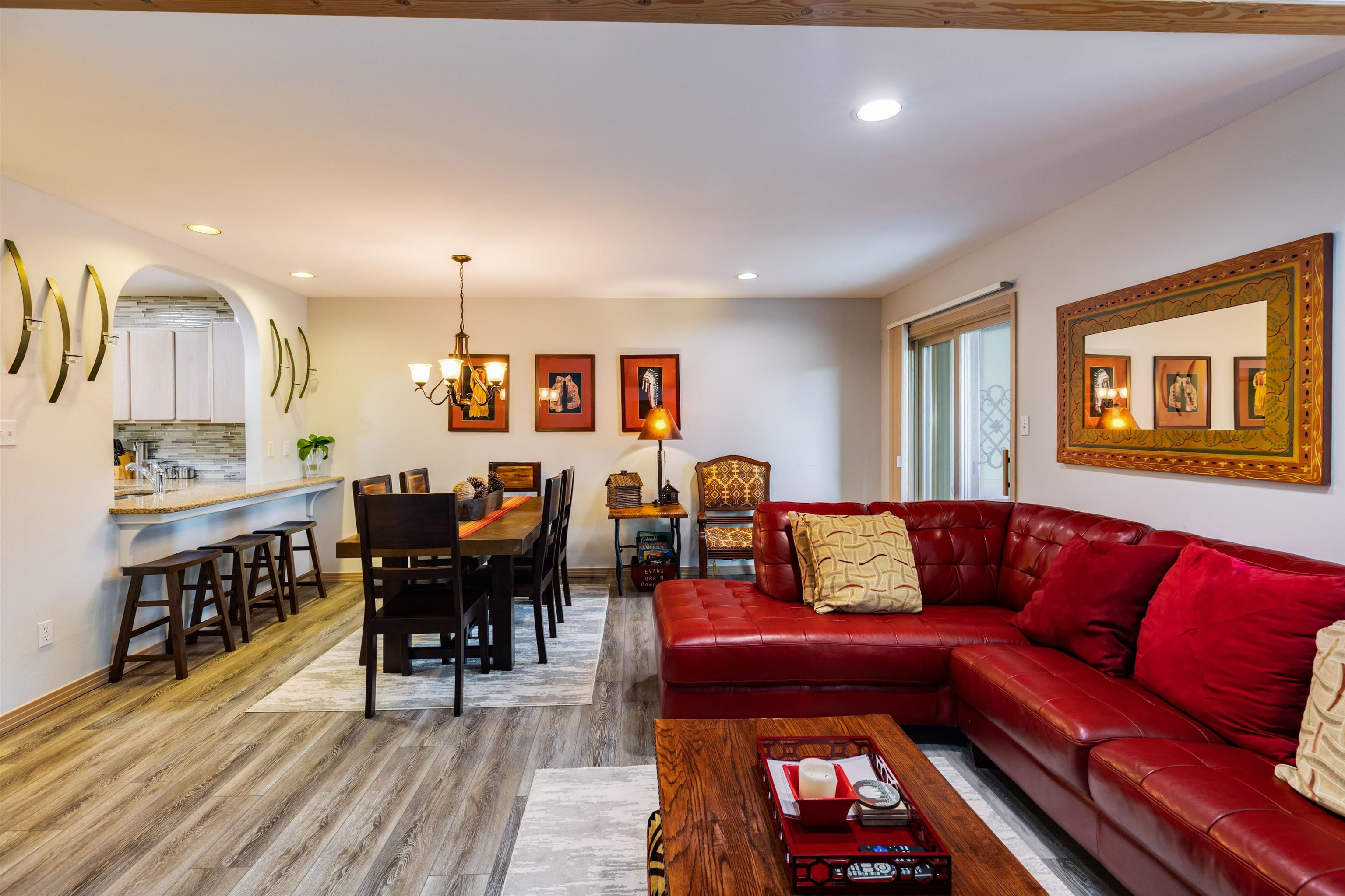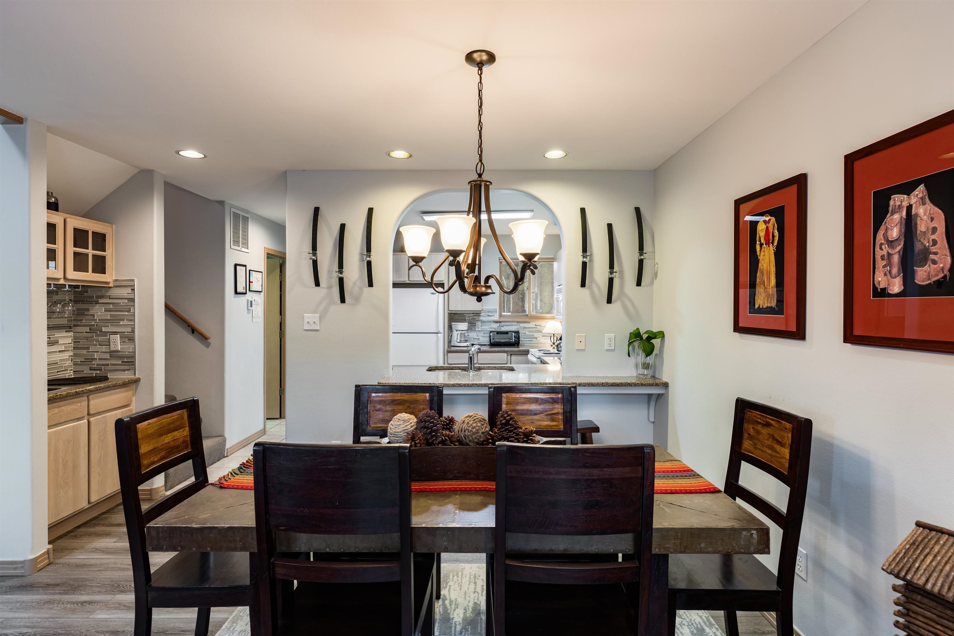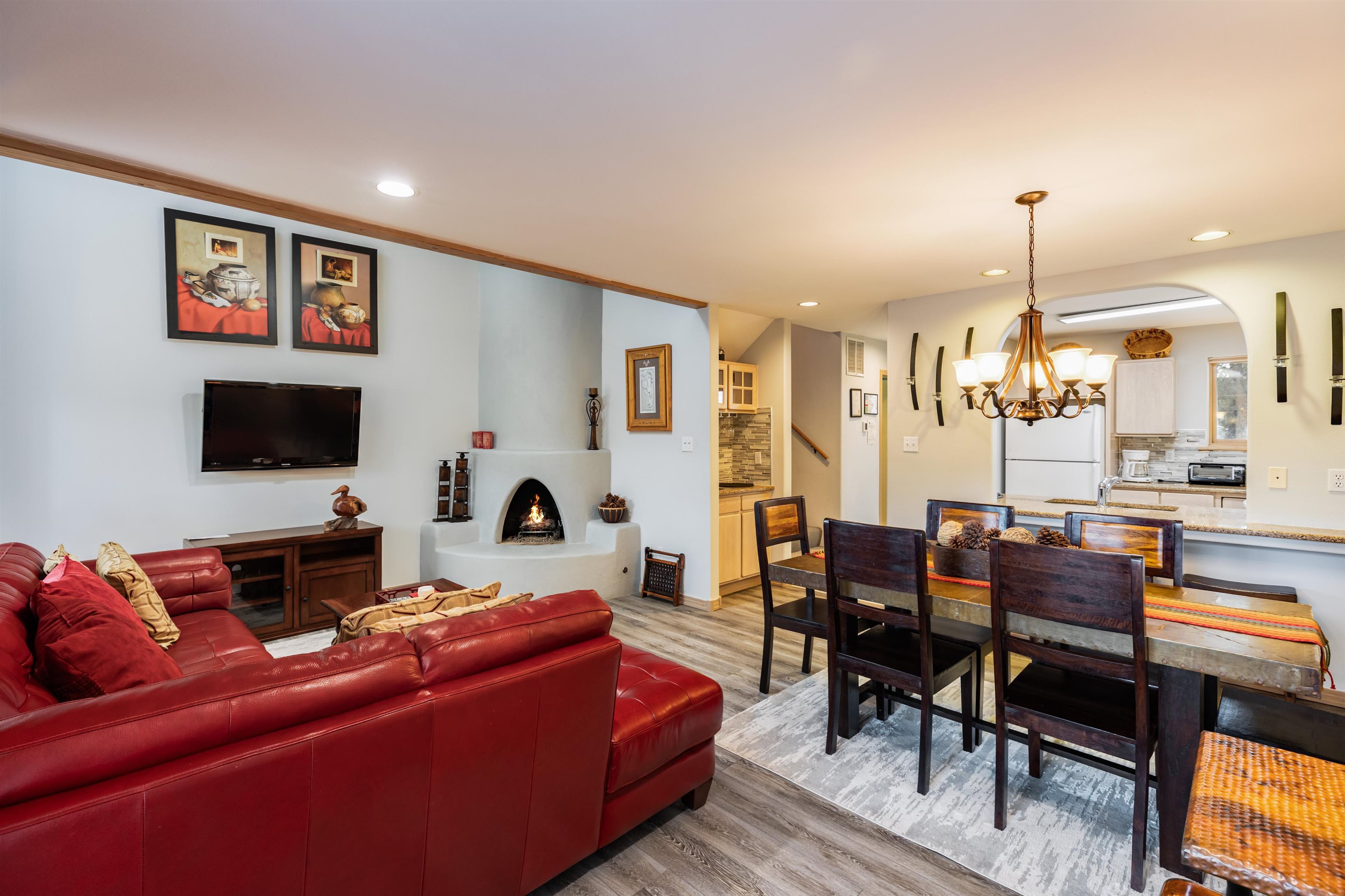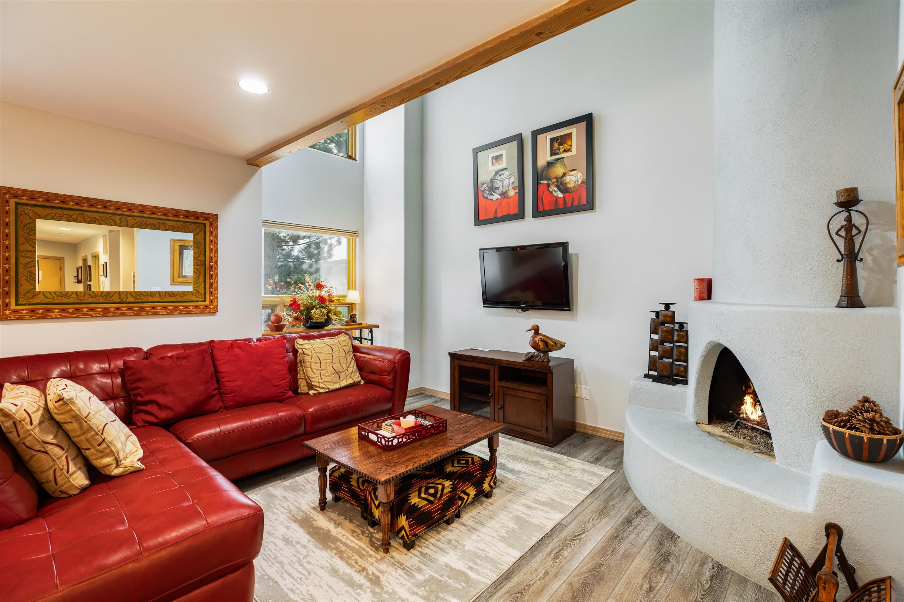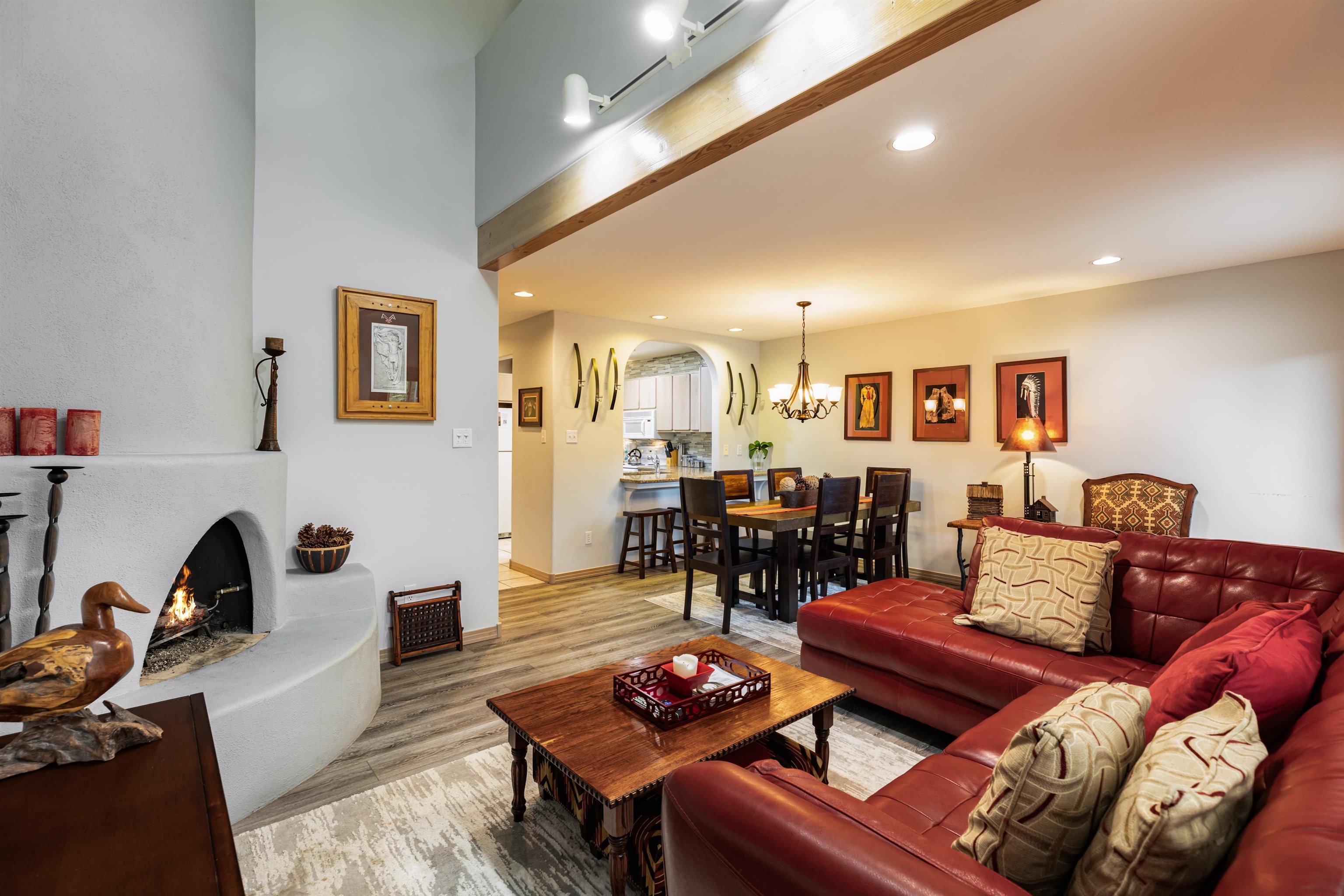 Discover effortless alpine living in this well designed contemporary townhouse, well positioned in the heart of Angel Fire, New Mexico. This two-story, two-bedroom, two-and-a-half-bath residence offers the rare combination of modern design and an unbeatable location - it is walking distance from the main ski lift and on the shuttle line; nearby the town center, restaurants, and year-round recreational amenities. From the moment you arrive, clean architectural lines, expansive windows, and a modern fa ade set the tone. Inside, an open-concept main level features soaring ceilings, wood flooring, and ample windows that provide the home with natural light. The well appointed kitchen is outfitted with granite countertops, stainless steel appliances, custom cabinetry, and a passthrough that flows seamlessly into the dining and living areas. The living room area is anchored by a gas fireplace perfect for apr s-ski evenings. An entry hall powder room completes the main floor for effortless entertaining. Upstairs, the serene primary suite offers mountain vistas and a private sanctuary, an en suite bath featuring a walk-in shower and ample closet space. A second well-appointed bedroom enjoys its own full bath - ideal for family, guests, or a dedicated home office. Step outside to a private deck made for morning coffee, evening cocktails, and soaking in crisp mountain air. When adventure calls, you're only minutes from world-class skiing and snowboarding at Angel Fire Resort, plus mountain biking on the best lift served bike park in the Southwest. In addition there is hiking over miles of resort maintained trails, fly-fishing, championship golf, and the sparkling waters of Monte Verde Lake and nearby Eagle Nest Lake. Stroll to the Resort Hotel Restaurant, drive to the Country Club for indoor swimming, golf, a lively restaurant/bar, or return home to your quiet, low-maintenance haven with an HOA paid Internet connection, after an exciting day of challenging recreation. Whether you're seeking a turnkey full-time residence, a vacation rental, or the ultimate mountain getaway, this contemporary Angel Fire townhouse delivers elevated living in every season. Adventure, comfort, and style - right at your doorstep. This property is sold fully furnished and ready to move in. Schedule your private showing today.
