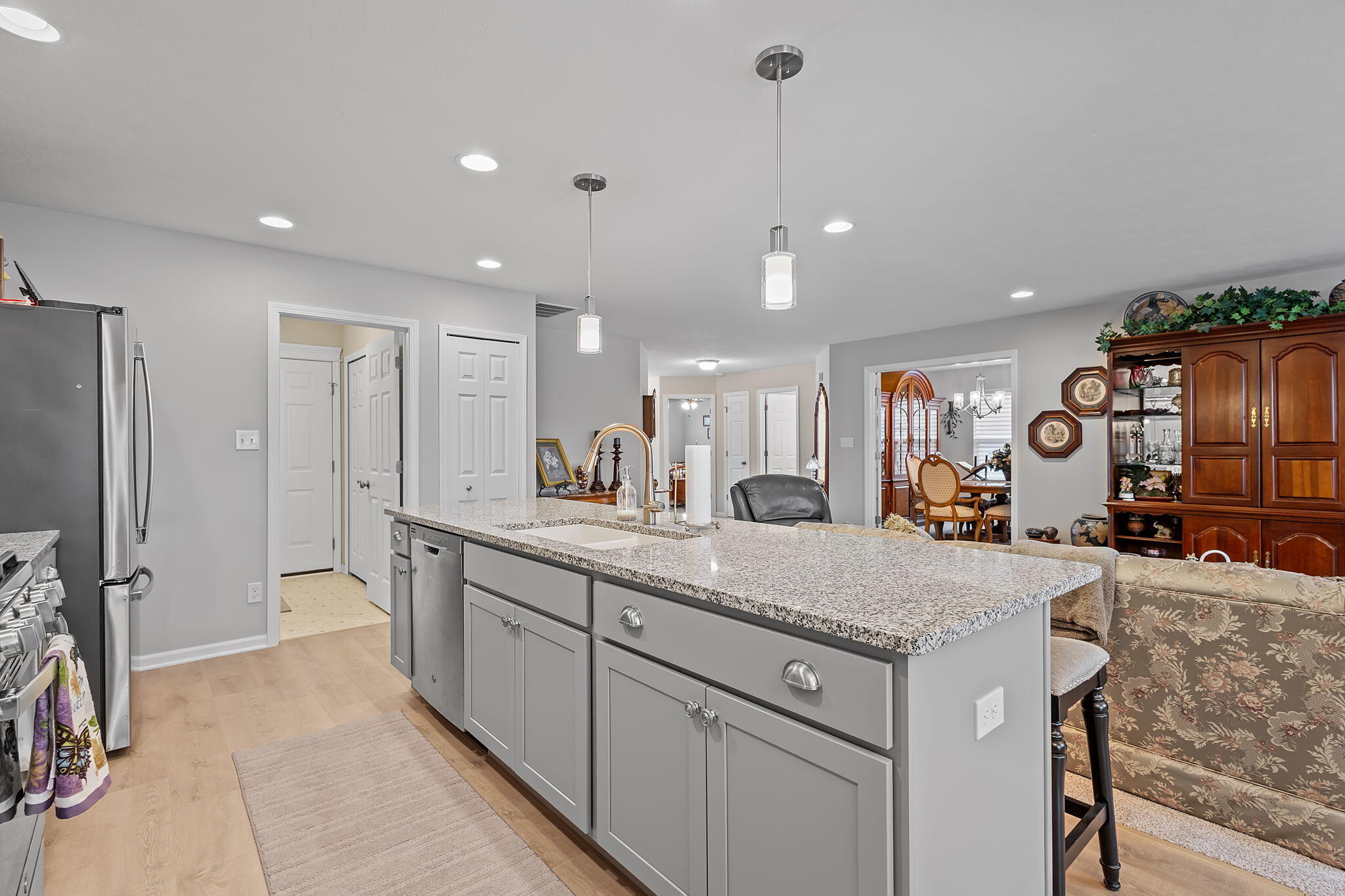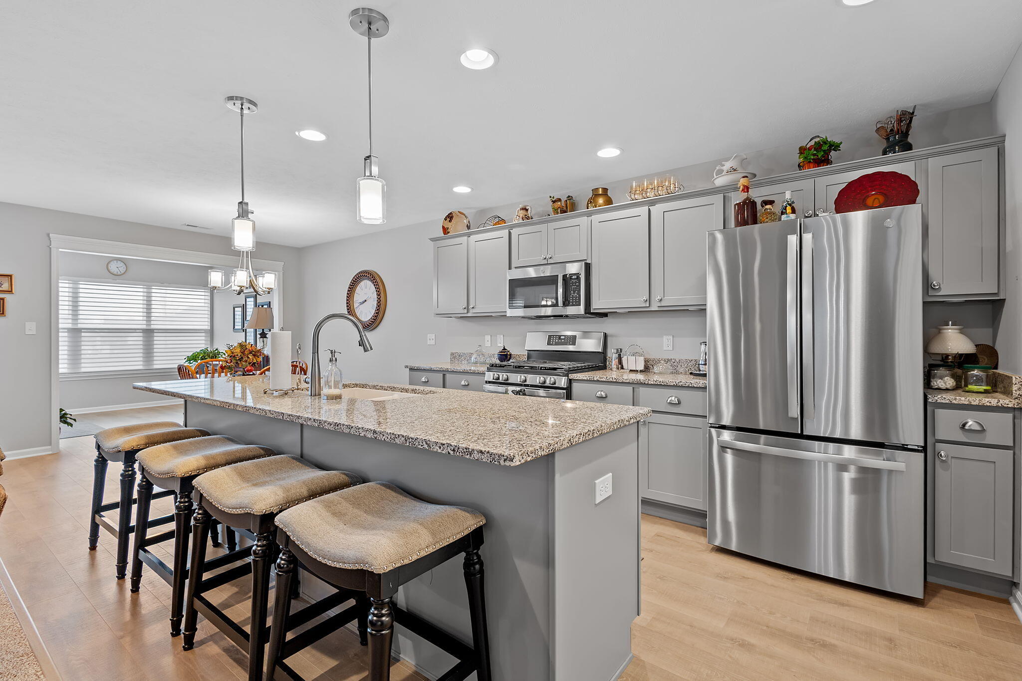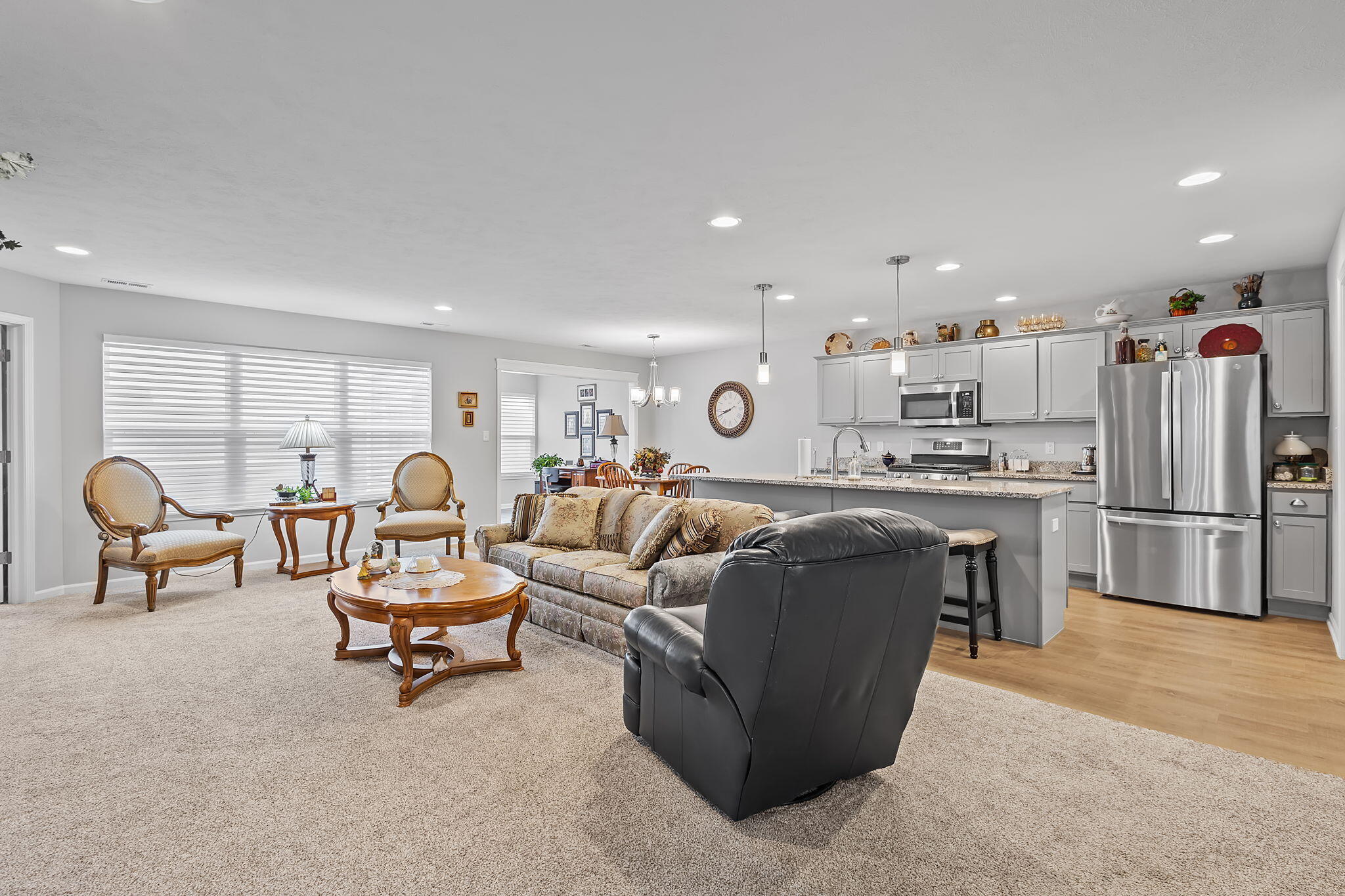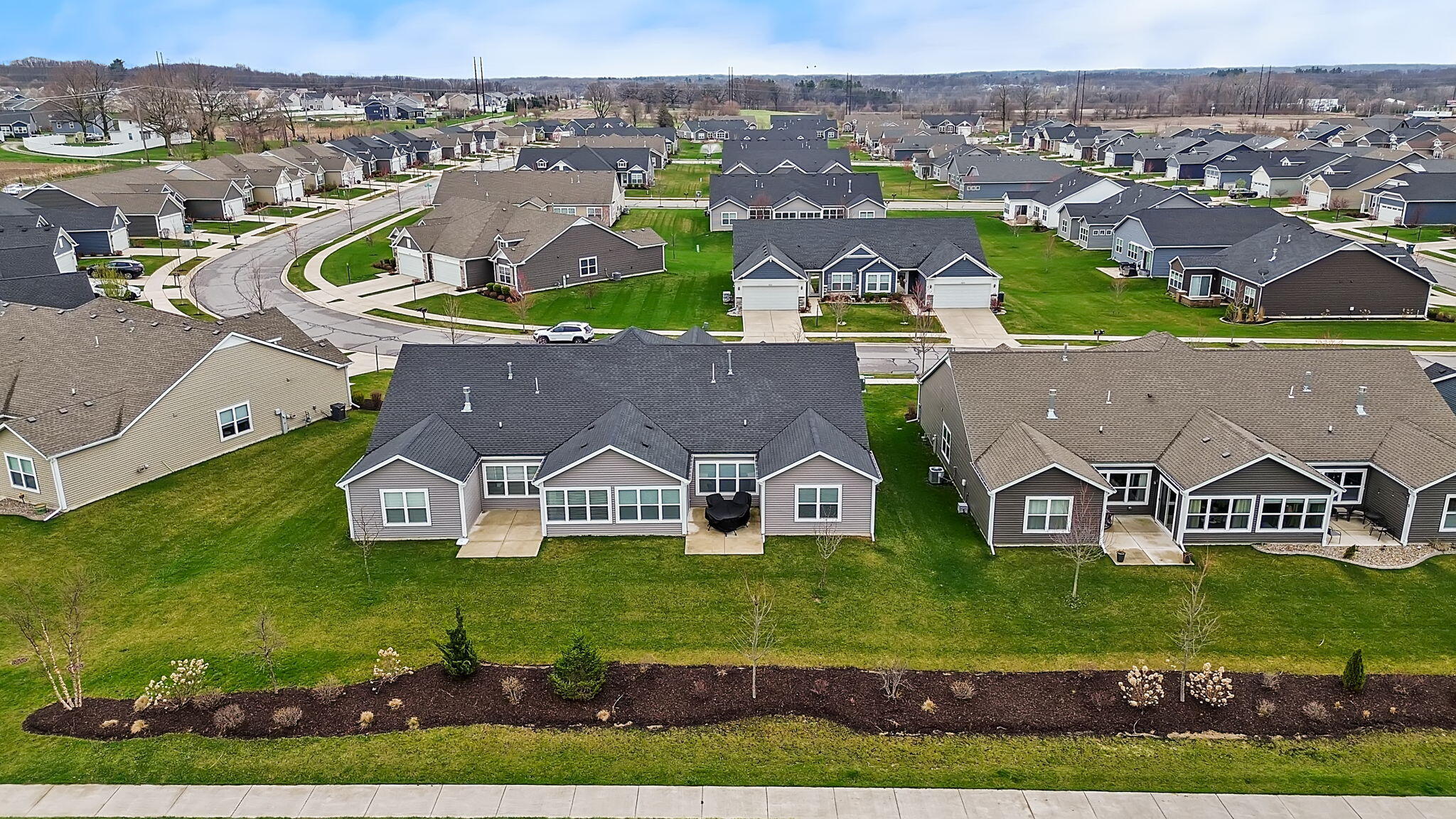 Discover your dream home! This immaculate, maintenance-free duplex features a spacious ranch floor plan enhanced with exquisite upgrades, making it perfect for modern living. The highly sought-after Brighton floor plan includes two generous bedrooms and two full bathrooms, along with a versatile flex room with elegant French doors, ideal for a den, home office, or formal dining area. The spacious open concept living space offers large living room and a stunning kitchen that boasts painted cabinets, luxurious granite countertops, a sizable island, and stainless steel appliances. The owner's suite is a true retreat, featuring an en-suite bath complete with a double vanity, a walk-in shower, and a walk-in closet. Enjoy additional living space in the sunroom--a tranquil spot that can serve as an office, cozy sitting area, or extra dining space--conveniently located off the eat-in kitchen with easy access to your private patio. For easy living, enjoy the benefits of an irrigated lawn, with mowing and snow removal taken care of for you! This home includes upgraded trim, fixtures, and thoughtful details throughout, ensuring a stylish and comfortable lifestyle. Benefit from energy-efficient living with a third-party certified energy rating and a ten-year structural warranty.