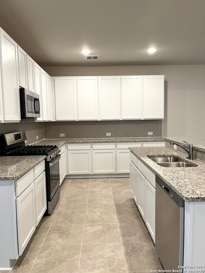 Built in 2022, this beautiful one-story home in the Notting Hill subdivision offers 1,908 sq. ft. of comfortable living space. The layout includes 3 bedrooms, 2 bathrooms, and a versatile bonus room perfect for a home office or study. The kitchen is a standout feature, boasting abundant cabinet space, granite countertops, and a convenient breakfast bar for additional seating. A split-bedroom floor plan provides added privacy, while the spacious primary suite includes an oversized soaking tub and a separate walk-in shower. Enjoy both a formal dining area and a large living space, ideal for entertaining or relaxing. Step outside to a covered back patio, perfect for outdoor gatherings. Conveniently located with easy access to Loop 1604 and IH-10, and just a short drive to Randolph Air Force Base.