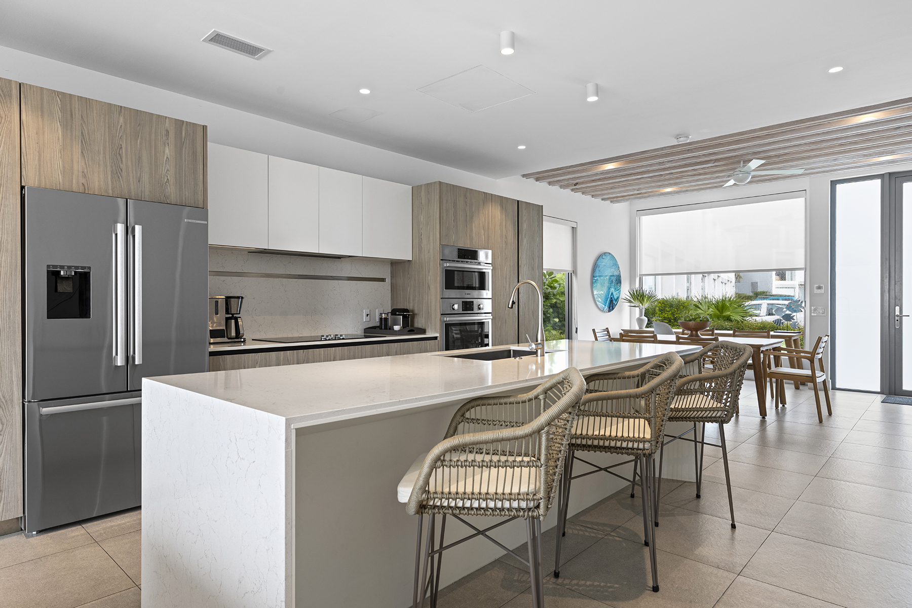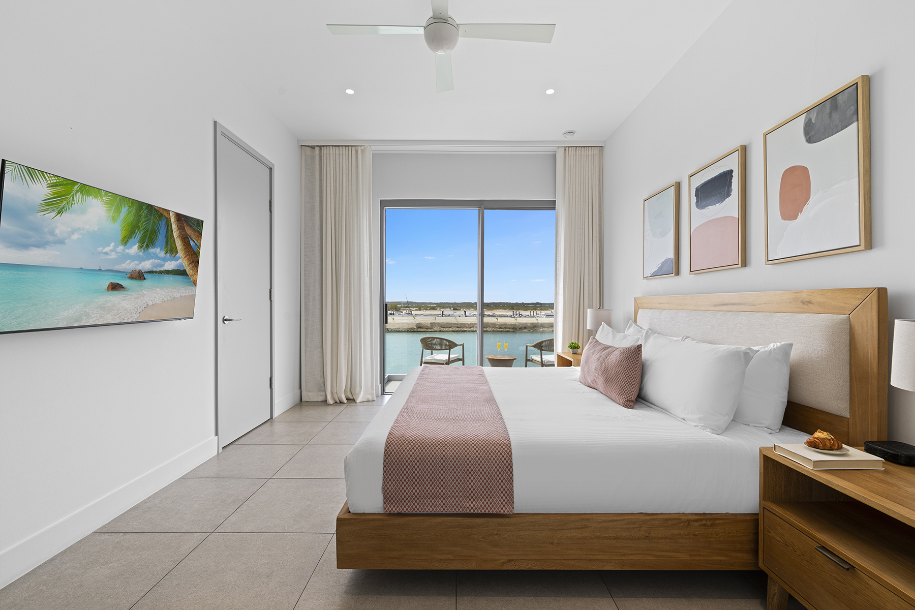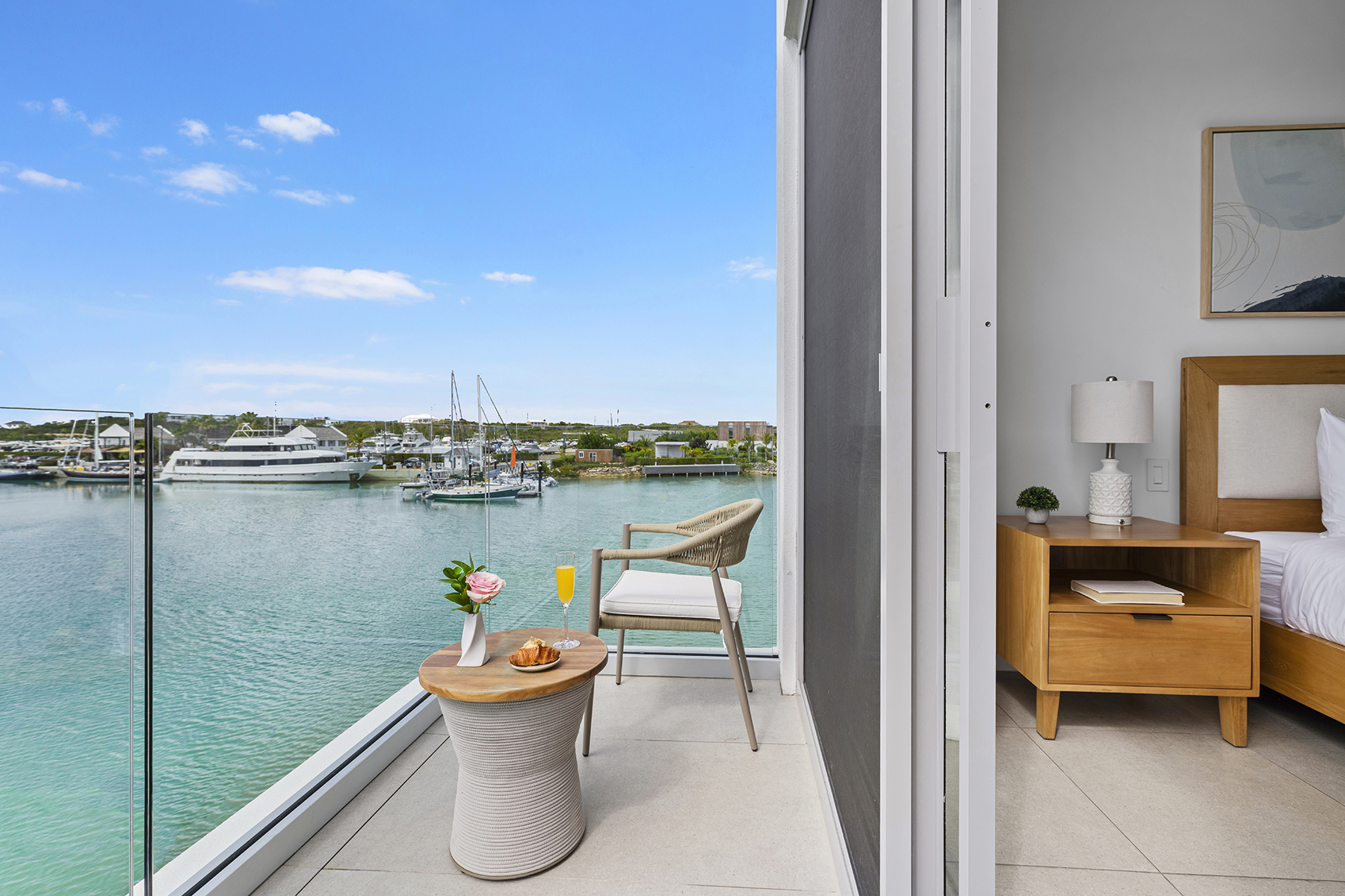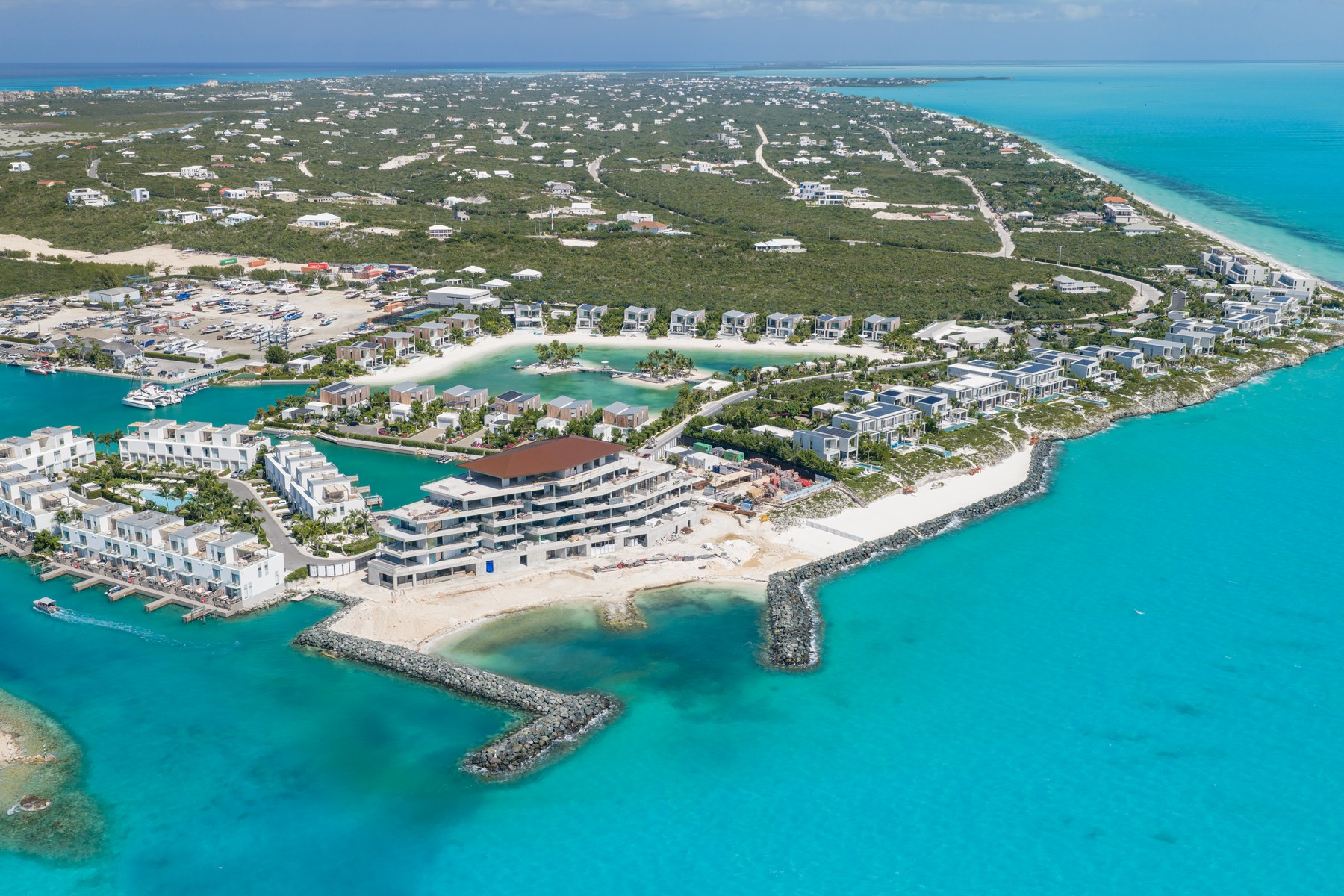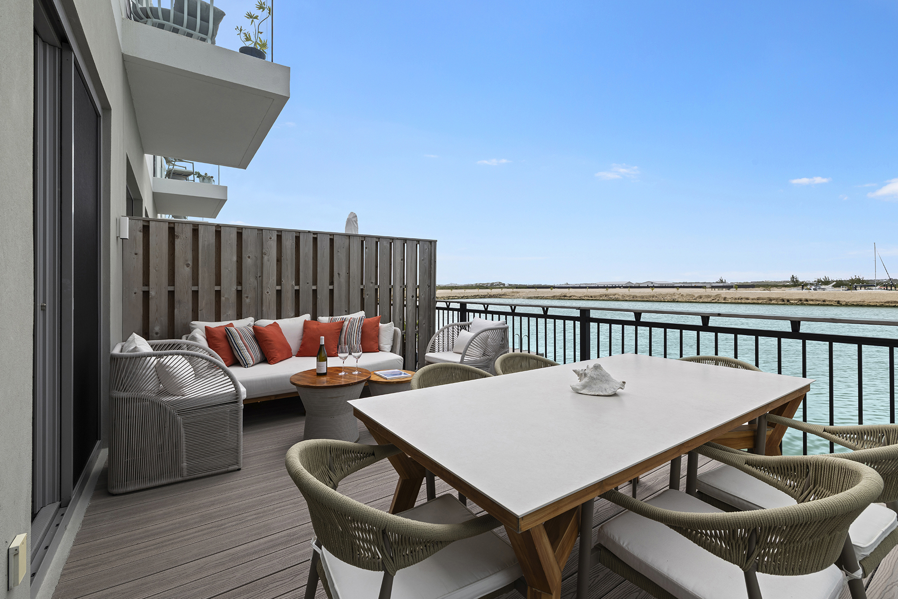 Welcome to C5, the only Boathouse available within low-density Building C. This waterfront two-bed + rooftop terrace enjoys waterfront views overlooking the Caicos Marina as well as sunset views from the rooftop over the salina and ocean. Offering 2,742 SF of gross living space on two levels and a rooftop terrace complete with wet bar and fridge, plumbing for a future hot tub, pergola and glass balustrades, C5 is a boat lover’s dream. The living/dining area as well as the contemporary Italian designed Arclinea kitchen enjoy additional sunlight through large format German engineered Shuco windows due to the prime corner position. Bosch appliances complete the elevated kitchen space, and the outdoor dining terrace provides an additional opportunity to enjoy al fresco living. A convenient lower terrace for easy boat/water access and water toy storage includes 4 SUP boards, a boat lift for boats up to 27-foot boat as well as floating dock. A 21-foot Hewes Red Fisher 2025 is available for separate purchase. The second level comprises two beds – the primary is waterfront – both with en-suite baths, spacious closets and terraces. A staircase leads up to a 3rd floor rooftop featuring stunning elevated water views. Ownership at the Launch includes private use of the central pool and entertainment area featuring hammocks, bar, BBQ stations, and loungers, as well as access to all South Bank amenities, such as the spa, Lua restaurant, Lagoon lounging islands, fitness center, Long Bay beach, and additional restaurant, pool and beach area upon completion of Arc. Management & services are provided by Grace Bay Resorts of iconic Grace Bay Club and its Private Residences Collection. Performing exceptionally in the rental program, please request a copy of the financials.