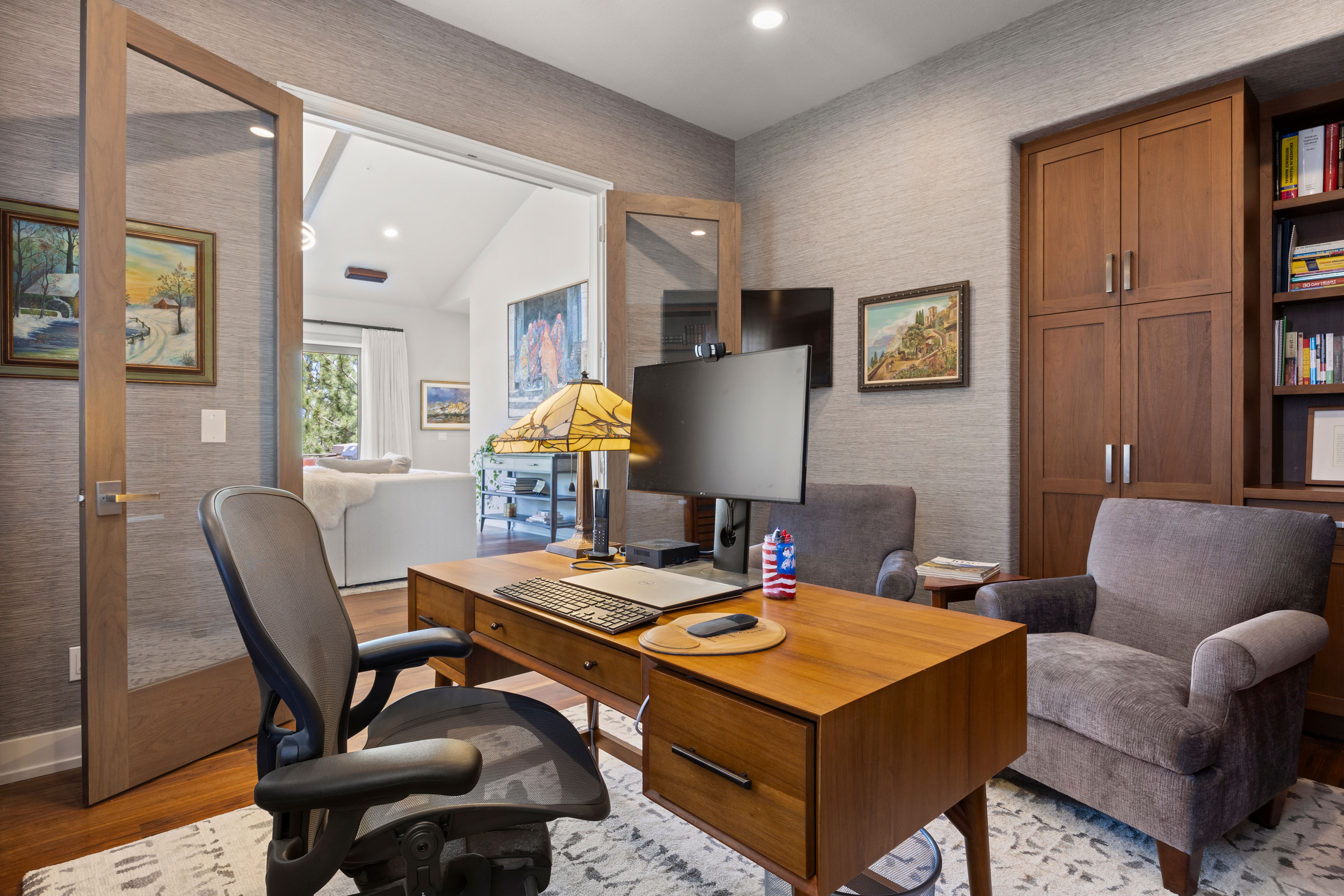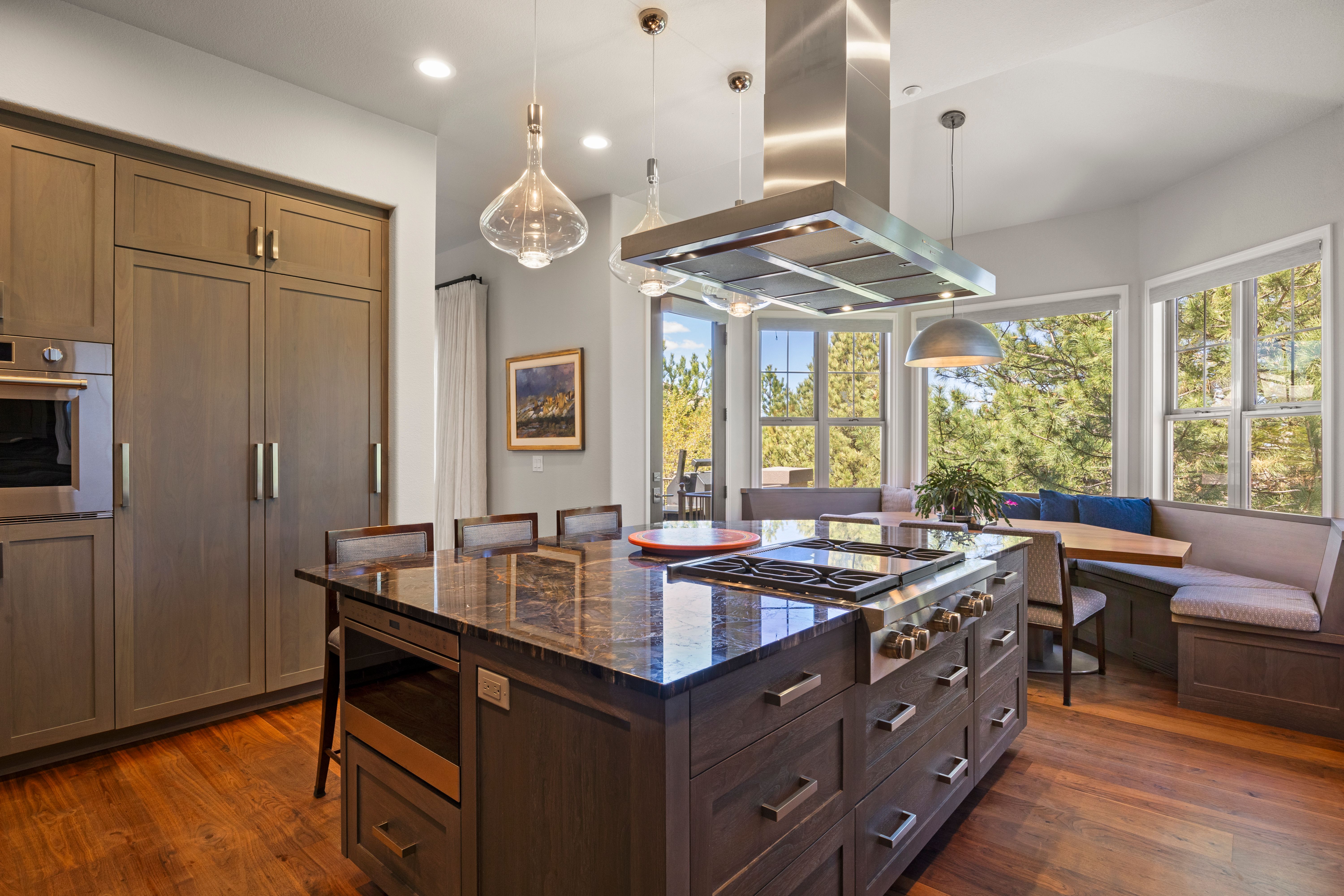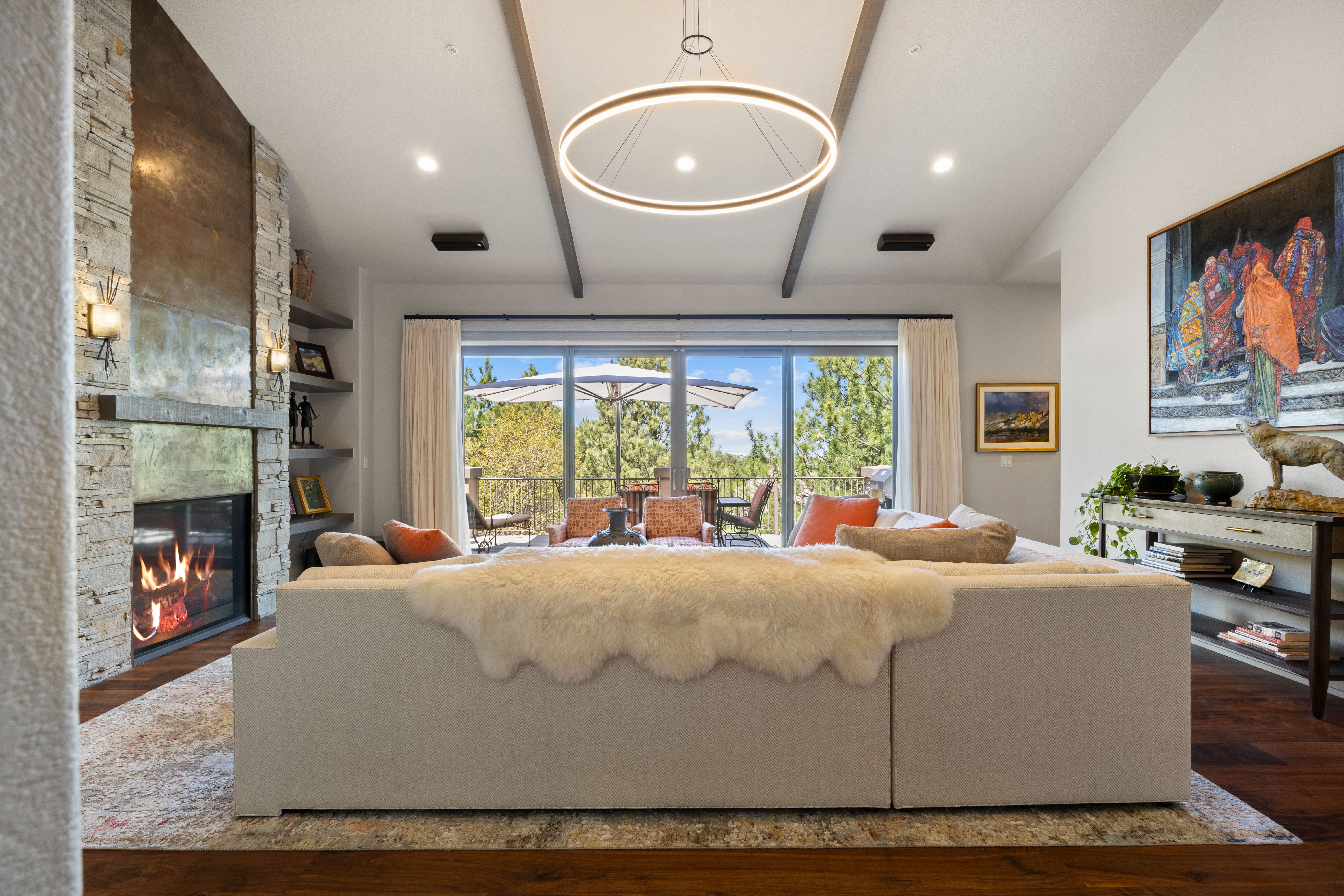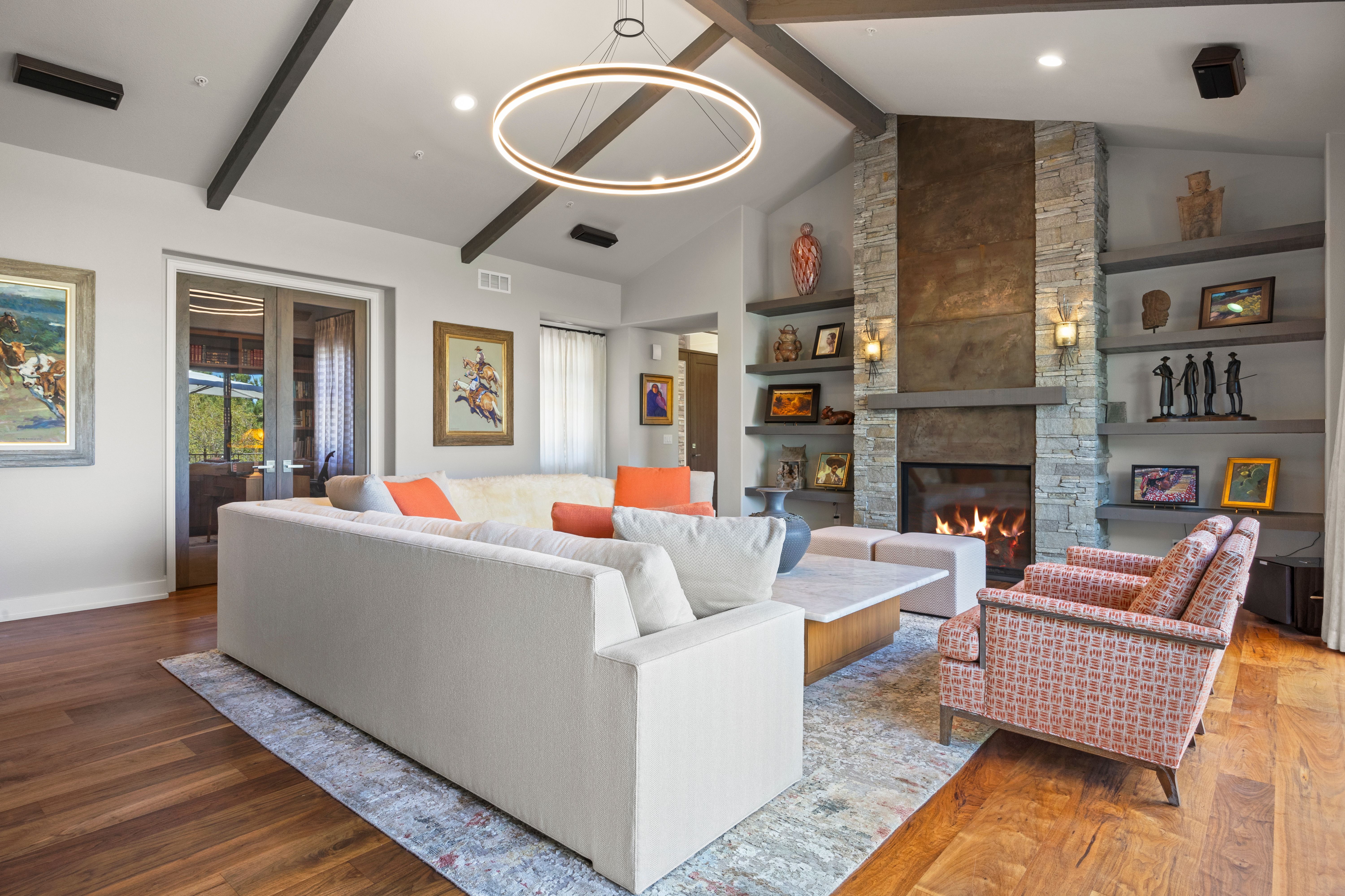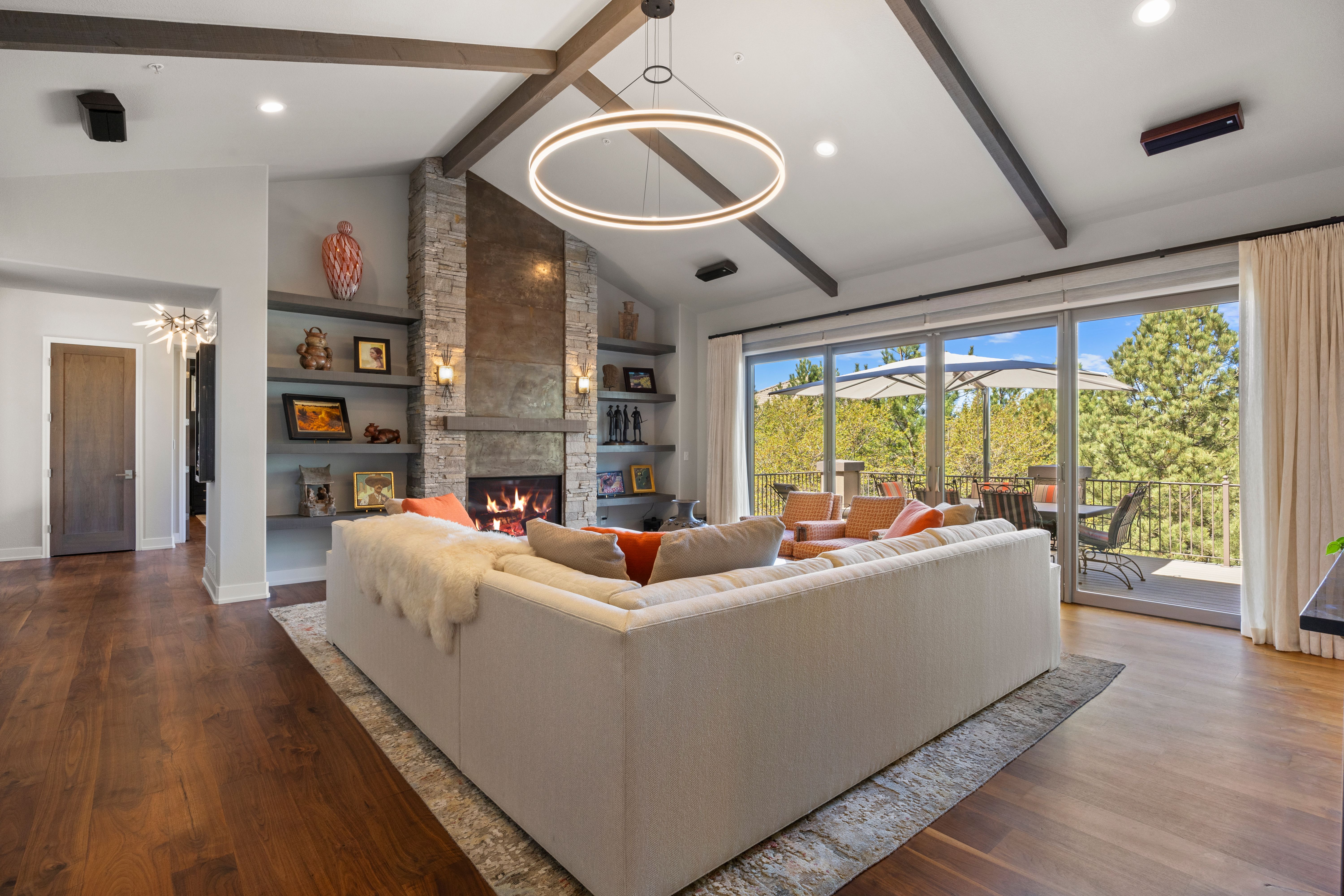 Completely reimagined and meticulously updated, this exceptional residence in The Village at Castle Pines showcases remarkable quality, craftsmanship, and sophisticated design at every turn. Every surface has been thoughtfully transformed with top-of-the-line finishes, creating a home that feels both luxurious and inviting, with light-filled spaces and timeless style throughout. The main level is designed for effortless living and entertaining, featuring stunning walnut floors, soaring cathedral ceilings with architectural beams, and expansive windows and sliding glass doors that open to a private deck with glimpses of mountain views and serene pine tree surroundings. The beautifully appointed kitchen is truly the heart of the home, offering premium appliances, custom cabinetry, and an inviting dining area perfectly suited for both everyday living and memorable gatherings. A richly appointed executive-style office, elegant dining room, and well-designed mudroom and laundry area add both comfort and functionality. The main-floor primary suite is a luxurious retreat, complete with a cozy fireplace, bay window, spa-inspired bath, and generous walk-in closets with custom built-ins. The fully finished lower level continues the home’s exceptional design, featuring high ceilings, a spacious family room with fireplace, and seamless indoor-outdoor living with direct access to a patio with dry below covering and beautifully private yard. A well-equipped entertaining bar, multiple guest bedrooms, and abundant storage provide flexibility for hosting family and friends. Situated on a quiet cul-de-sac with a three-car garage, this home offers a rare combination of refined elegance and everyday livability—all within the gated community of The Village at Castle Pines, known for its natural beauty, privacy, and premier amenities.