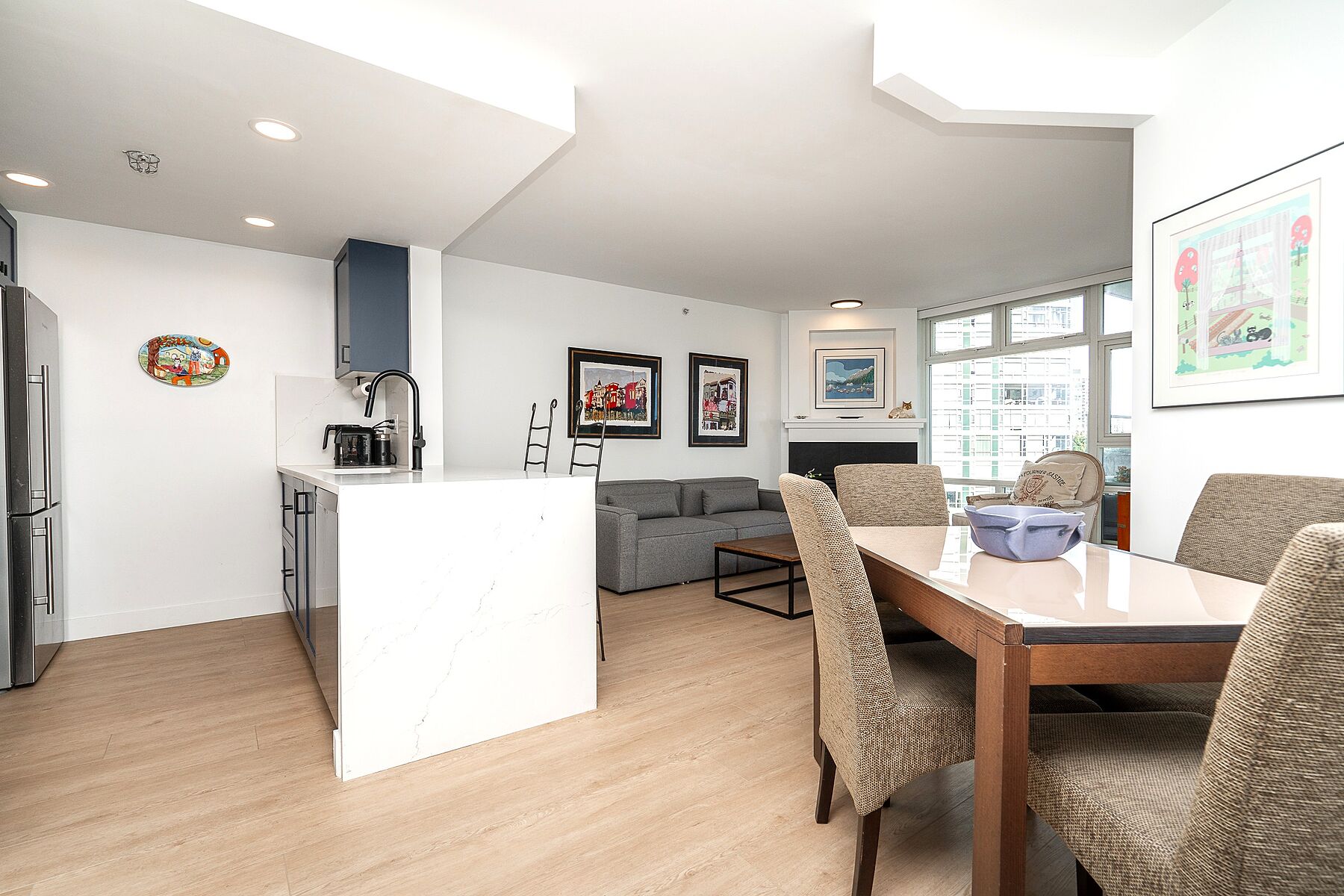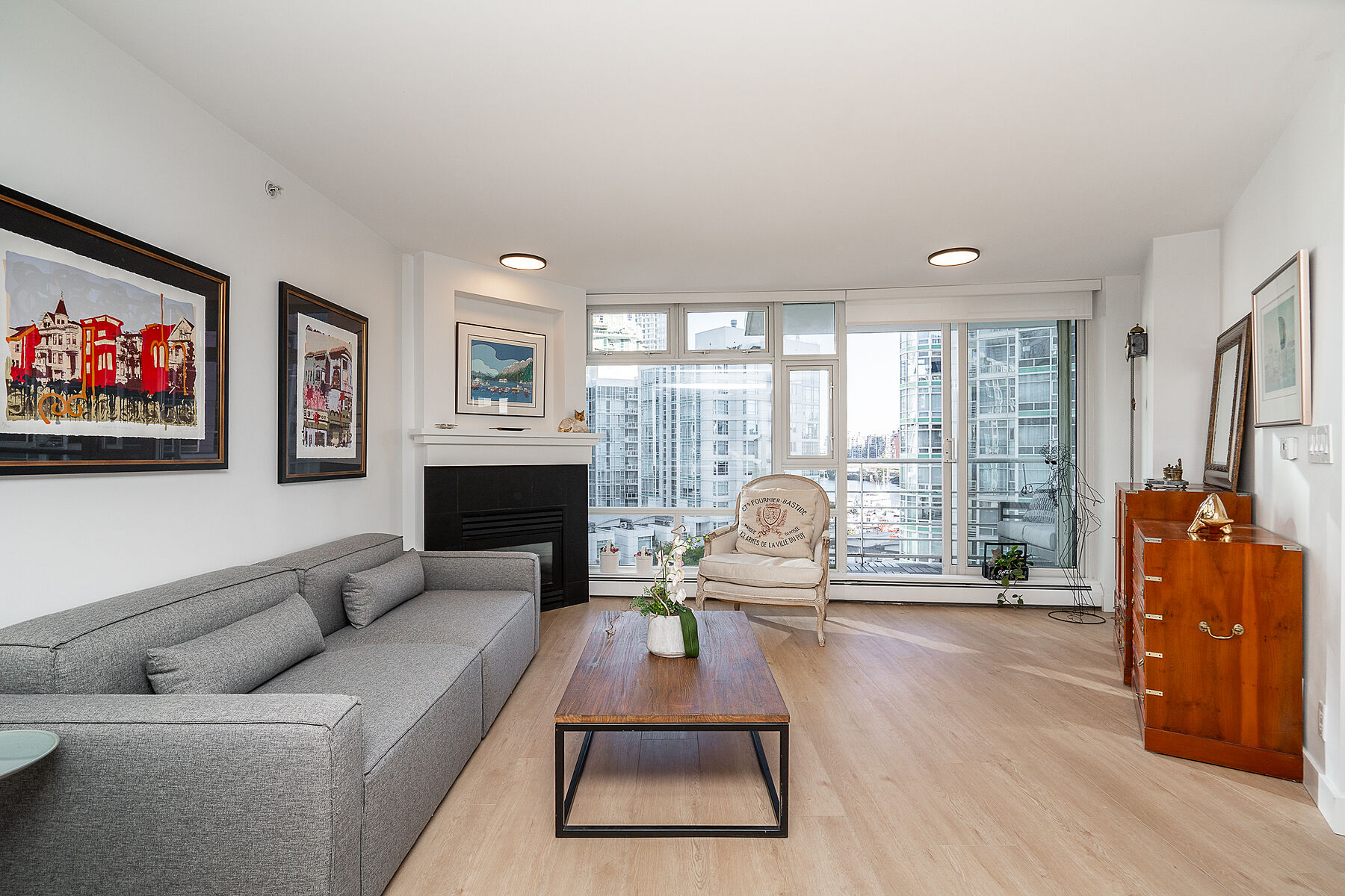 Welcome to Aquarius III. This beautifully renovated two bedroom, two bathroom suite is located in one of Yaletown’s most sought-after locations, overlooking False Creek and the building’s scenic lagoon and courtyard. The suite has been thoughtfully updated with a stunning new kitchen featuring stainless steel appliances, gas range, quartz counters, new flooring throughout, full size washer and dryer, two spa-inspired bathrooms, custom interior doors, gas fireplace, remote controlled blinds and a redesigned living and dining plan to maximize light and views. Incredible resort-style amenities include 24hr concierge, indoor pool, hot tub, gym, sauna and theatre. Plus one parking and large 12 x 7 locker with shelving. Steps to Seawall, Urban Fare, Roundhouse Community Centre, restaurants, cafes, Canada Line, and both stadiums.