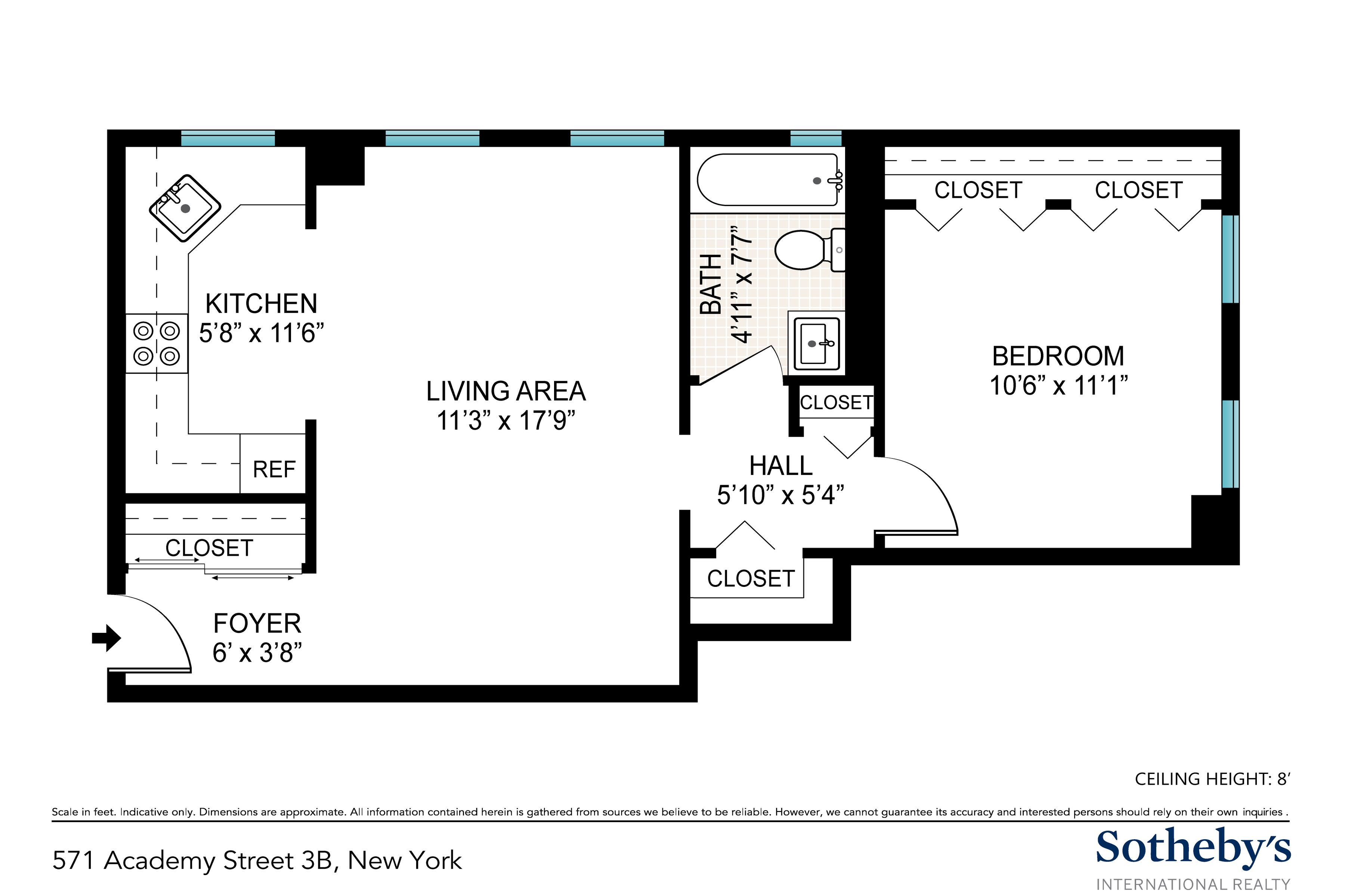 Welcome to 3B at 571 Academy Street — your entry point into ownership, and one of Inwood's most compelling values. This bright, well-proportioned condominium delivers the features that matter most: abundant closet space, a windowed kitchen and bathroom, and a bedroom that comfortably fits a king-sized bed. The open-concept kitchen — outfitted with stainless steel appliances and generous storage — flows into a living area spacious enough for both a seating arrangement and a dining setup, or a thoughtfully configured work-from-home space. Light is a genuine asset here. The bedroom offers a full wall of closets and the kind of natural light that makes a home feel twice its size. The building is pet-friendly, with laundry on-site and an super. One of the quieter truths about buying a home is that you are not just choosing square footage — you are choosing the texture of your daily life. The coffee shop that knows your order. The park that becomes your Saturday morning. The restaurant where the staff recognizes your face. In Inwood, that rhythm comes naturally. Imagine a Saturday morning that begins with coffee at Buunni Coffee or Café Kolmaro — unhurried, neighborhood-paced — before heading out to Inwood Hill Park, where Manhattan's only remaining natural forest opens into trails, rocky bluffs, and sweeping views of the Hudson River. History is woven into the landscape here: Native American caves and remnants of a Revolutionary War-era fort sit quietly alongside the paths. Isham Park offers a gentler counterpart for an afternoon read or a moment of stillness. When appetite calls, brunch at Inwood Farm is a weekend ritual worth building your morning around. Afternoons might take you to The Met Cloisters — one of New York's most extraordinary and transportive museums — or to the Dyckman Farmhouse Museum, Manhattan's oldest surviving farmhouse, where the city's colonial past comes into unexpected focus. The Hudson River Greenway extends the day further for those who prefer their afternoons in motion along the waterfront, with the Palisades as a backdrop. As evening arrives, the neighborhood shifts registers effortlessly. Dinner on the patio at Galicia — grilled octopus, seafood paella, an Iberian wine list — has the cadence of somewhere you return to often. Bocaditos Bistro offers a more intimate, French-inspired alternative. Late nights have their own answer in Cachapas Y Mas, open until 2am. And when the week calls for something more social, Inwood Bar and Grill delivers a lively room, live music, and a reason to linger. The main shopping strips along Dyckman Street, West 207th Street, and Broadway offer easy access to everyday necessities. Convenient to the Dyckman Street A express station, Midtown Manhattan is under 30 minutes away. The 1 train at Dyckman provides a second option — added flexibility that's hard to overstate for daily commuters. Citi Bike stations and multiple bus routes offer further choices for getting around the city on your own terms. Quick access to the George Washington Bridge and the Henry Hudson Parkway keeps the region within easy reach — whether a daily commute or a weekend getaway. This property qualifies for Citibank's HomeRun program ,for first time buyers , offering a discounted interest rate, as little as 3% down, and a $7,500 credit toward closing costs. For buyers ready to stop paying someone else's mortgage, the numbers here make a compelling case. Property shown by appointment and during scheduled open houses.