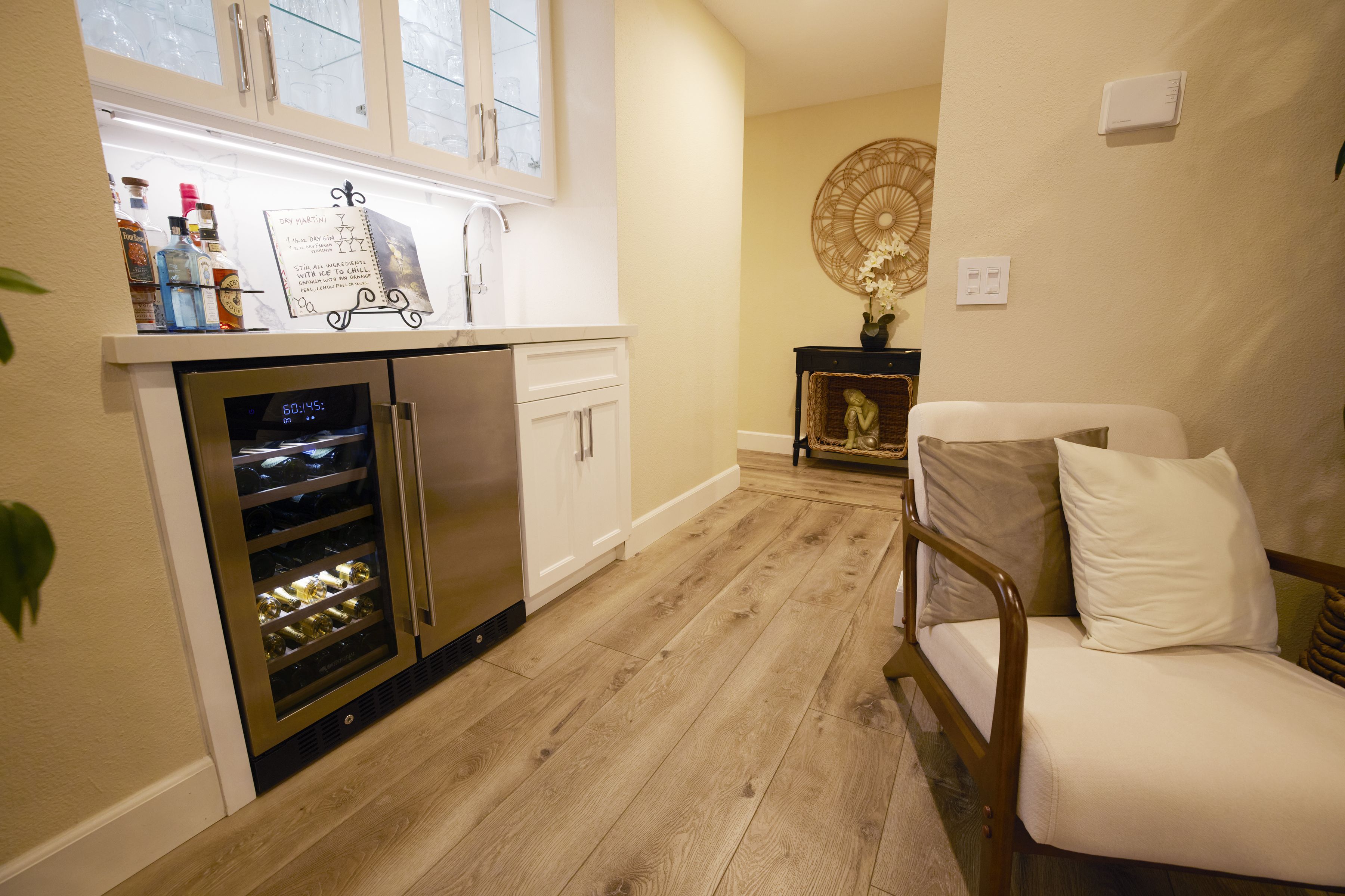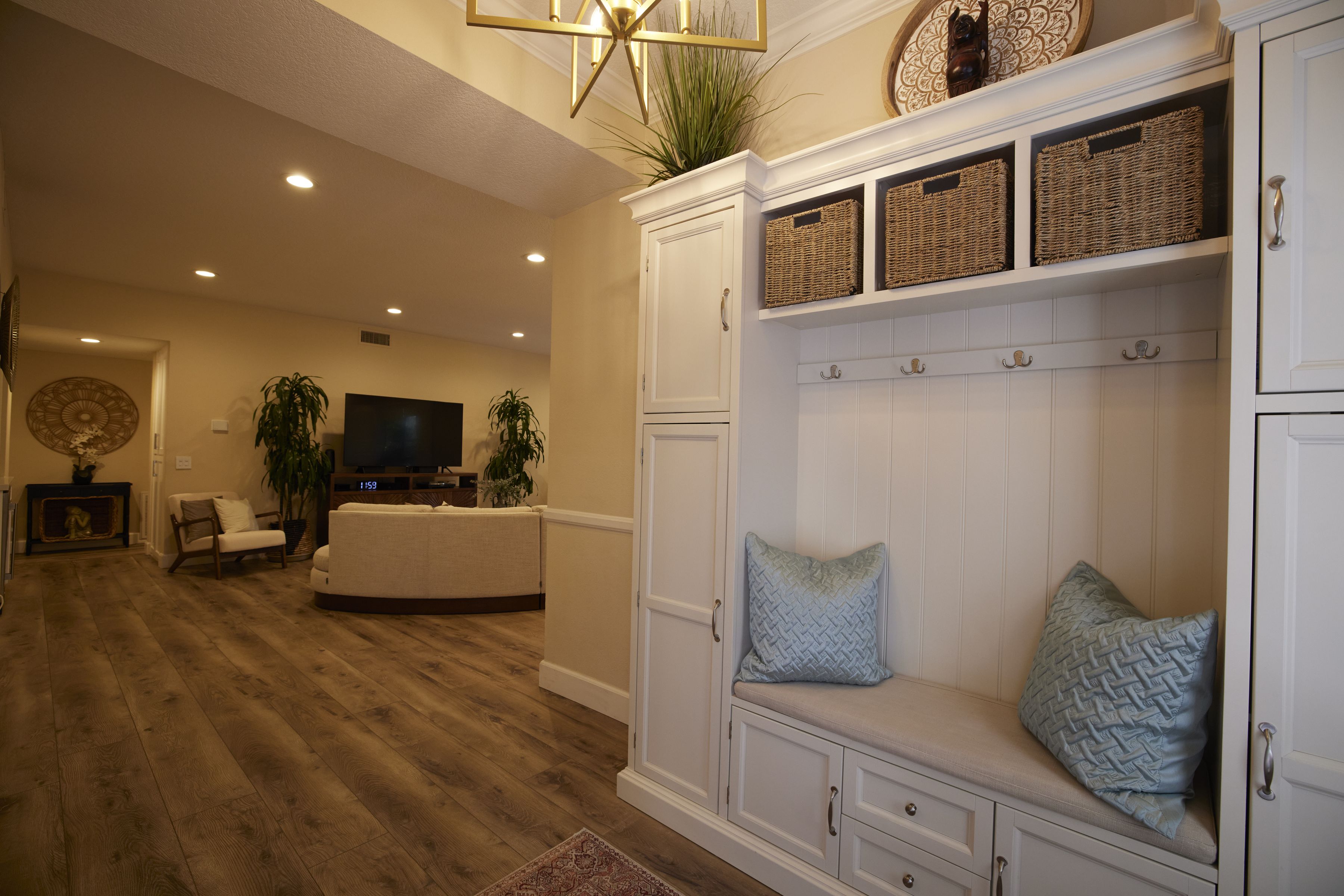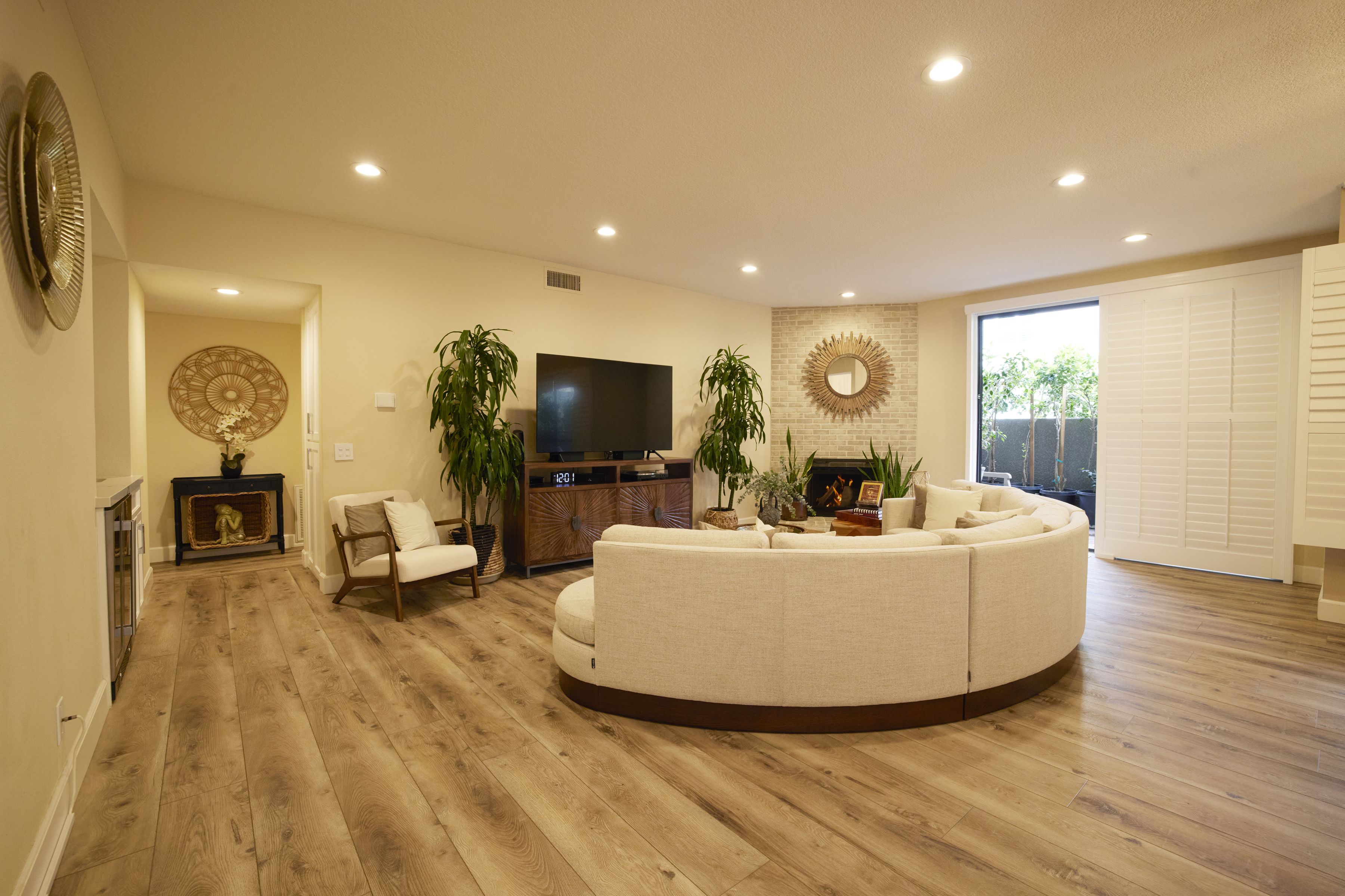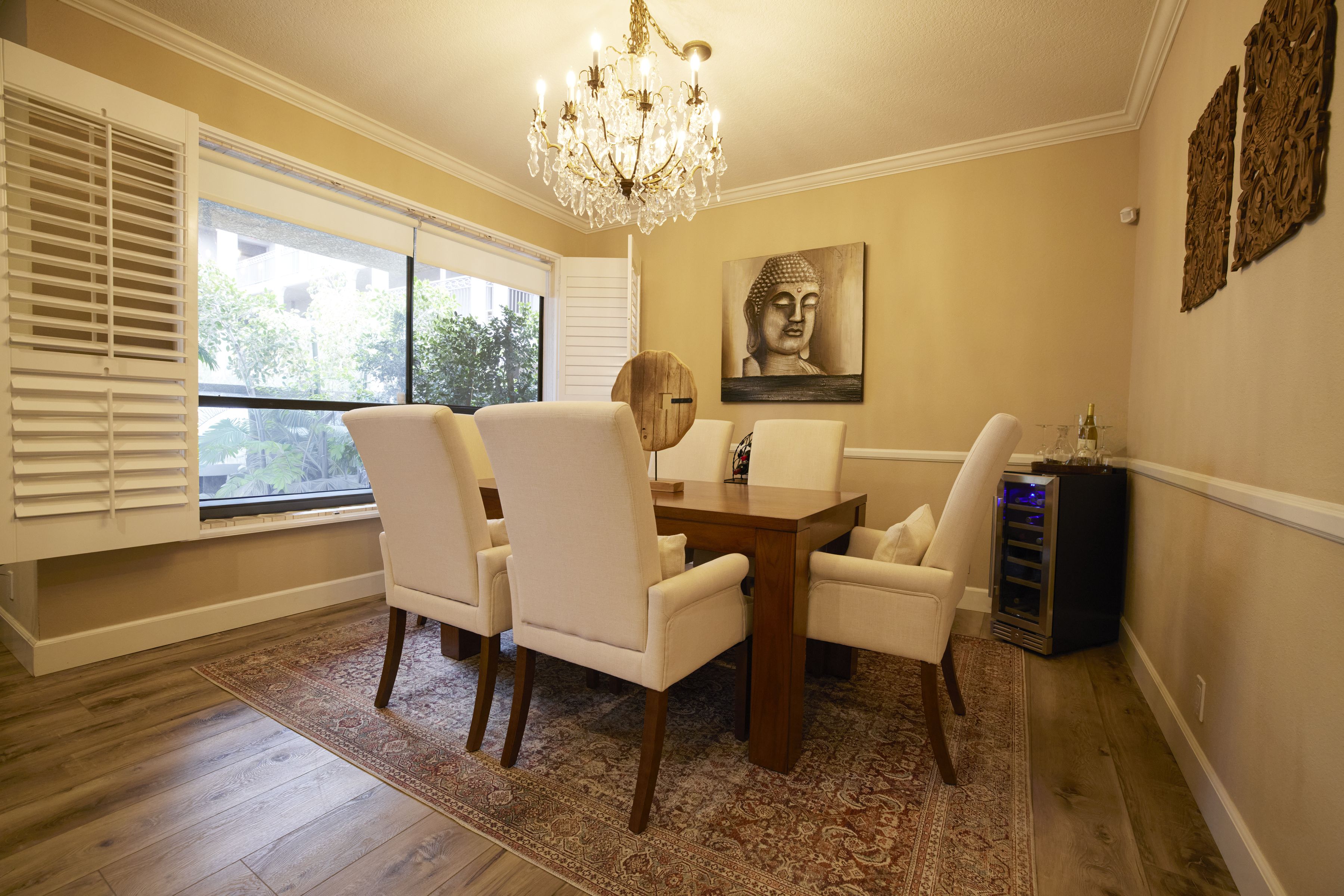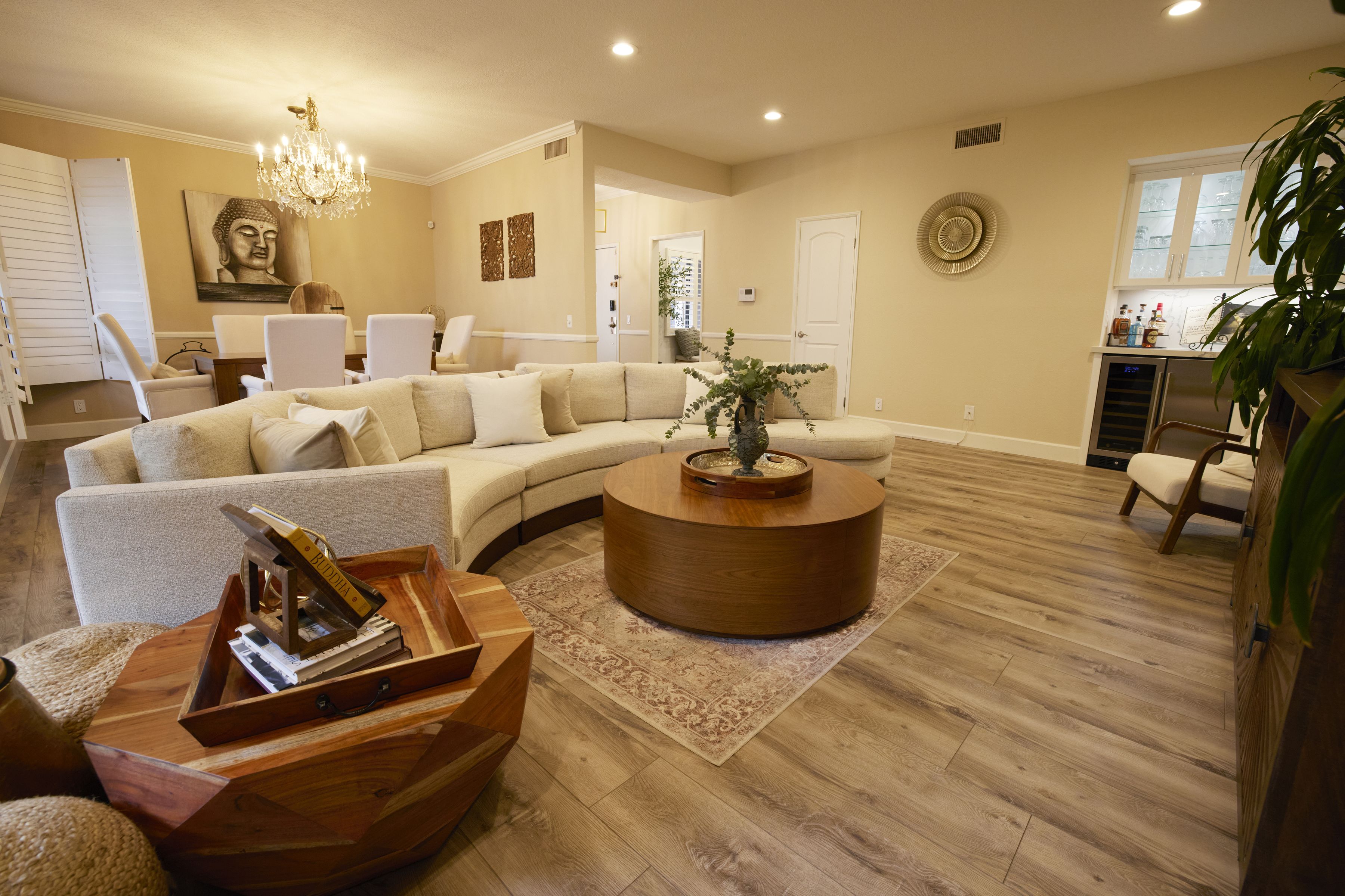 Experience a masterclass in modern design and sophisticated functionality in this meticulously upgraded residence. Fully reimagined and stripped to the studs, every square foot has been curated to create an elevated, move-in-ready sanctuary. The open-concept living and dining areas serve as the heart of the home, anchored by all-new wide-plank flooring, crisp baseboards, and designer recessed lighting. A bespoke entertainer's bar serves as a focal point, featuring premium quartz countertops, a dedicated sink, and integrated cabinetry. High-end finishes extend throughout, including new doors, custom shutters, and privacy shades. The chef-inspired kitchen is a fusion of professional performance and smart technology, boasting custom cabinetry paired with a full-slab quartz backsplash. The premium Caf appliance suite includes a double oven range, built-in oven/microwave combo, and a French door refrigerator, all complemented by a high-performance Bosch dishwasher. Modern lifestyle essentials are seamlessly integrated, from the Insta Hot water dispenser and advanced filtration system to the Caf Smart Hub for app-controlled home convenience. Both bathrooms have been fully renovated with designer tile, Moen fixtures, and custom quartz counters. The primary sanctuary offers a peaceful retreat with custom built-ins and mirrored closets, leading to a spa-like ensuite featuring a freestanding soaking tub with a waterfall faucet and a dual vanity with a dedicated storage tower. Total peace of mind is ensured by an entirely new infrastructure, including a full HVAC system, updated plumbing and electrical, a new fuse panel, and a high-capacity washer and dryer. The HOA delivers exceptional value and a resort-style lifestyle, providing access to a private pool, spa, gym, and sauna. The residence is fully optimized for the modern professional with Spectrum Internet Ultra (600 Mbps) and a comprehensive streaming suite featuring Max, Disney+, Hulu, ESPN, Paramount+, and Peacock. With no scheduled assessments, this is a rare opportunity to own a fully modernized home with world-class amenities in a premier location.