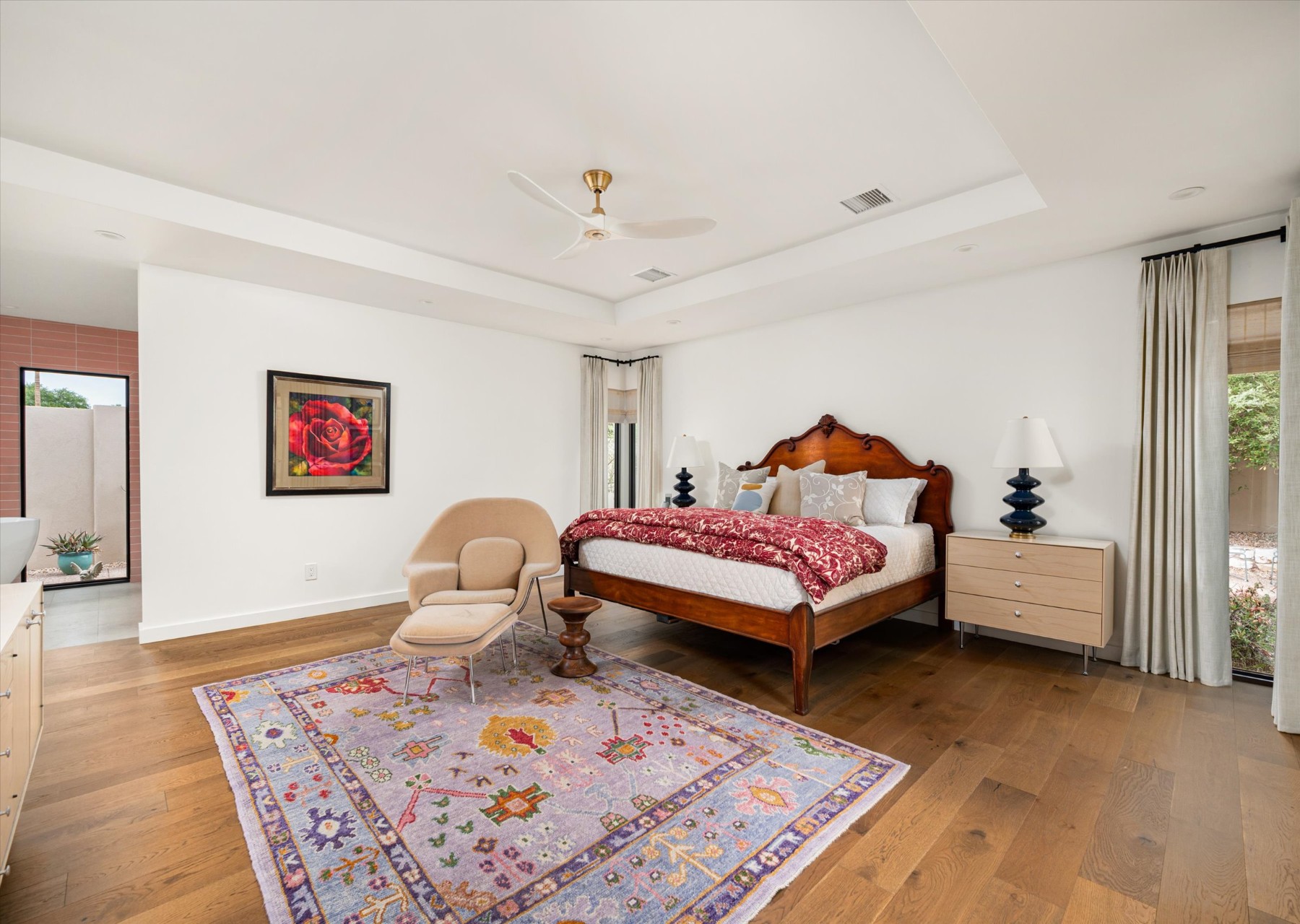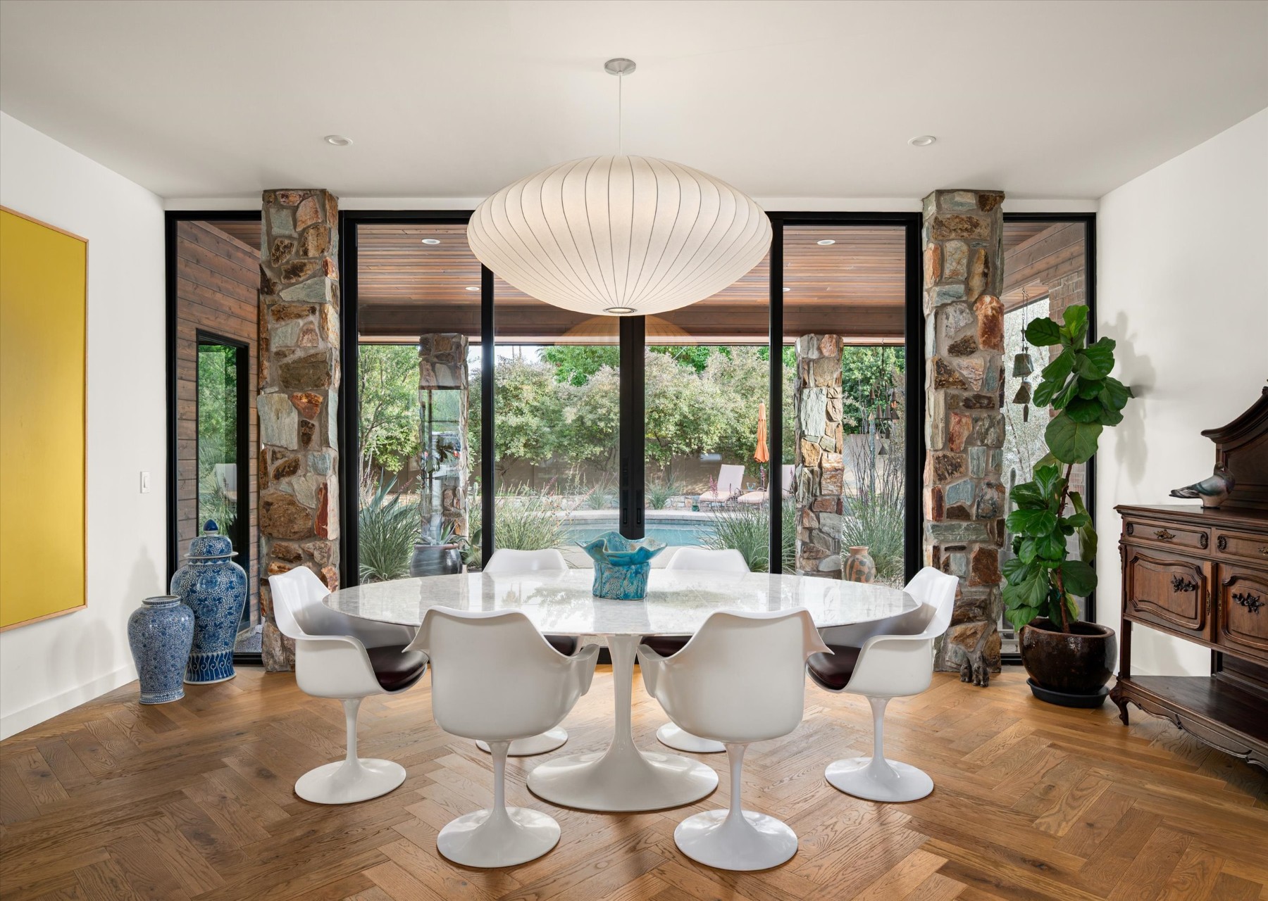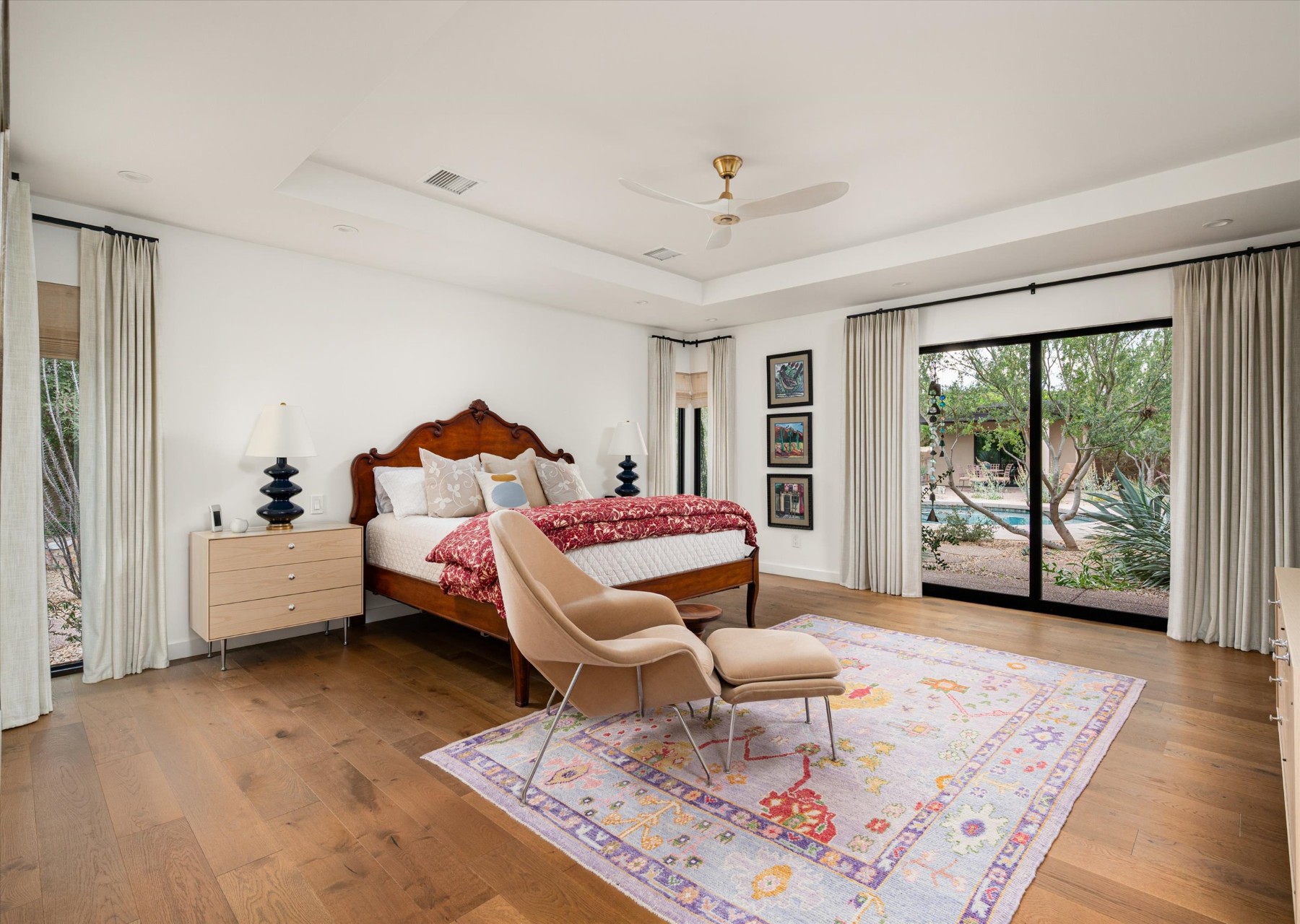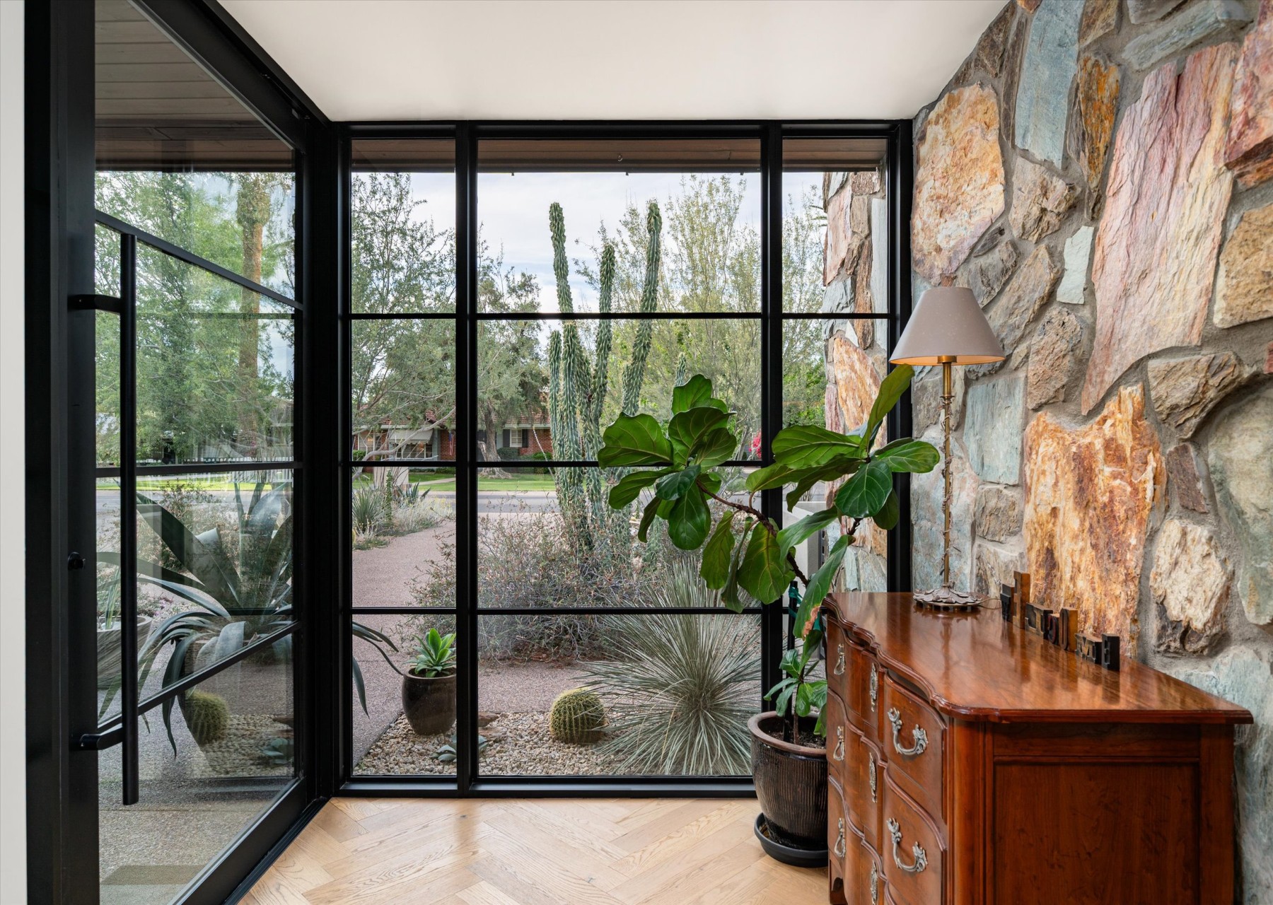 A glass-and-steel entry pavilion introduces the home with a sense of intention and quiet drama, opening to interiors that are both sophisticated and delightfully unexpected. At the heart of the residence, a showpiece kitchen and great room unfold- anchored by vibrant quartzite surfaces, high-gloss custom cabinetry, and herringbone-laid French oak flooring. A fully integrated appliance suite by Wolf and Sub-Zero pairs performance with precision, while curated designer lighting adds a sculptural layer to the space- equally suited for elevated entertaining or intimate daily living.Spanning approximately 3,650 square feet on an over 15,000 square foot lot, the home is thoughtfully composed with three luxurious en suite bedrooms, a dedicated office, guest powder room, laundry room, and a versatile flex space or gym complete with its own powder room. The floor plan flows effortlessly, balancing openness with purposeful separation- creating a home that lives as beautifully as it presents.A comprehensive 2019 renovation, led by architect Susanne Rothwell, brings a cohesive architectural language throughout, while the homeowner's expertise in interior and landscape design is evident in every detail. Materials and finishes have been meticulously selected for both quality and artistry, including Heath Ceramics tile, Neff custom cabinetry, quartzite surfaces, Visual Comfort lighting, Kohler fixtures, and Emtek hardware. Steel-framed doors and windows by Western Windows, solid white oak doors, bespoke millwork, and tailored window treatments further reinforce the home's elevated, cohesive aesthetic.Outdoor living is equally compelling- a fully realized desert landscape designed for beauty, sustainability, and experience. Meandering aggregate walkways, custom stone walls and garden beds, and hundreds of curated plantings create a rich, immersive environment. A circular play pool, fire feature, and layered outdoor living spaces invite both relaxation and gathering, while a detached, fully insulated structure offers flexibility for studio, storage, or future expansion. Even the garage is thoughtfully executed, with epoxy flooring and a cedar tongue-and-groove ceiling detail.This is a residence where architecture, landscape, and design converge- offering a rare opportunity to own a truly intentional, design-driven home in one of Phoenix's most desirable neighborhoods.