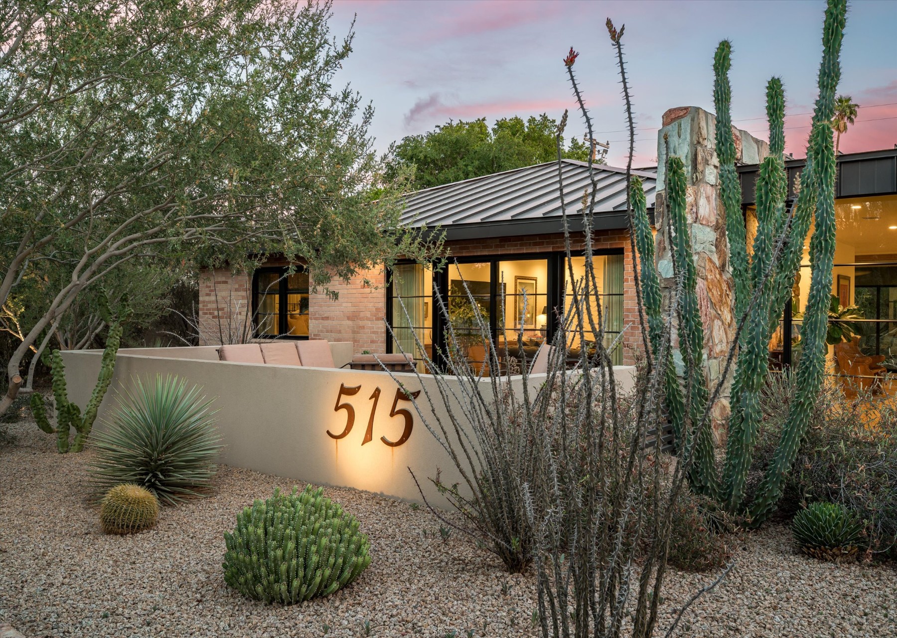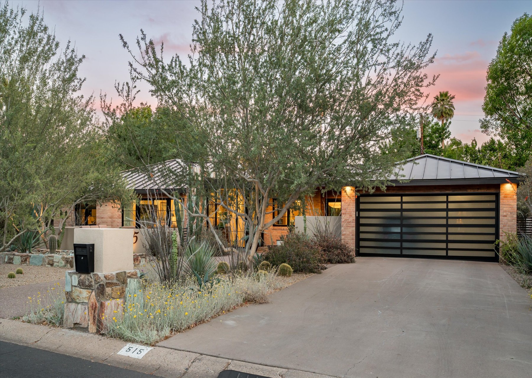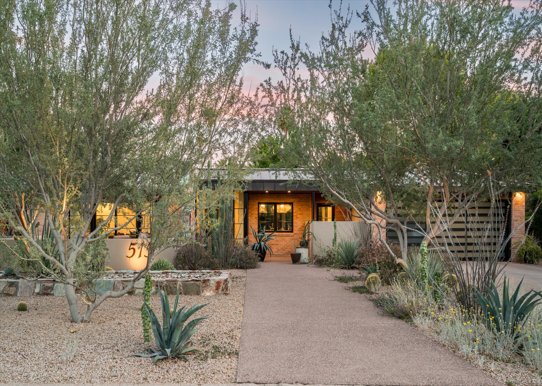 An extraordinary expression of architectural vision and curated design, this reimagined rambling ranch in North Central's coveted ''7's'' seamlessly blends modern refinement with organic desert sensibility. Set behind a lush, water-wise botanical landscape, the approach is nothing short of artful- layered plantings, sculptural stonework, original peach-hued block, and a striking metal roof create a dynamic interplay of texture, tone, and form.