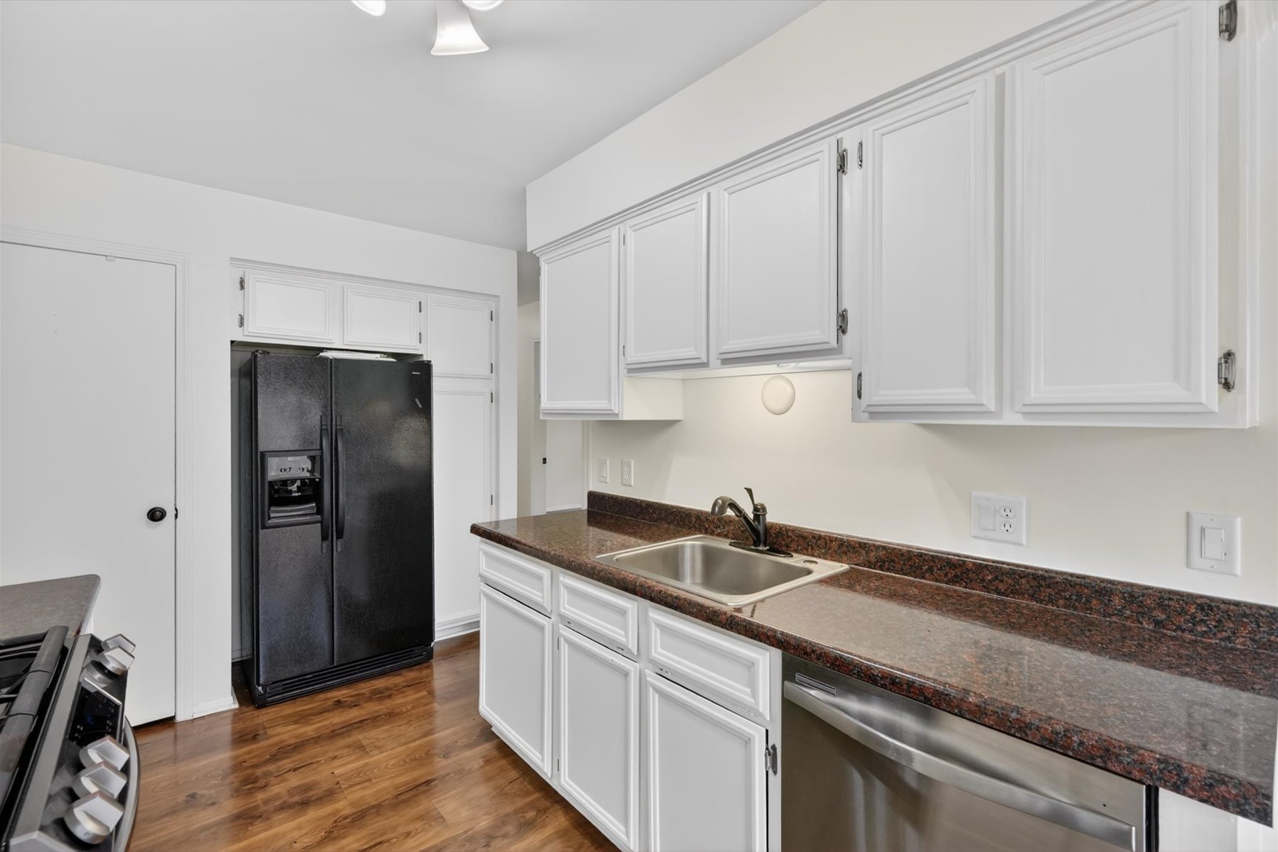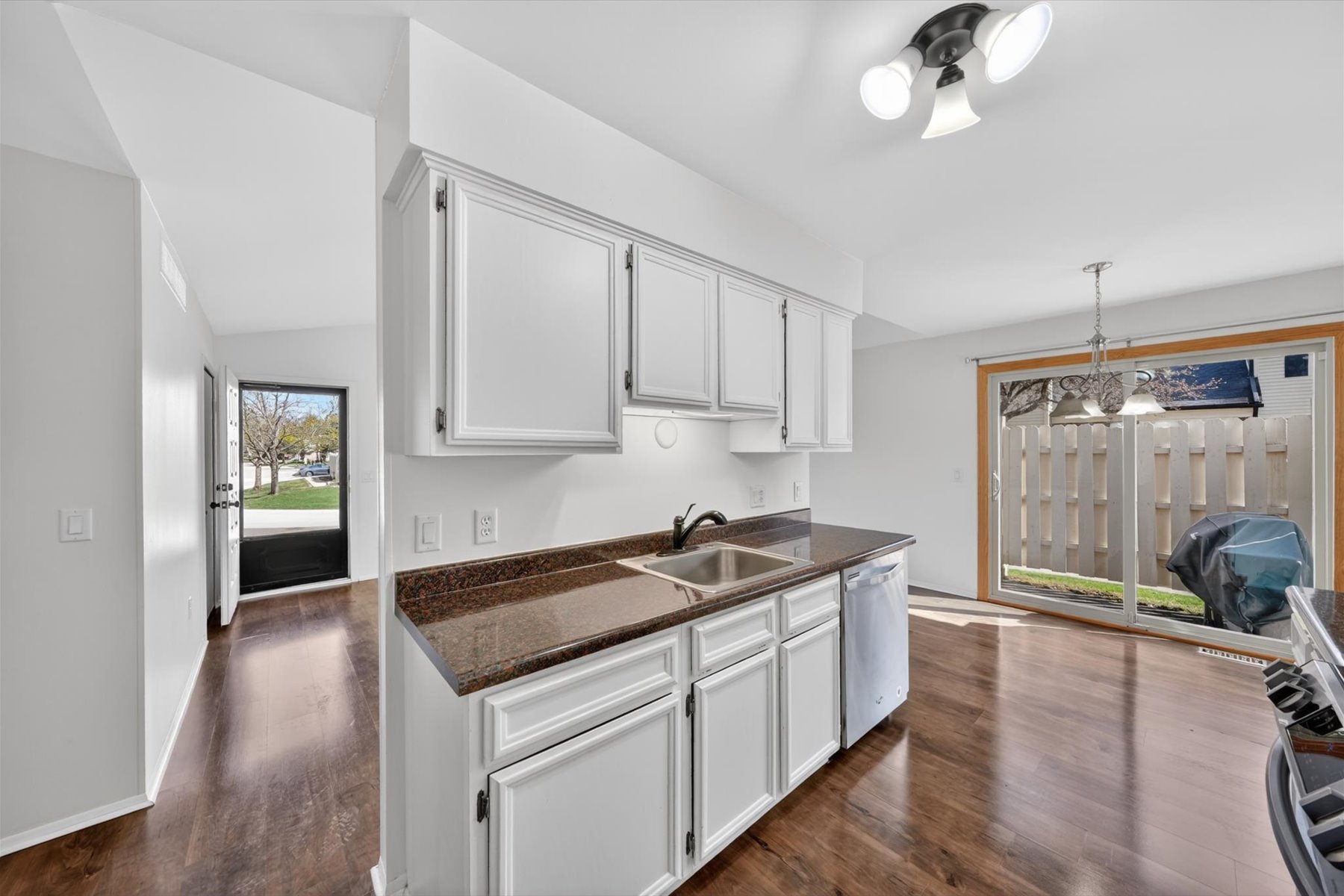 Nestled deep within the desirable Dover Hill community, this move-in ready end-unit ranch condo offers both privacy and convenience—just minutes from shopping, dining, and major freeways. This ground-level unit features no neighbors above or below the main living space, creating a quiet and comfortable setting. Enjoy the open green space just outside your door, along with a bright and spacious living room highlighted by a cathedral ceiling. The primary bedroom includes a walk-in closet, while the attached garage provides direct access for added ease. A large private basement offers excellent storage or potential for additional living space. The kitchen is well-equipped with abundant cabinetry and flows seamlessly into the dining area, complete with a doorwall leading to a private patio—perfect for relaxing or entertaining. Recent updates include new roof, newer windows/doorwall, countertops in the kitchen and full bath, along with a newer refrigerator, stove, laminate flooring, and fresh paint throughout.