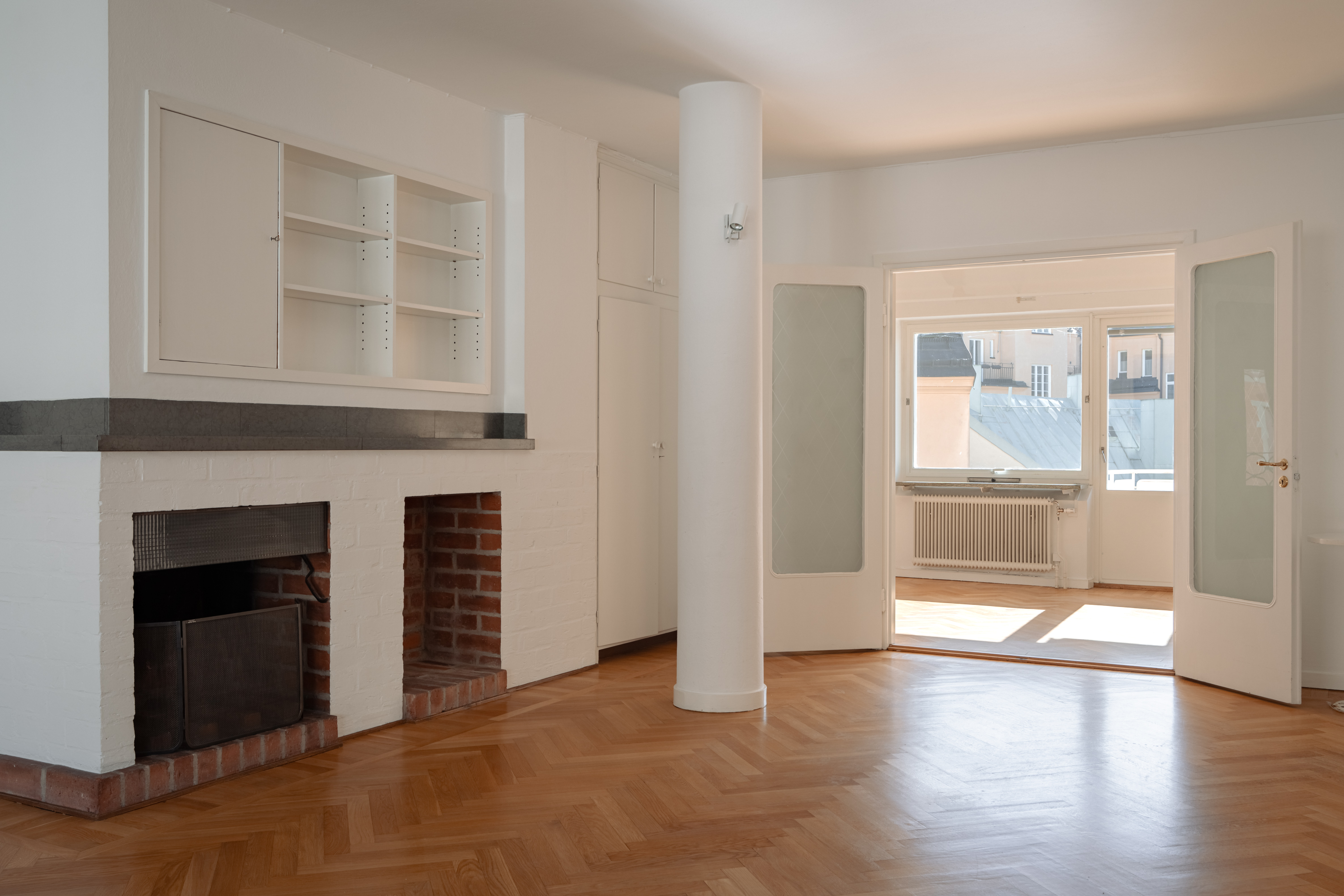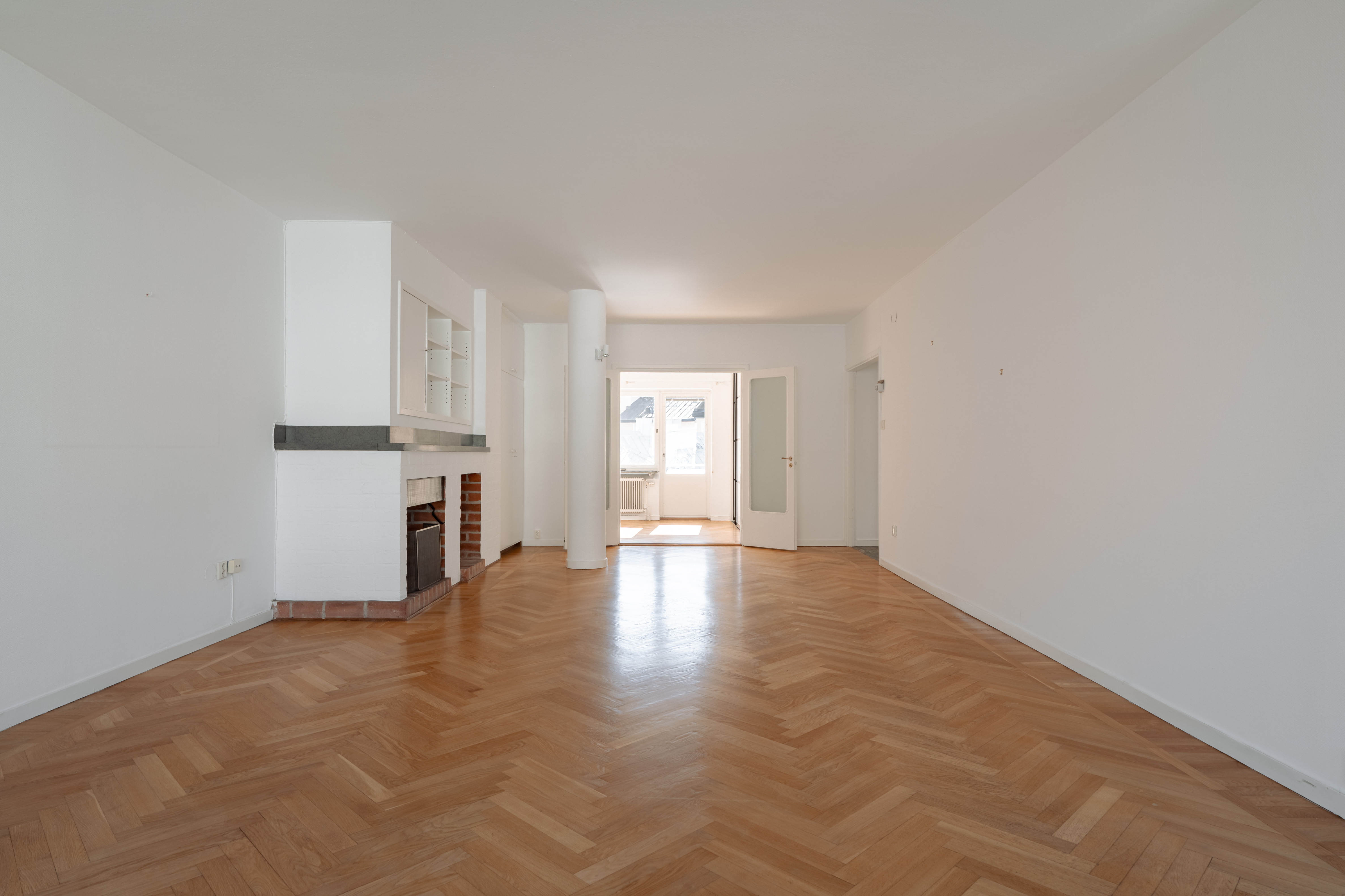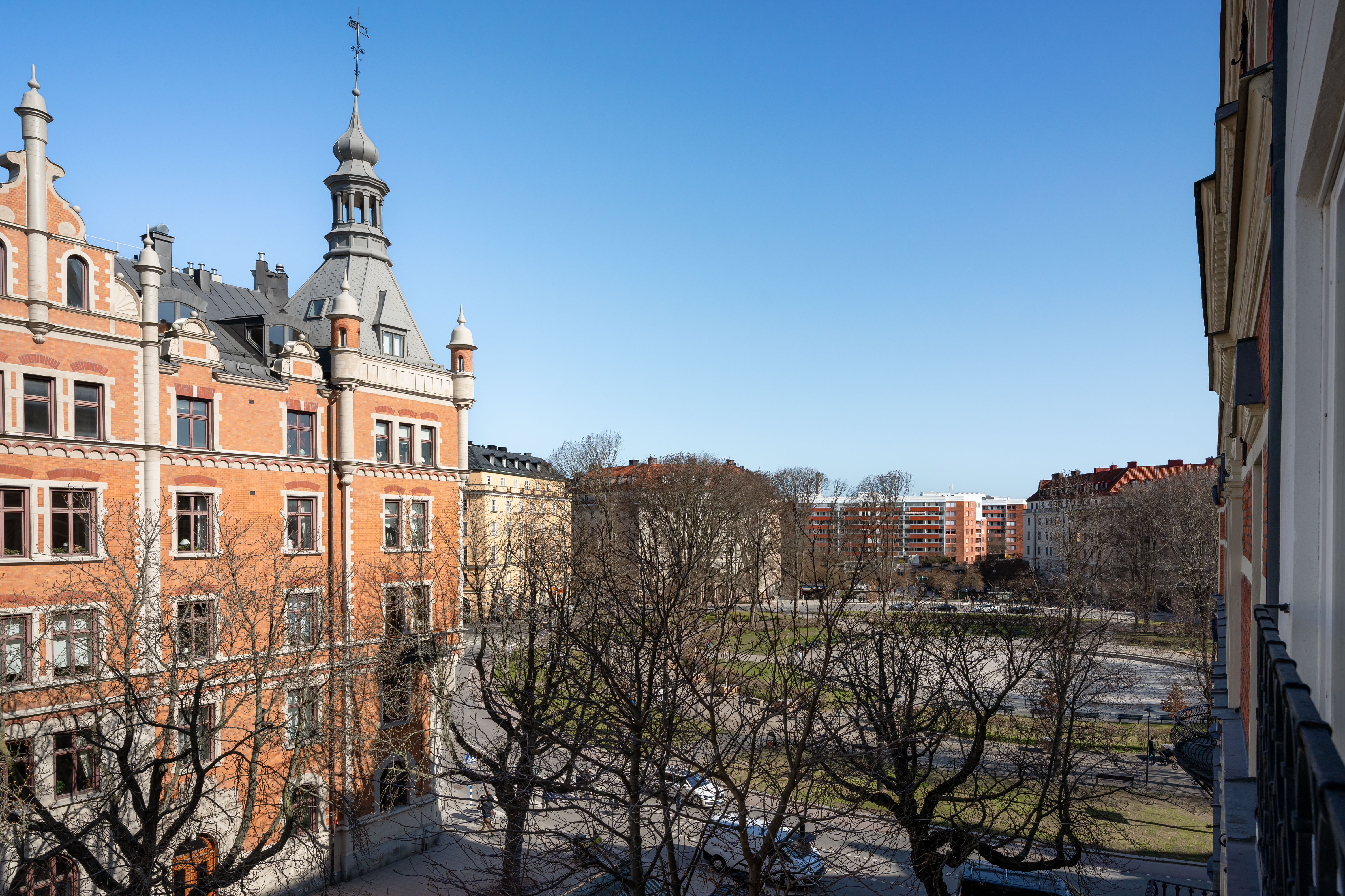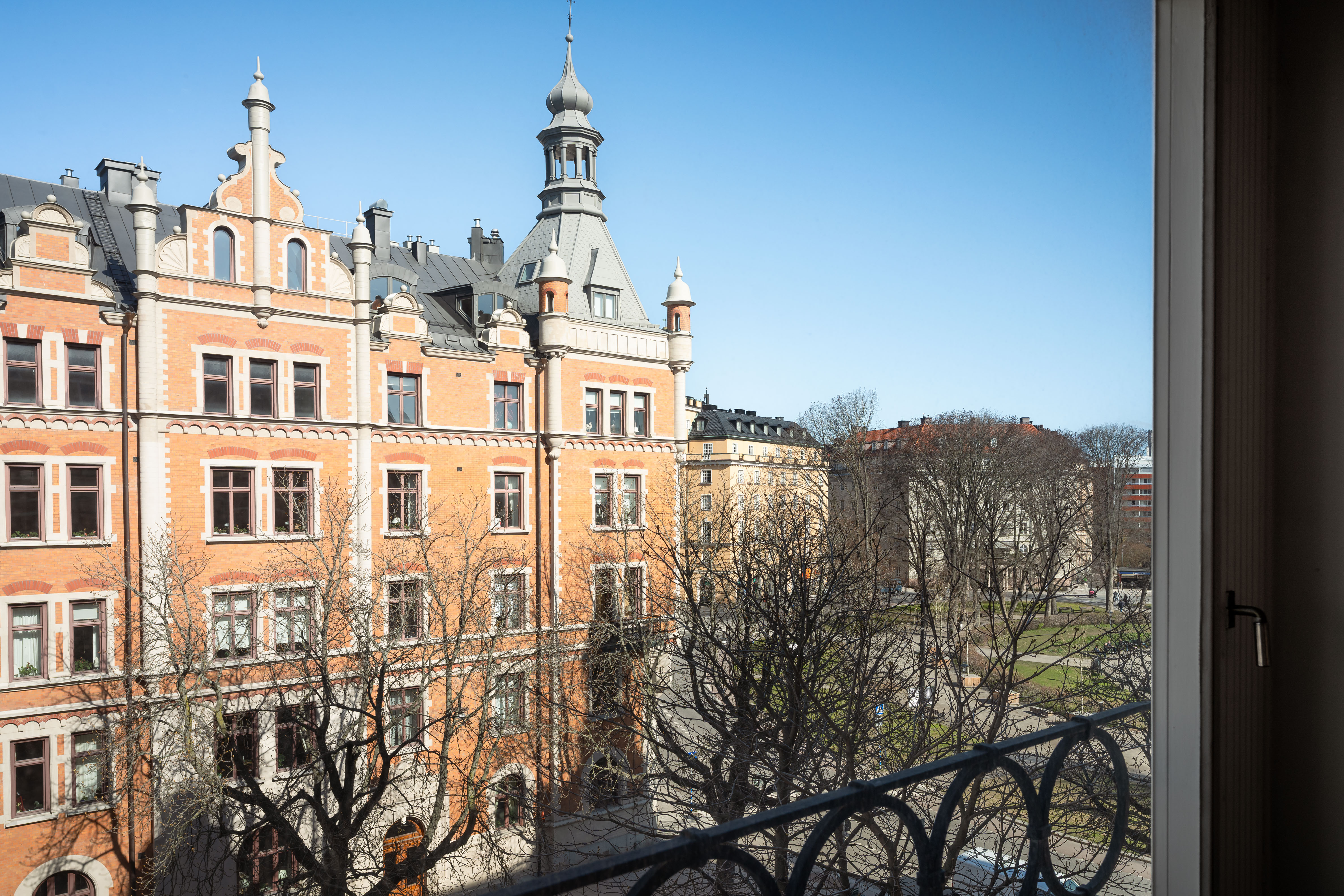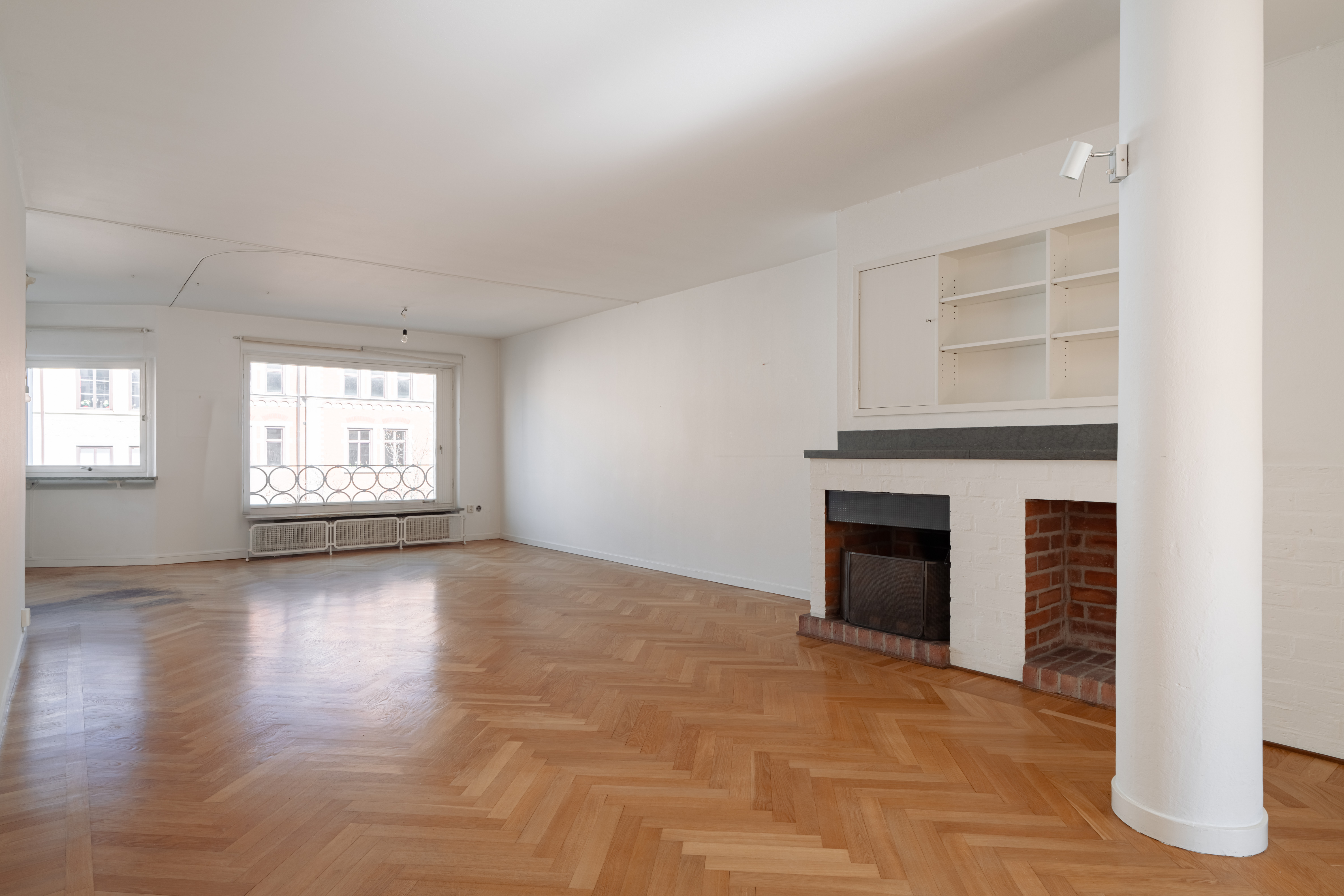 Generous living areas overlook the square at the beginning of Styrmansgatan and are complemented by a fireplace.