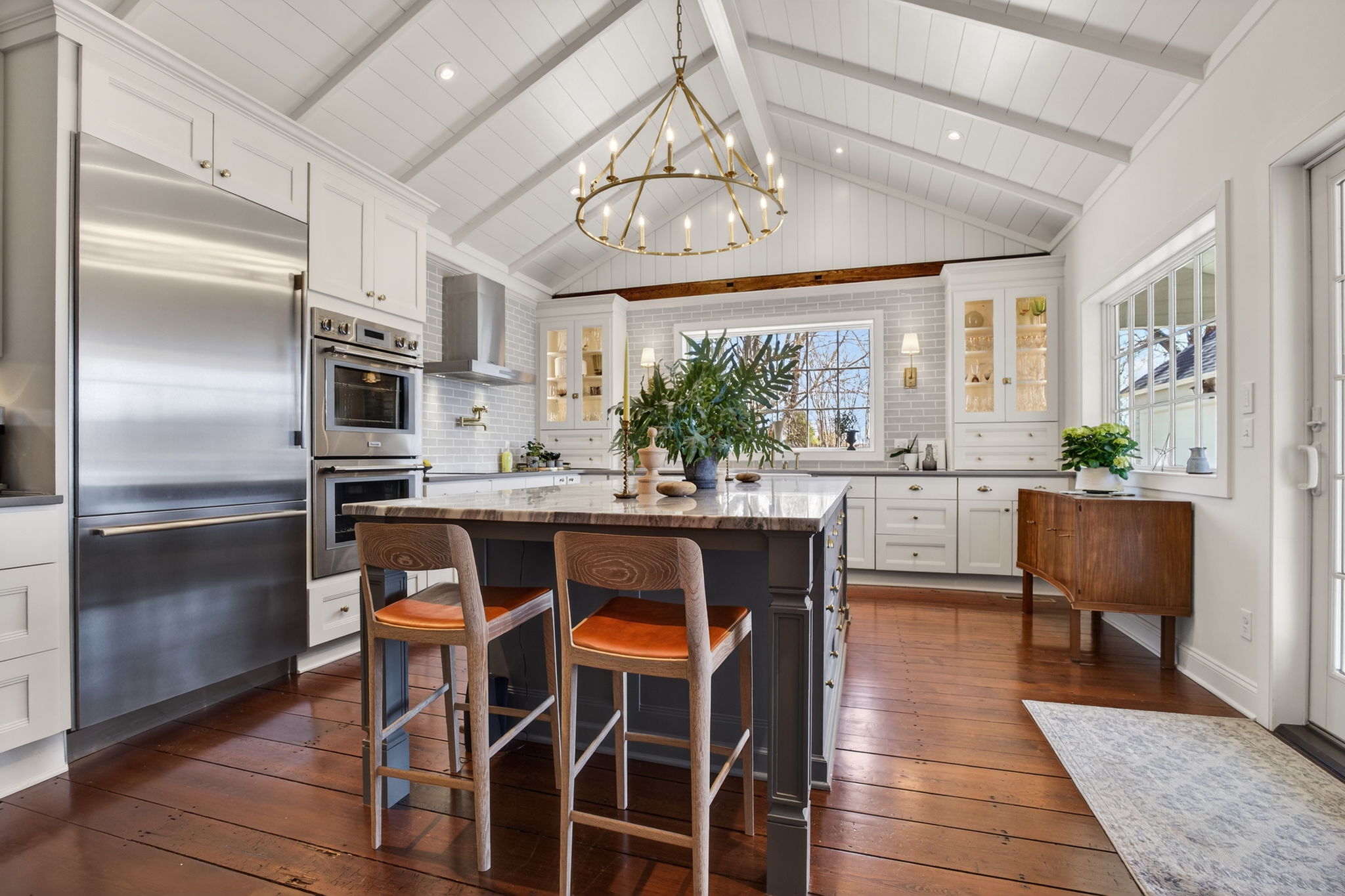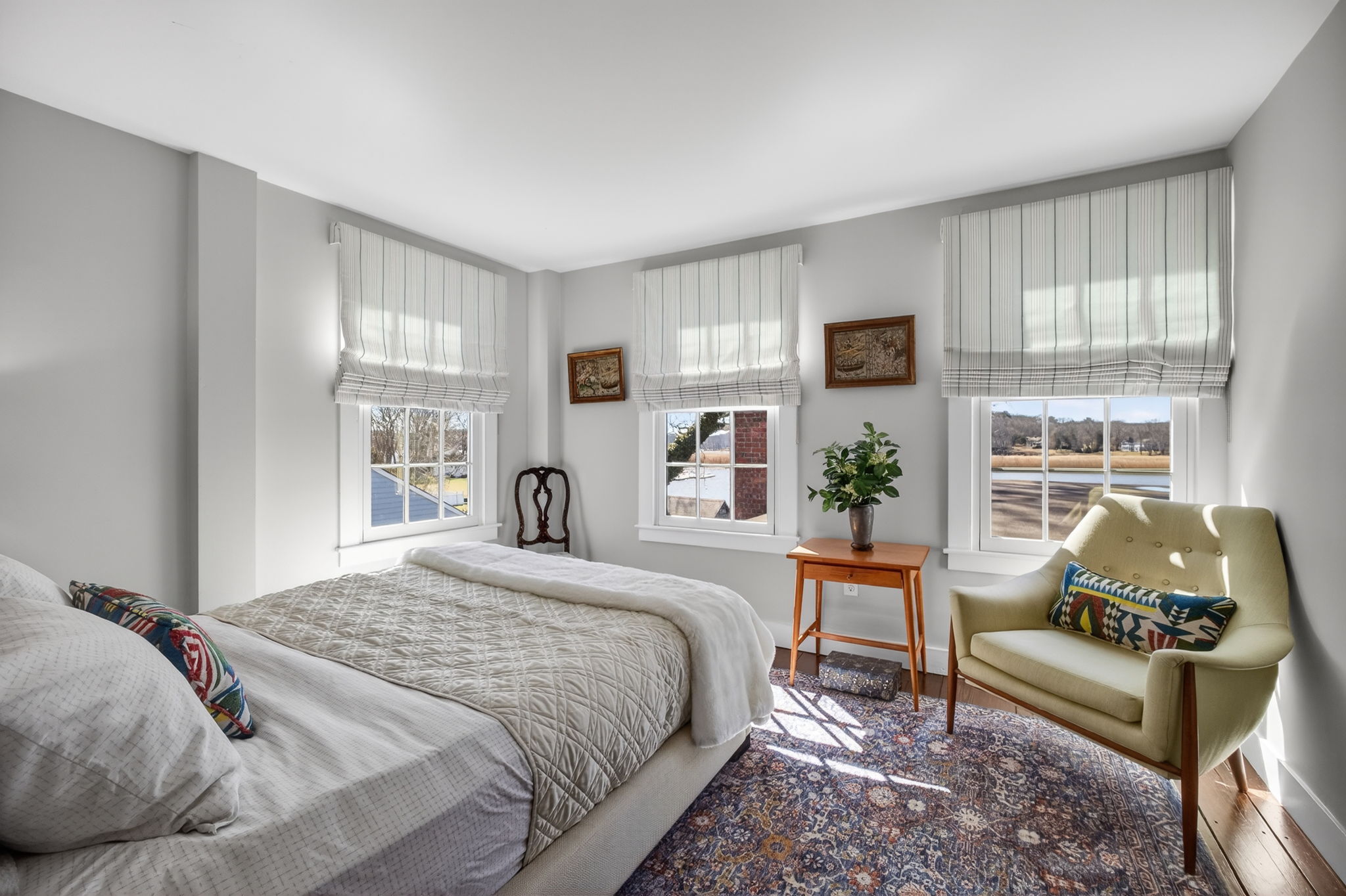 Experience the essence of Essex village living in this distinguished historic home. Perfectly positioned in the heart of the village, 17 Scholes Lane is a master class in period charm andmodern amenities offering a peaceful, sun-drenched retreat where 18th-century soul blends seamlessly with high-end, contemporary finishes. Thoughtfully renovated to prioritize water view, light and flow. At its center is the airy chef's kitchen, a striking space featuring, architectural drama, soaring vaulted ceilings and oversized windows that bathe the room in natural light and maximize the expansive water view. Exquisite finishes, custom cabinetry anchored by a large natural stone island, and designer details like premium Waterworks fixtures provide a polished, timeless touch. Throughout the home, the character of 1784 is vibrantly alive. You'll find original paneling, wide-plank flooring, and period doors with their authentic hardware. The first-floor primary suite offers a private sanctuary of modern luxury. The ensuite bathroom is a work of art, featuring marble-tiled floors and walls paired with elegant Waterworks appointments. Adding to the old-world charm are the three working wood burning fireplaces. One is centered in the Living Room which features a floor to ceiling bow picture window capturing the ever-changing, picturesque water view and nature. For those who work from home or need extra lounge space, the fully renovated lower-level office/family room provides a quiet escape with stunning water views and its own private outdoor entrance. Note: Square footage including the finished walk out lower level, 2,620.