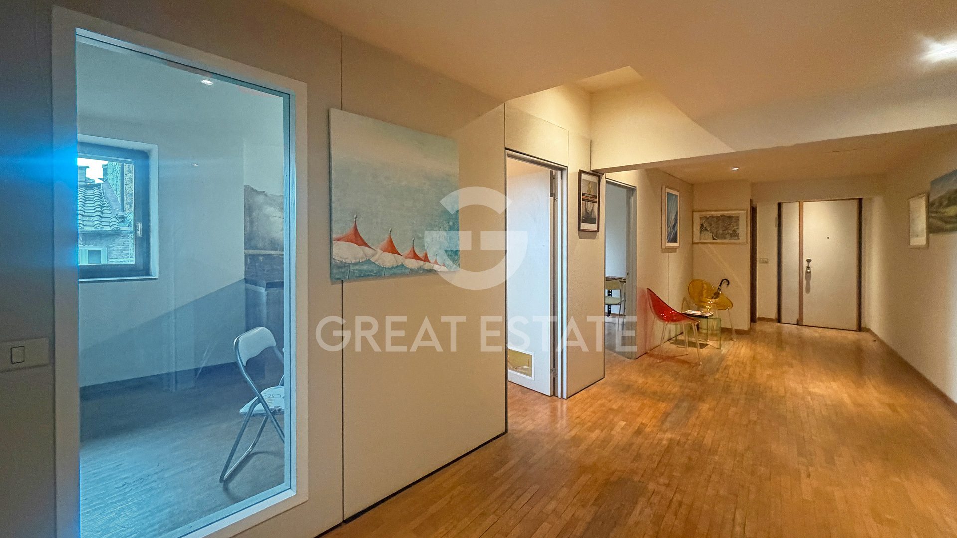 The renovation, carried out in the early 2000s, still presents itself in excellent condition today thanks to constant and meticulous maintenance. The works were executed with great attention to detail and the quality of the materials used. The apartment features elegant parquet flooring, which adds warmth and continuity to the spaces, and is fitted with good-quality window frames, ensuring adequate thermal and acoustic insulation.