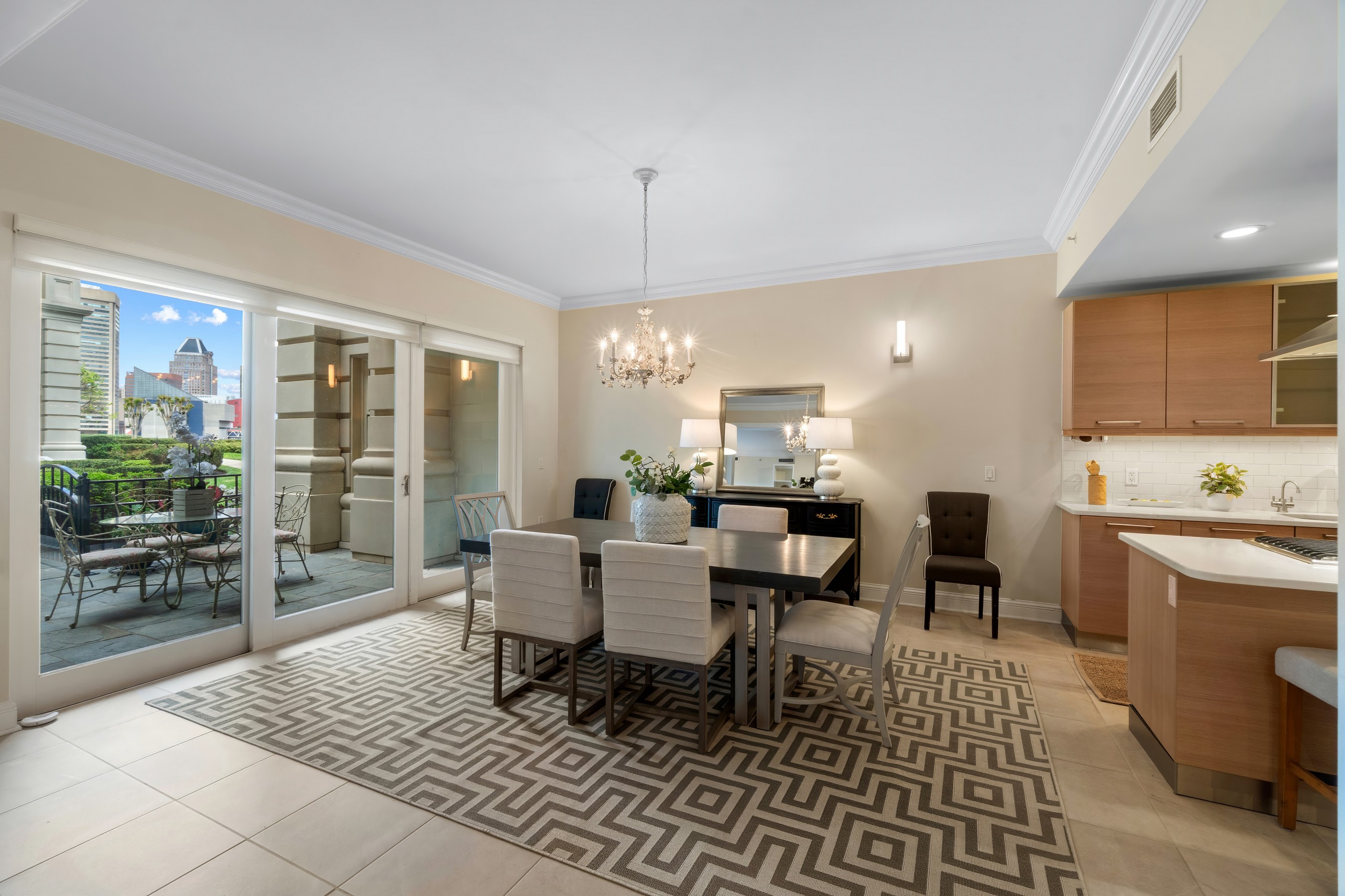 Rarely available, expansive 2-bedroom + den, 2 full and 1 half bath residence offering over 2,500 square feet, opening to an exceptional private patio overlooking the Inner Harbor. A thoughtful, well-executed layout is anchored by a gourmet kitchen with center island, premium Viking appliances, pantry, and integrated dining area, flowing seamlessly into a spacious living room with wet bar, designed for both everyday living and refined entertaining. A flexible office or den sits just off the main living space. Sliding glass doors from both the living area and primary suite open directly to the patio, creating a seamless indoor-outdoor connection. The outdoor space extends to a beautifully landscaped Ritz-Carlton garden with fountain, offering a sense of scale and tranquility. The primary suite functions as a private retreat with space for a sitting area, generous closet space including an oversized walk-in, and a luxurious, spa-like bath. The second bedroom is well-proportioned and features its own ensuite bath. Two parking spaces and dedicated storage complete the offering. Residents enjoy exclusive access to on-site fine dining, a full-service marina, and a state-of-the-art wellness spa, along with 24/7 concierge, valet, doorman, and porter services that define The Ritz-Carlton standard. Additional amenities include an indoor pool, fitness center, theater, six private guest suites, and elegantly appointed event spaces set within manicured grounds. Perfectly positioned along the Baltimore Promenade with direct waterfront access, this home is moments from water taxis, cultural landmarks, stadiums, Penn Station, and BWI Airport. Schedule your private showing today.