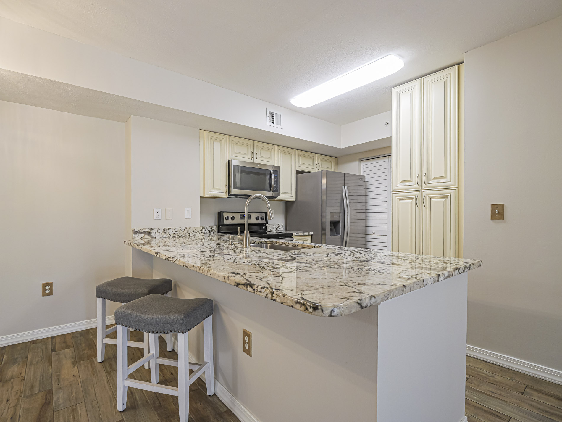 Discover your new annual rental in this beautifully updated 2-bedroom, 2-bathroom first-floor condo! Boasting a modern kitchen and bathrooms, sleek tile flooring throughout, and a spacious open floor plan, this condo is designed for comfort and style. Located in a gated community, you’ll enjoy peace of mind and access to a wide array of top-notch amenities, perfect for relaxation and recreation. Conveniently situated near shopping, dining, and entertainment, you’ll have everything you need just moments away. Don’t miss the chance to own this move-in-ready gem!