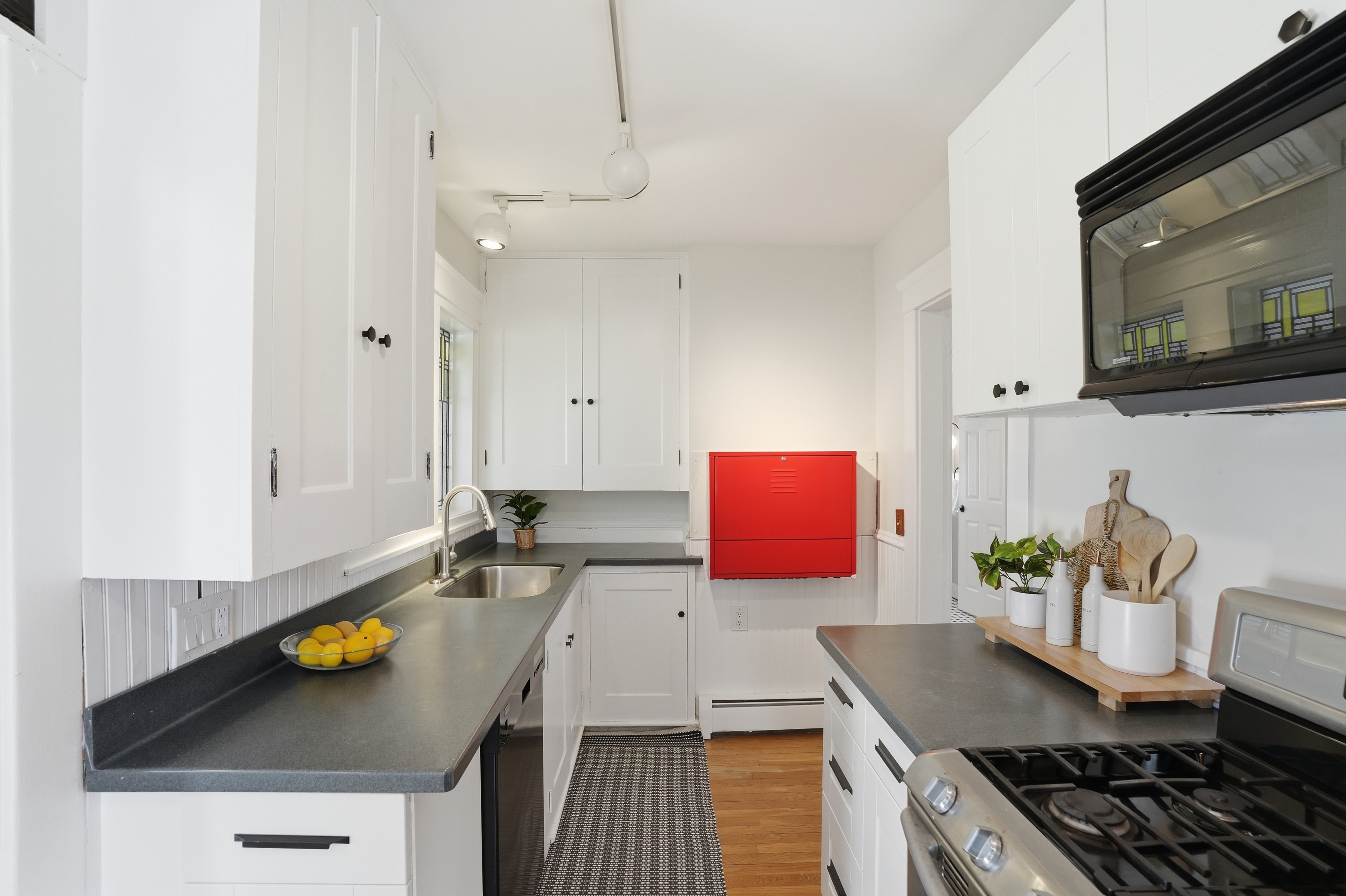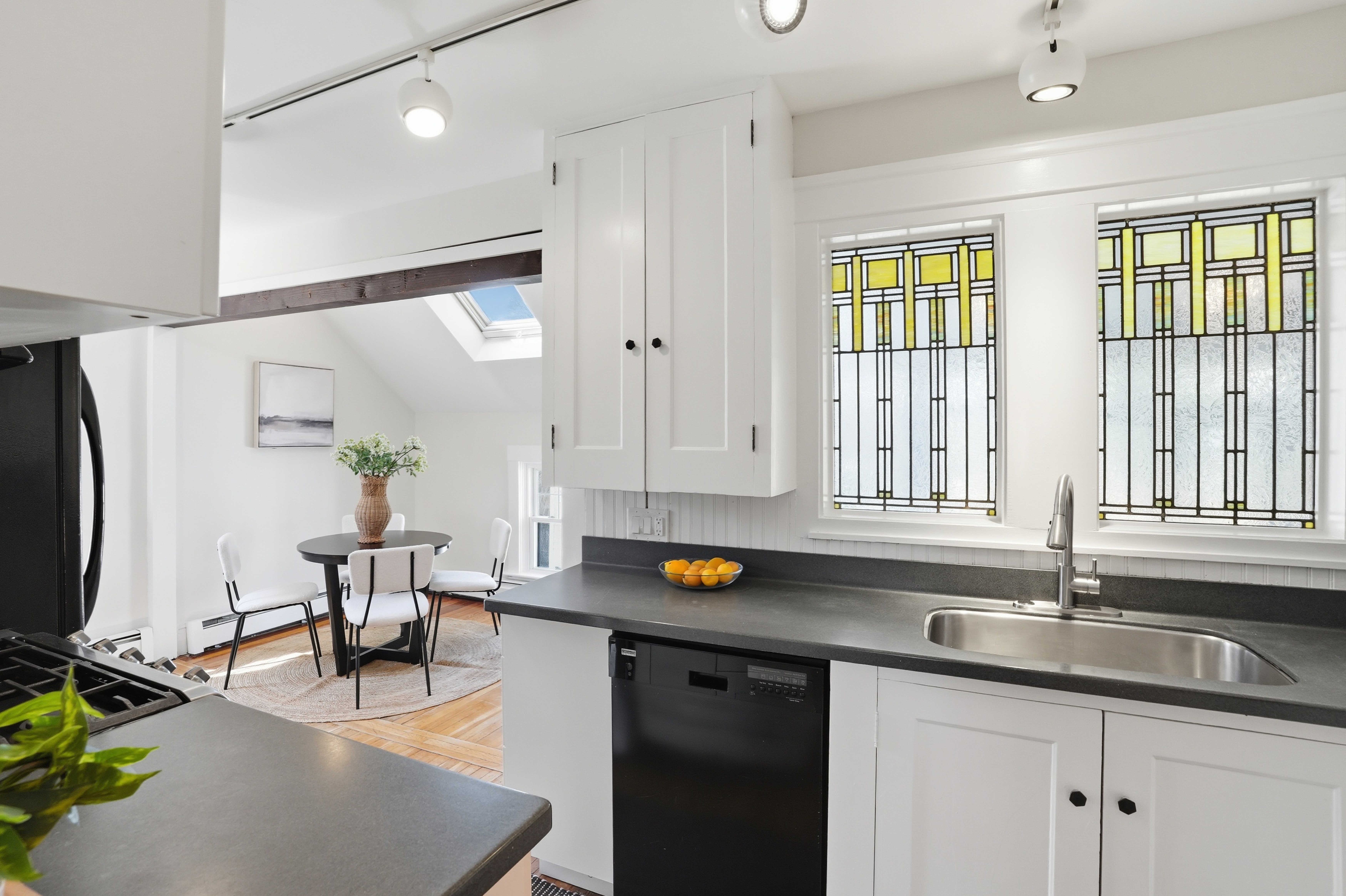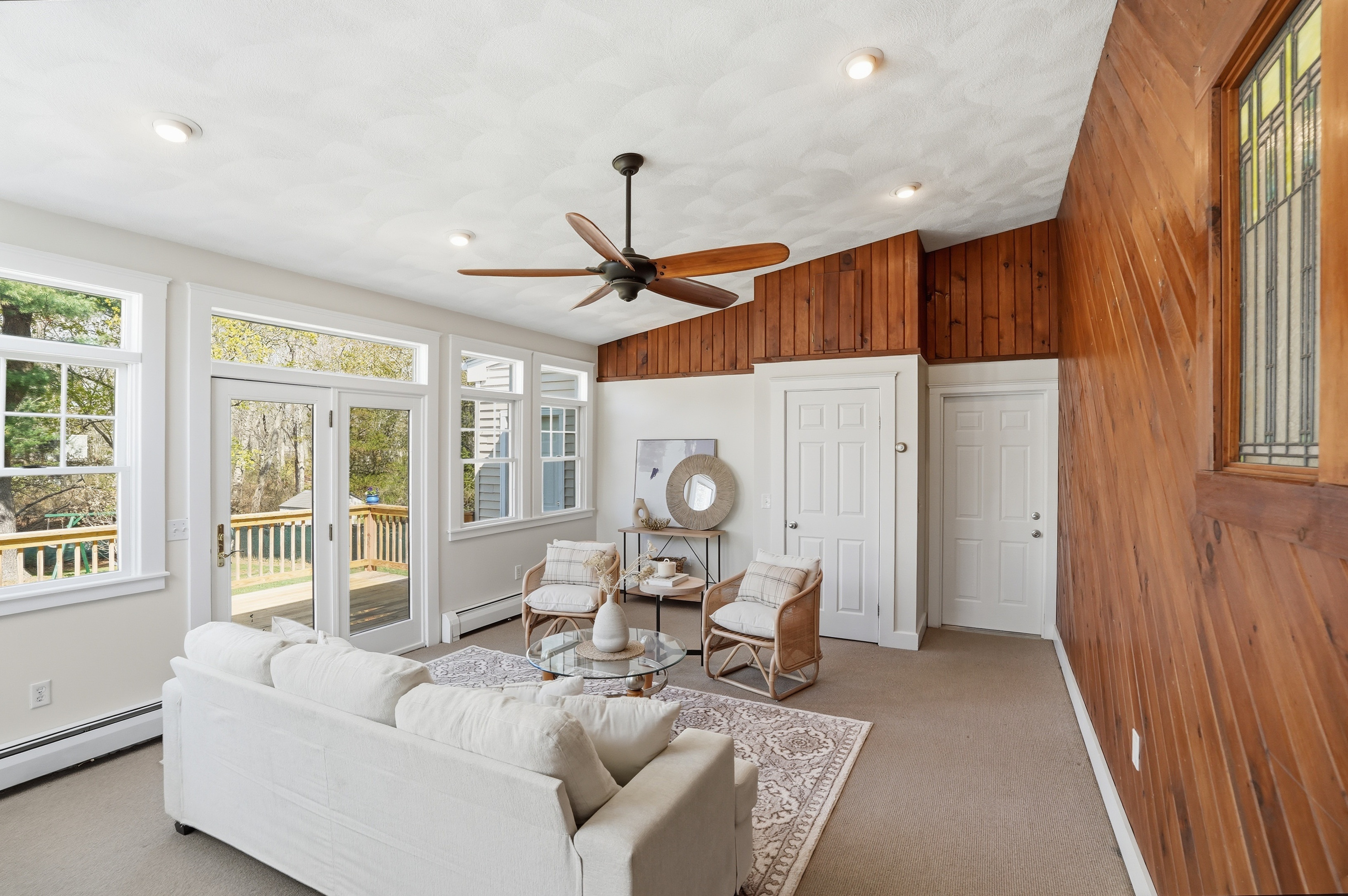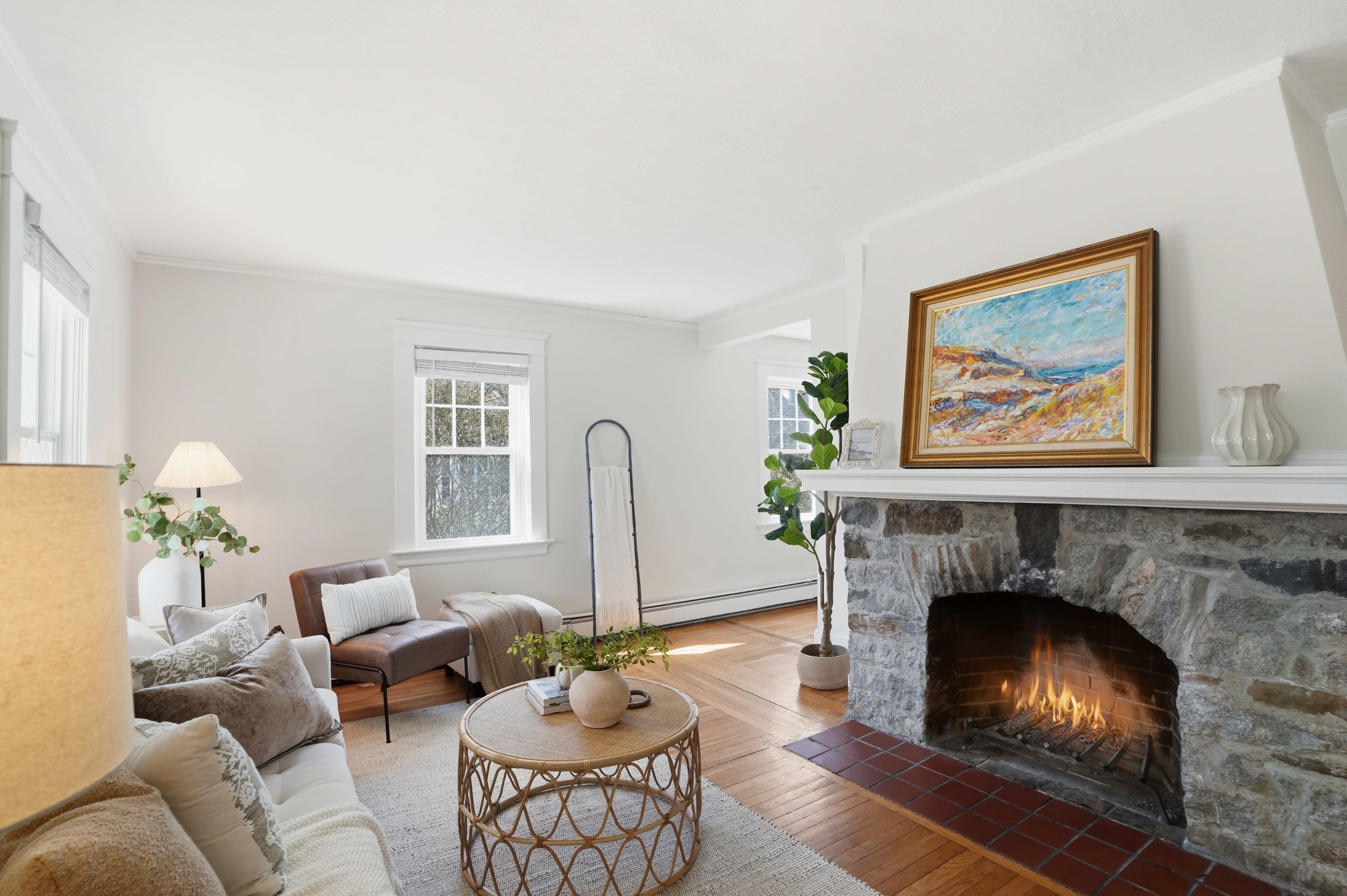 Welcome to a charming Cape offering impressive flexibility and value! This well-kept, much-loved residence features a spacious fenced yard abutting woodland, as well as a fully heated, 228 sq ft finished cottage with a full bath. Step onto the inviting front porch and into a living room anchored by a gorgeous stone fireplace. Gleaming hardwoods set the stage on the first floor, which includes a bedroom, full bath, and a versatile small room perfect as a large walk-in closet, office, or dressing room. The stylish kitchen is full of character and function, with a drop-down desk, stained glass, breakfast nook, and plentiful cabinetry. The rear family room boasts a vaulted ceiling, abundant natural light, and lovely views of the backyard, deck, and cottage. Upstairs, discover two additional bedrooms and an upper landing ideal for relaxing, reading, or studying. Charming nautical touches include an oar handrail, porthole window, and an adorable bedroom with hammocks. The full bath features a jacuzzi tub. The large unfinished basement is ideal for storage, a workshop, recreation room, gym, or office. The renovated cottage, complete with hidden drop-down beds and a modern bath, is ideal for a home office, guest space, au pair suite, or in-law area. This beloved home radiates warmth from the moment you arrive. Thoughtful details, exceptional functionality, and an ideal location near Primrose Hill School, the East Bay Bike Path, and Riverside shops make this property a true home run.