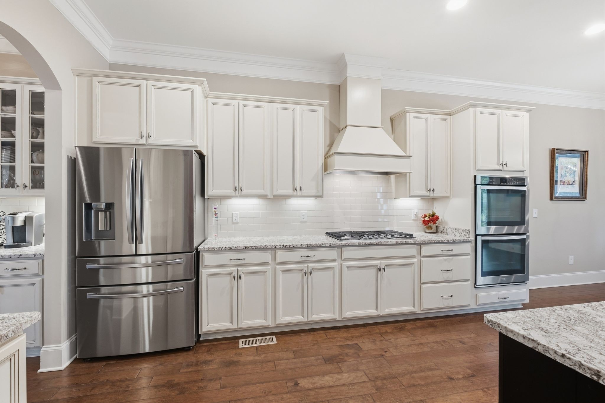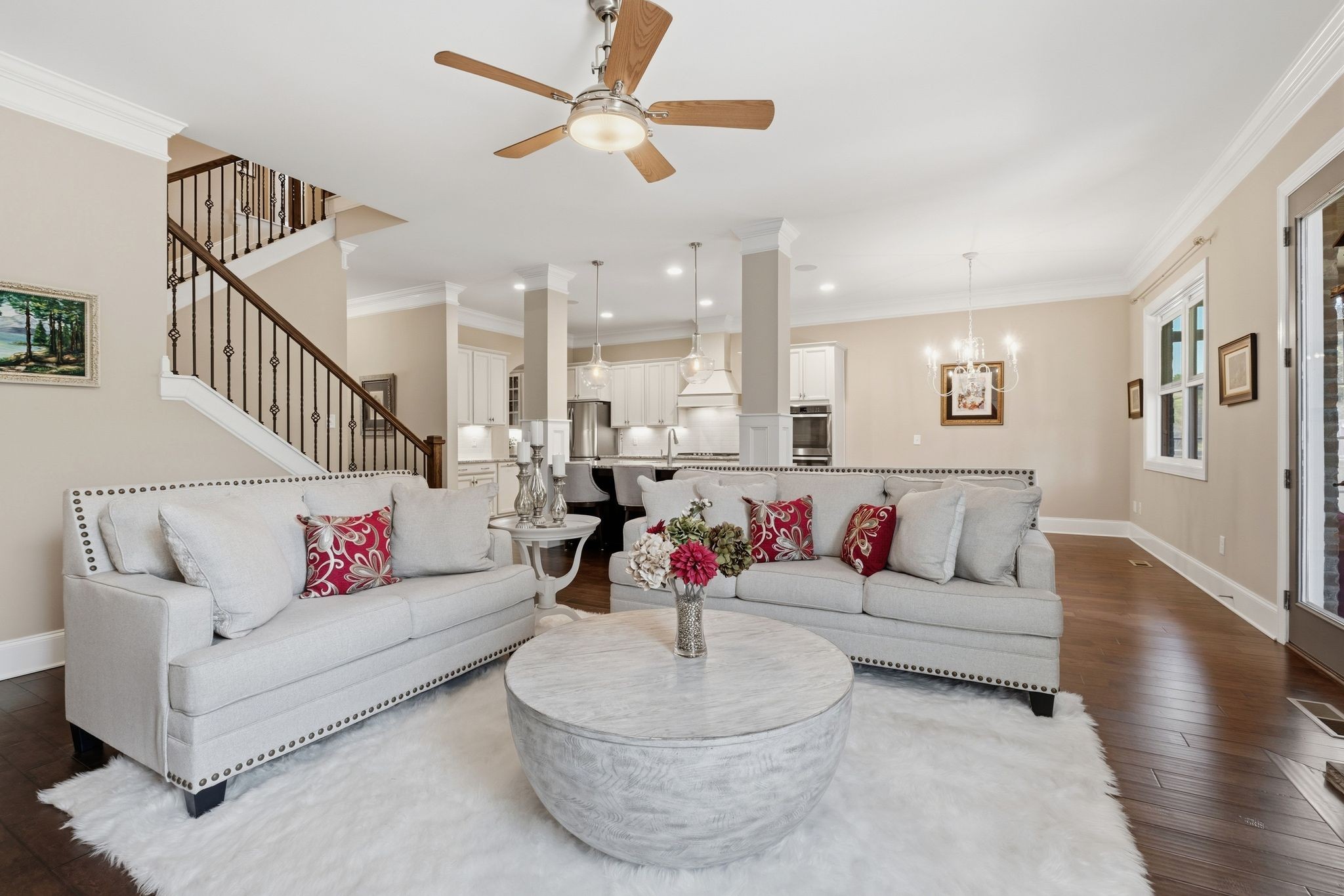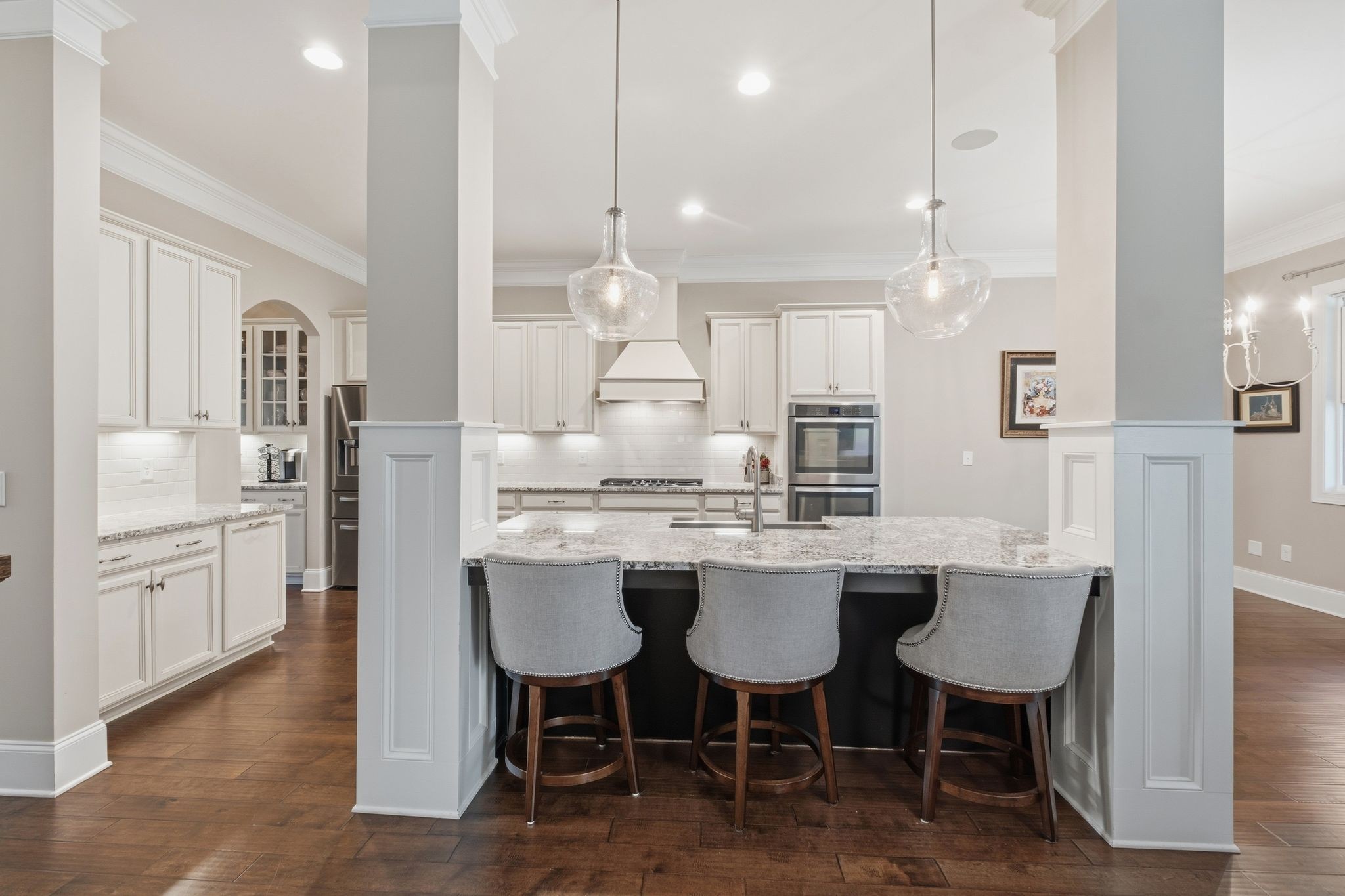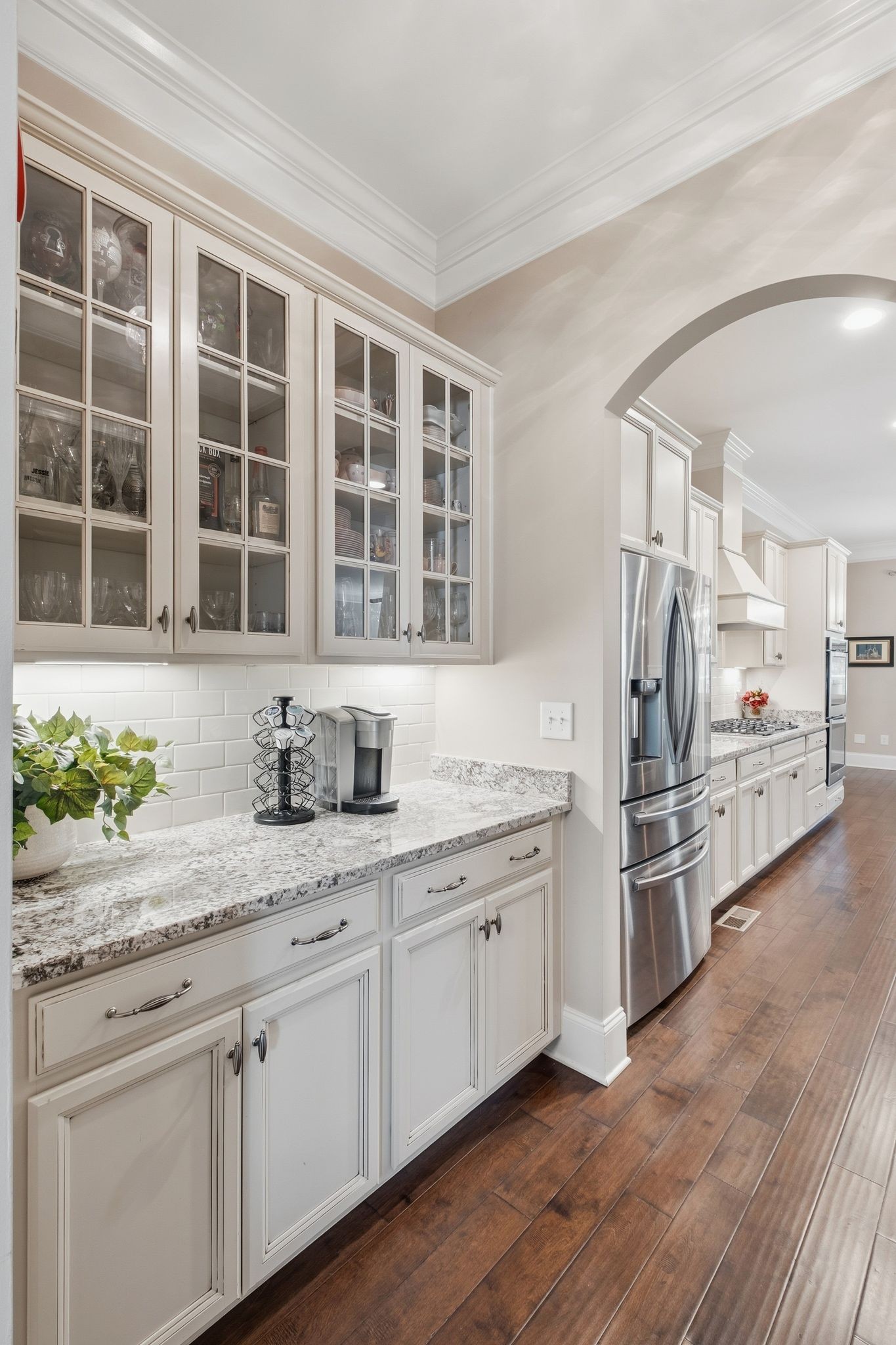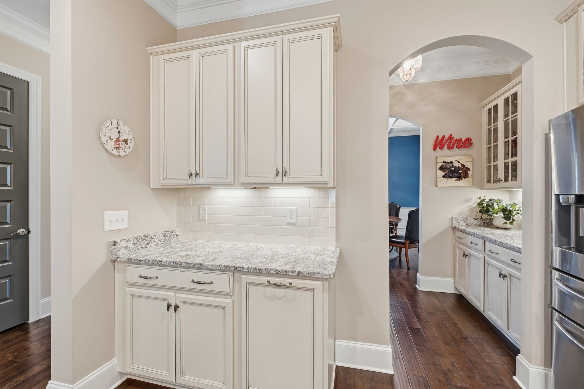 Full brick home situated on a level lot with a wooded backdrop, offering privacy and a peacefulsetting. This well-designed floor plan features two bedrooms on the main level, including aspacious Owner’s Suite and a secondary bedroom ideal for a nursery or multigenerational living,each with its own bath.The open-concept kitchen flows seamlessly into the family room and showcases white cabinetry,a butler’s pantry, and a large walk-in pantry, creating both functionality and storage. Upstairsincludes two additional bedrooms, a dedicated office, and an expansive bonus room with a walk-in closet, along with excellent attic access for additional storage.Enjoy year-round comfort in the sunroom featuring a brick fireplace with gas logs, with windowsthat open to easily convert the space into a screened porch.The three-car garage offers exceptional storage capacity, including multiple loft storage systems,and is well-suited for larger vehicles or boat storage.This home combines flexible living spaces, ample storage, and a private setting in a practical andinviting layout.