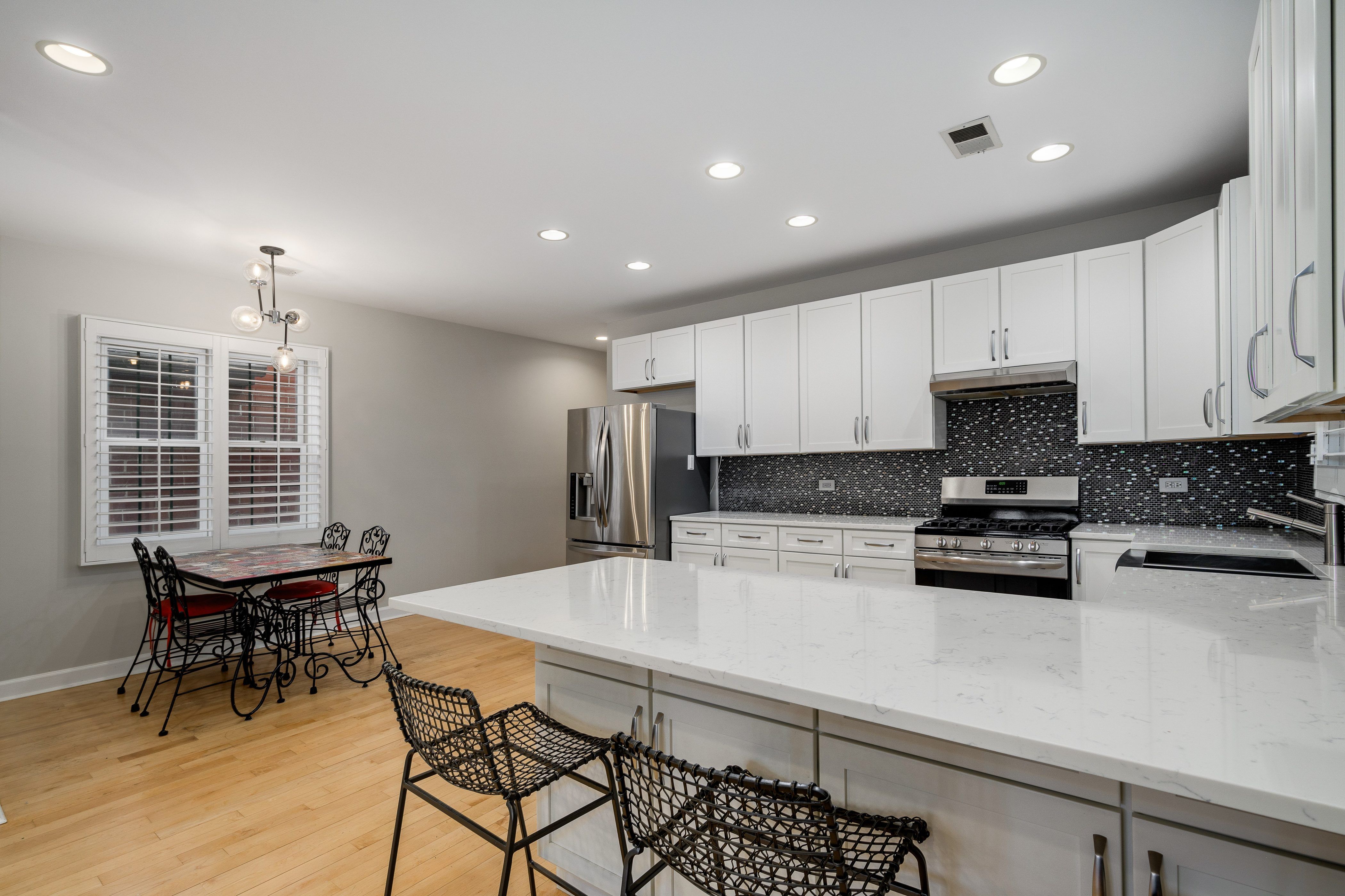 Spanning approximately 3,200 square feet, this bright and airy 4 bedroom, 3 bath penthouse duplex-up offers an exceptional blend of space and functionality, complete with garage parking and two private outdoor areas. Ideally situated on a quiet, tree-lined street in Lincoln Park within the Oscar Mayer School District. Wider than a standard layout and featuring two interior staircases, the home lives like a single family residence. The main level showcases an open-concept floor plan with a newly remodeled eat-in kitchen, plantation shutters, a spacious primary suite with double sinks and a jacuzzi tub, and hardwood floors throughout. The upper level includes a generous family room with a gas fireplace, along with the convenience of a side-by-side washer and dryer. All of this just steps from the Southport Corridor, offering easy access to shops, restaurants, and public transportation.