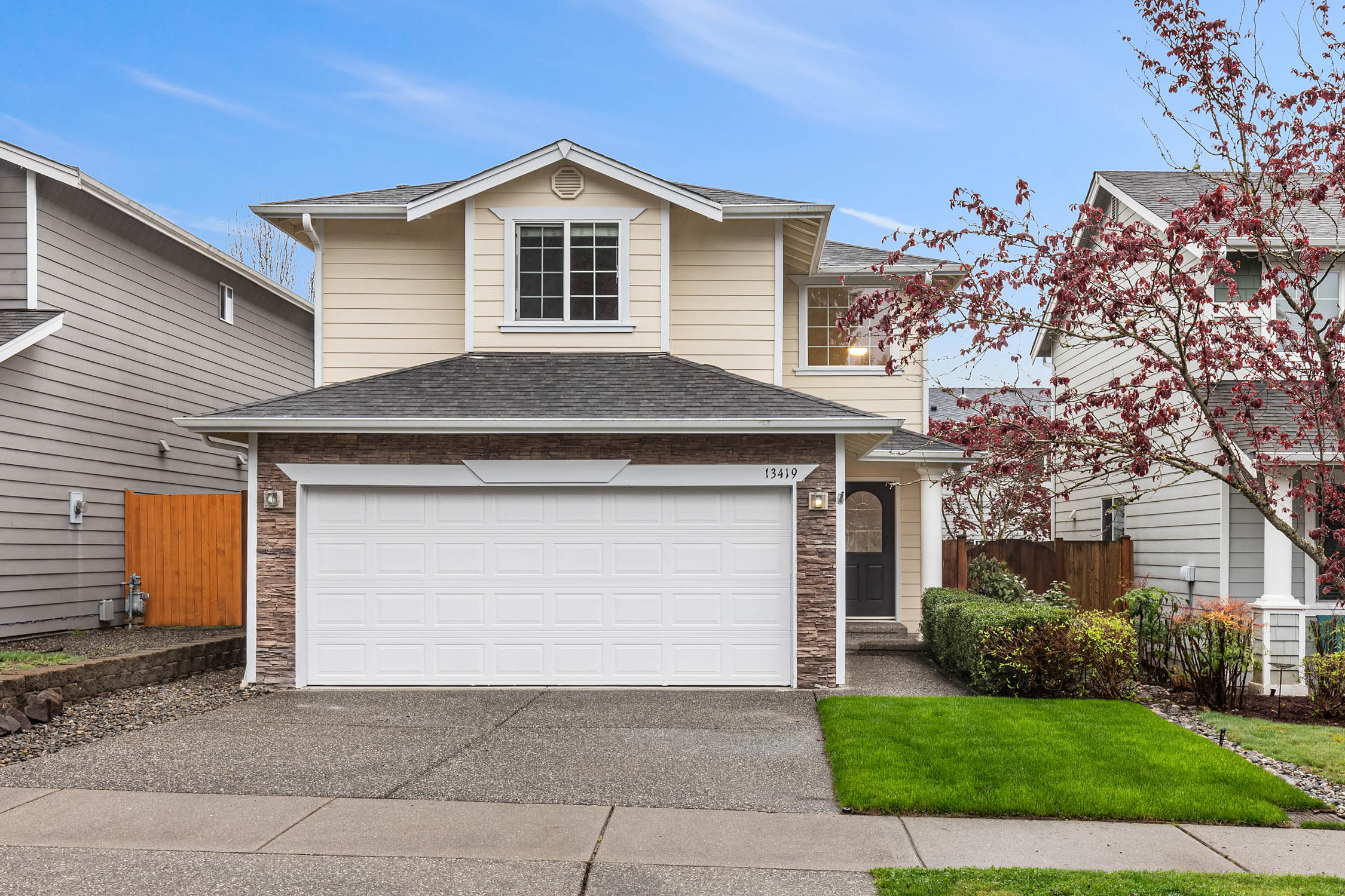 Rent this meticulously maintained and updated home in a quiet neighborhood in Mill Creek. Offering new carpet, interior paint, and new oven and refrigerator. Featuring natural light and hardwood flooring in the entry, powder room, kitchen, and dining room. Living room with gas fireplace opens to dining area for a great room concept. Spacious primary bedroom with vaulted ceiling, walk-in closet and ensuite bath offering dual sinks, large glass shower, and extensive tile. Generous guest bedrooms, a full bath, and laundry finish out the upstairs. Sun-filled backyard with ample patio and greenery provides a relaxing atmosphere. Close to Park & Ride, Mill Creek Town Center, Hwy 9, I-5/405, and parks.