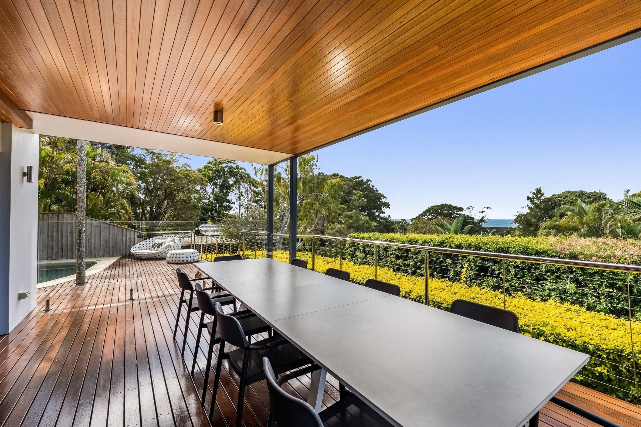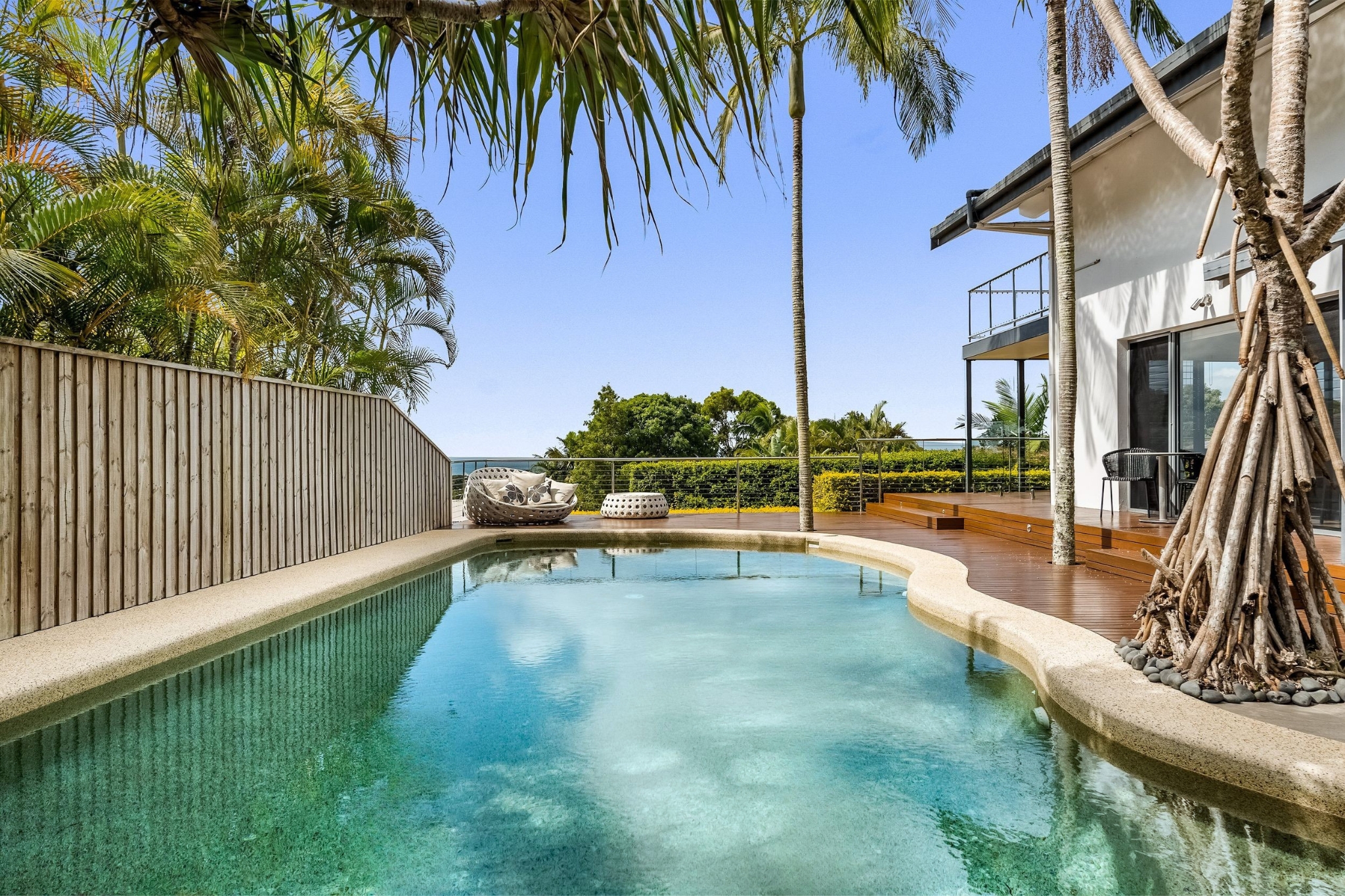 - Solar-heated saltwater pool with timber decking and resort-style daybed areas
