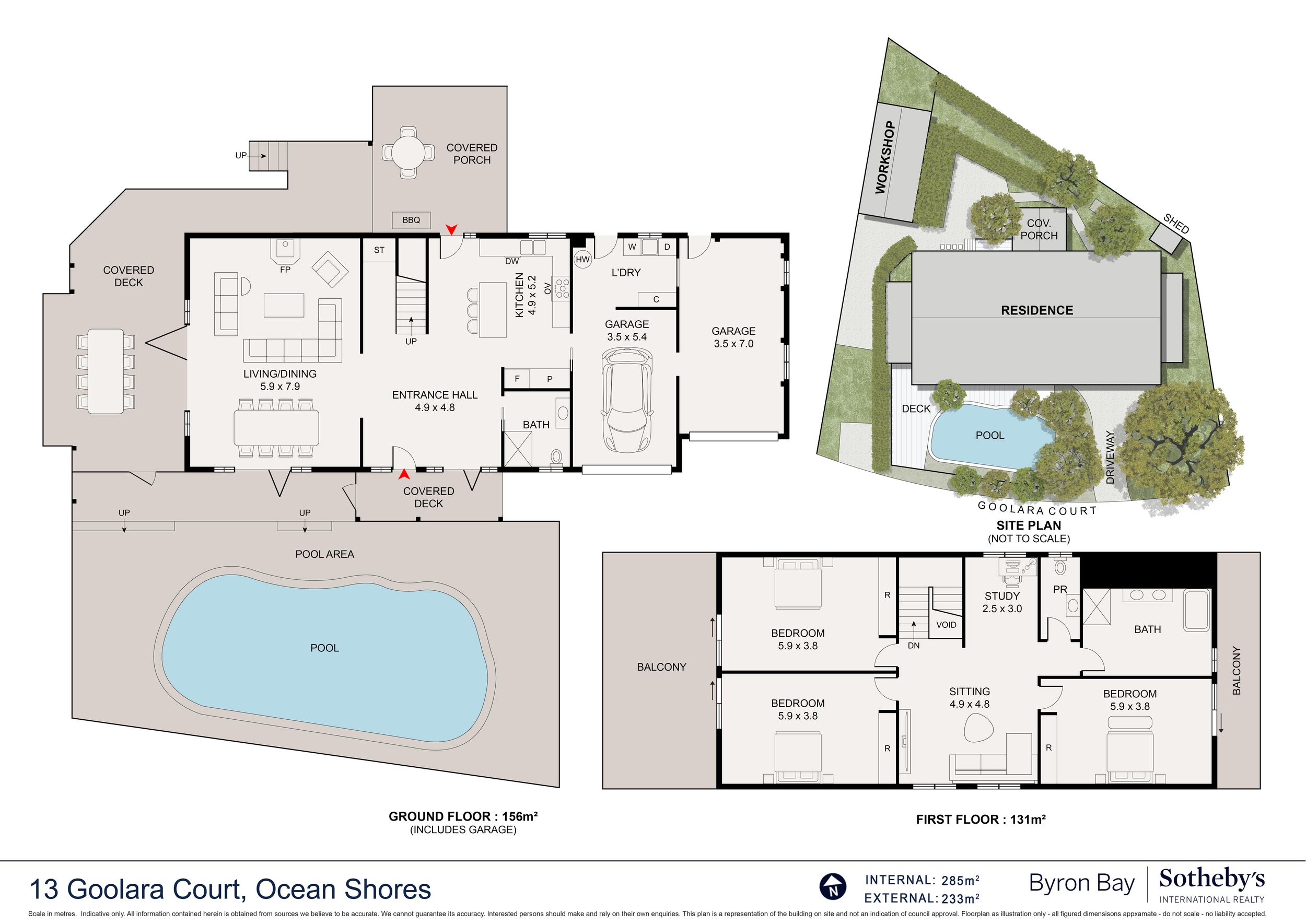 - Sweeping ocean views to Cape Byron from living areas, bedrooms, decks and pool