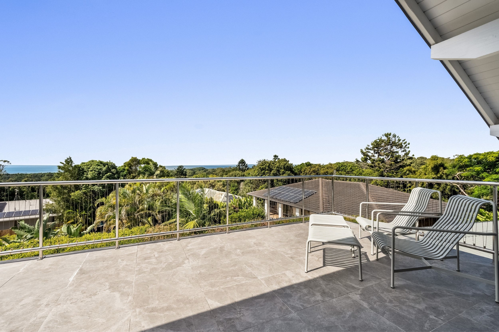 Set high in a private cul-de-sac, 13 Goolara Court is an architecturally designed residence that captures sweeping ocean vistas across the Pacific to Cape Byron, delivering a rare fusion of privacy, coastal grandeur and resort-inspired living. Framed by lush, established tropical gardens, this home offers a true sanctuary where every east-facing room and balcony embraces the ever-changing blues of the ocean, creating a sense of calm and seclusion just moments from the coast.