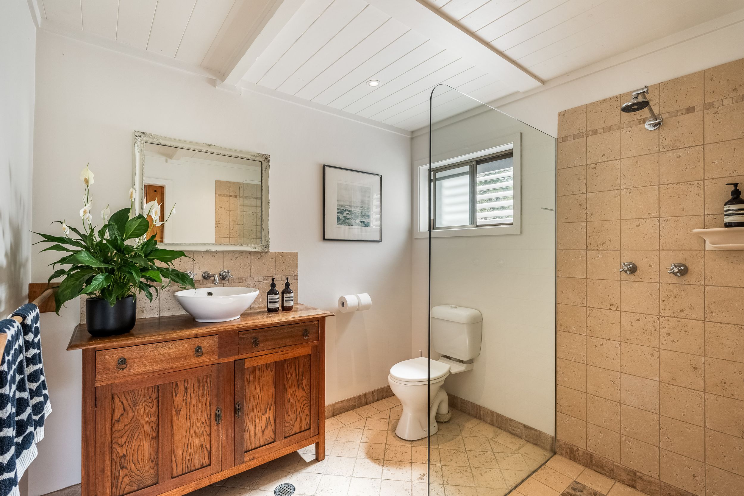 - Three generous bedrooms, two with ocean views, all with built-in robes