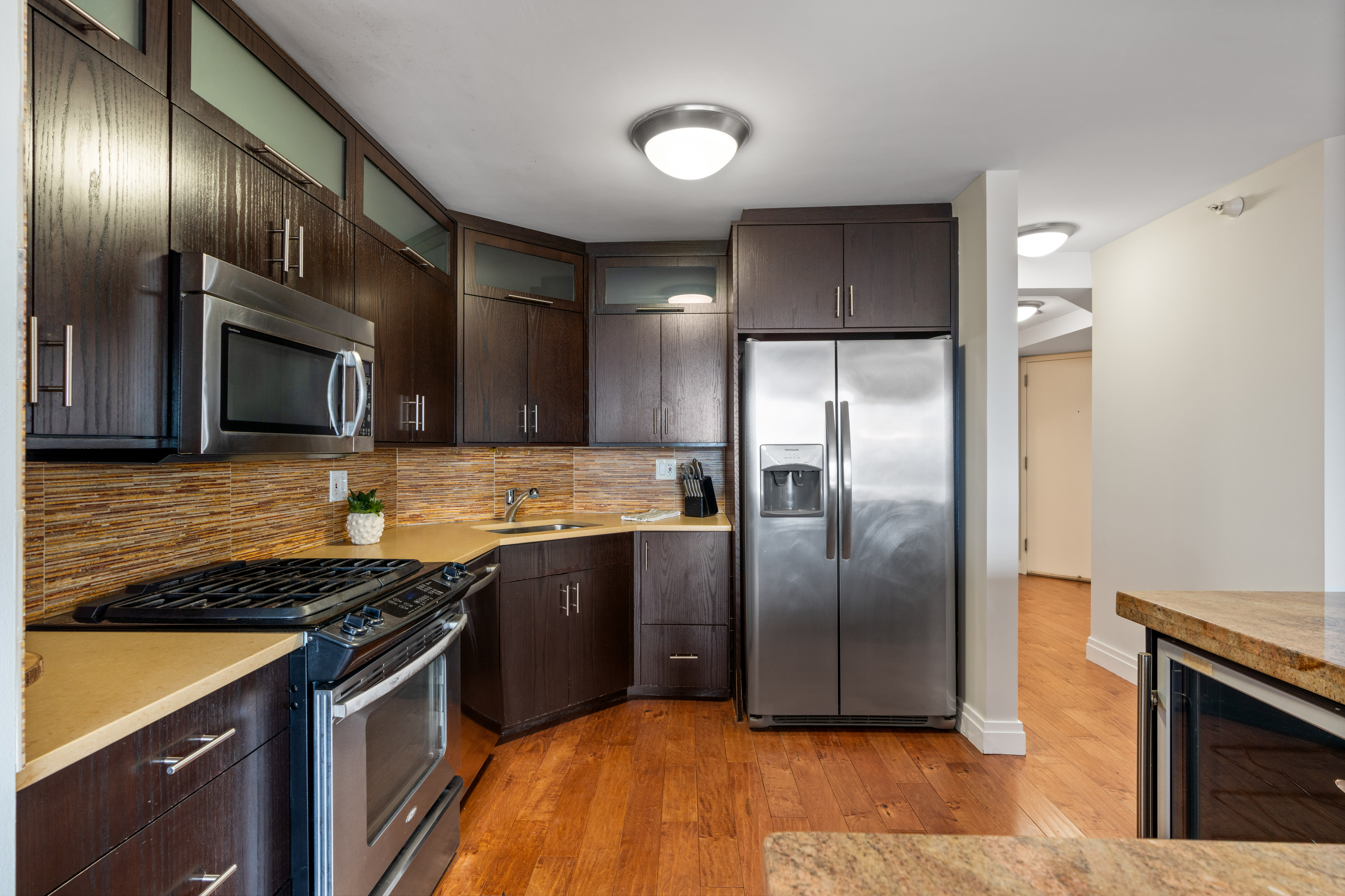Best Tier of 2Bed+2Bath in 5-Star Building (The Grand Plaza). Very spacious split bedroom floorplan. An amazing 36 ft balcony too! All elegant finishes with espresso cabinets, Stainless Steel appliances, stone/granite kitchen counters and island, hardwood floors in living areas, floor to ceiling windows with amazing CITY VIEWS from every room, In unit washer/dryer. Tons of storage (multiple walk-in closets) Huge PRIVATE Balcony for entertaining. The most amazing amenities! Health club, outdoor pool, deck with grills, running track, basketball court, wintergarden, party room, library, business center, and much more. Parking available for rent from garage. ASSESSMENTS INCLUDE: cable, internet, gas, heat, air conditioning, water and amenities.