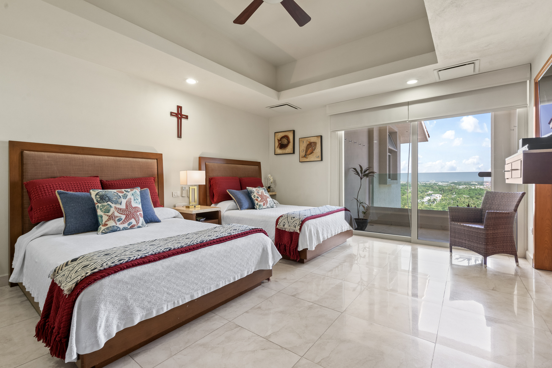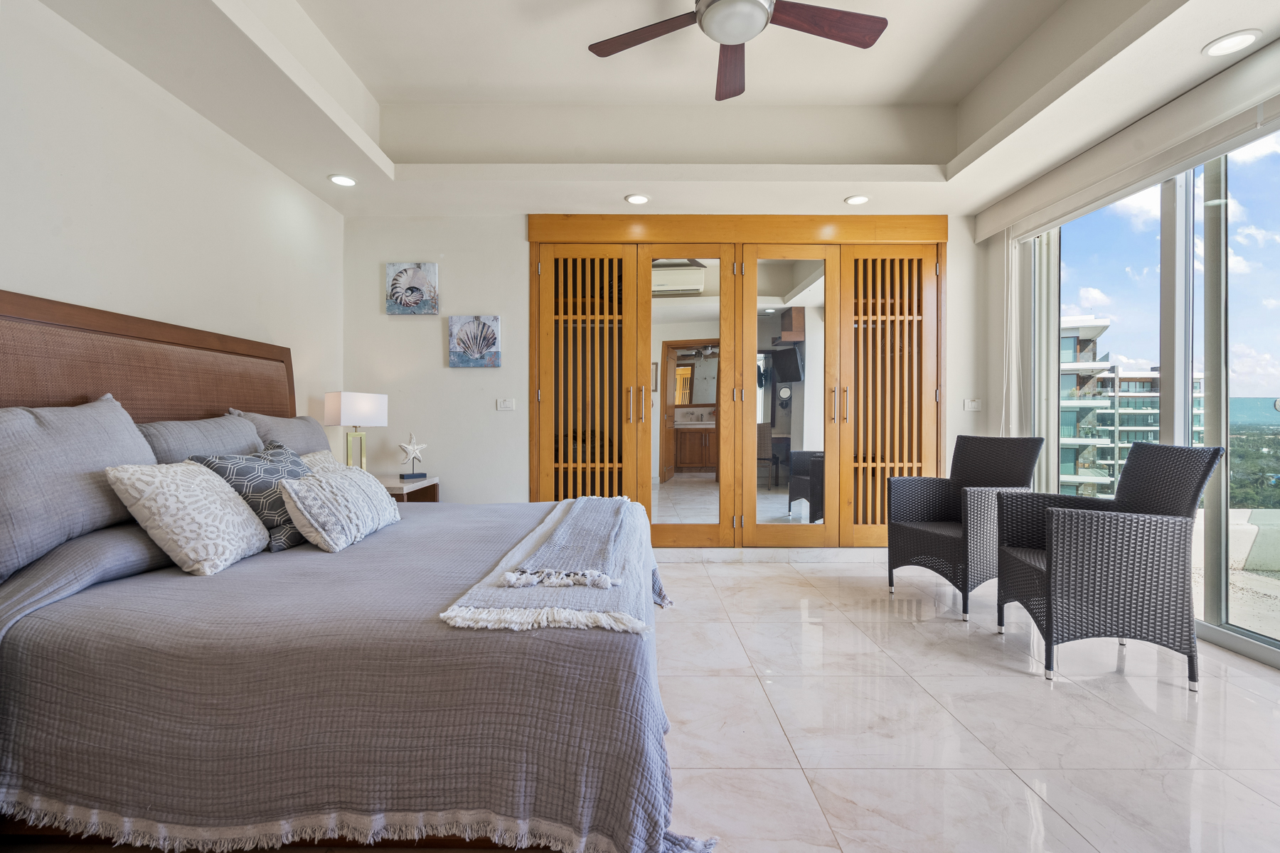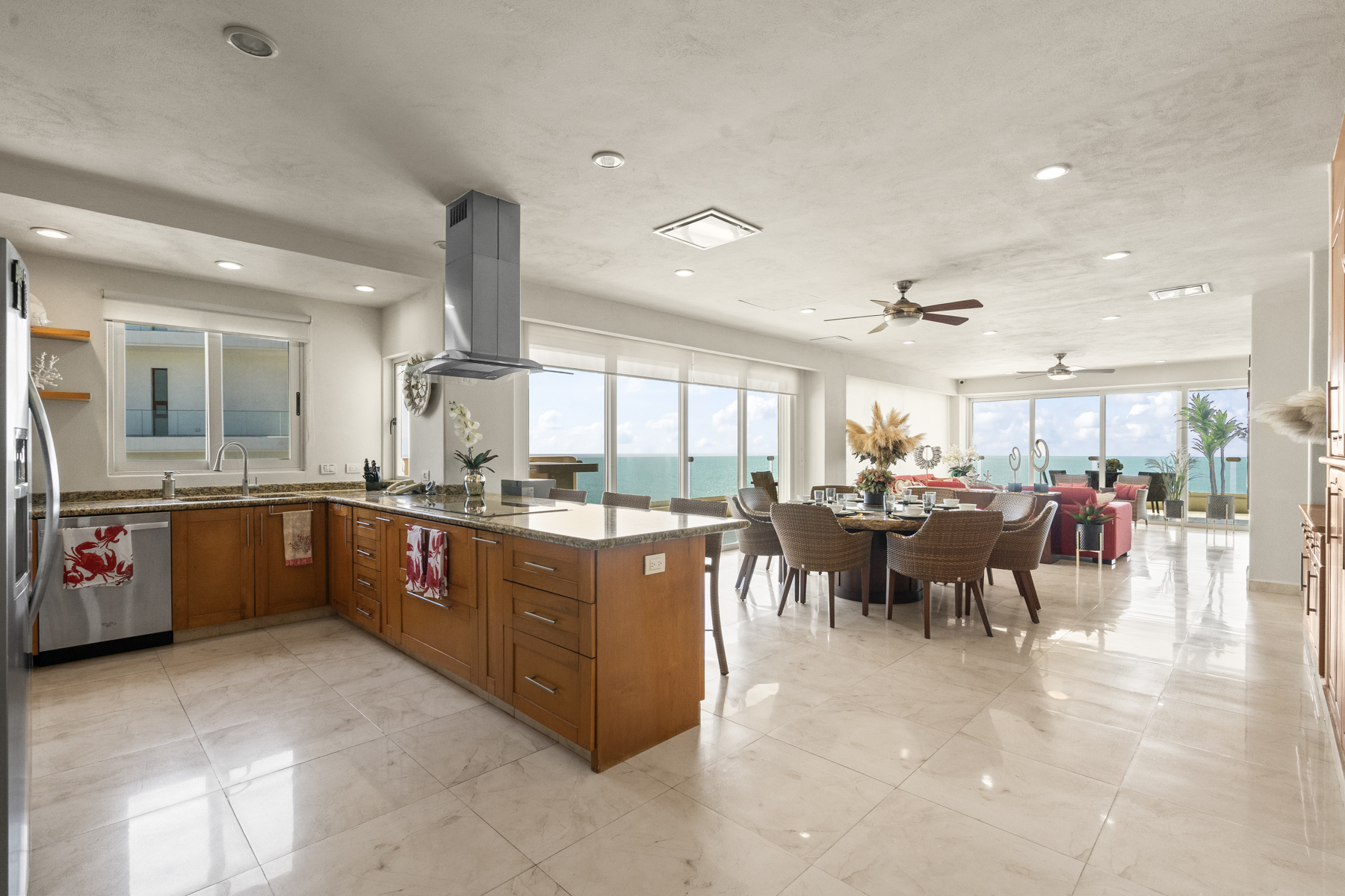 With a spacious and versatile layout, the residence features 5 bedrooms distributed across two levels, comfortably accommodating groups or families of up to 8 adults—making it an ideal option for premium stays in Riviera Nayarit.
