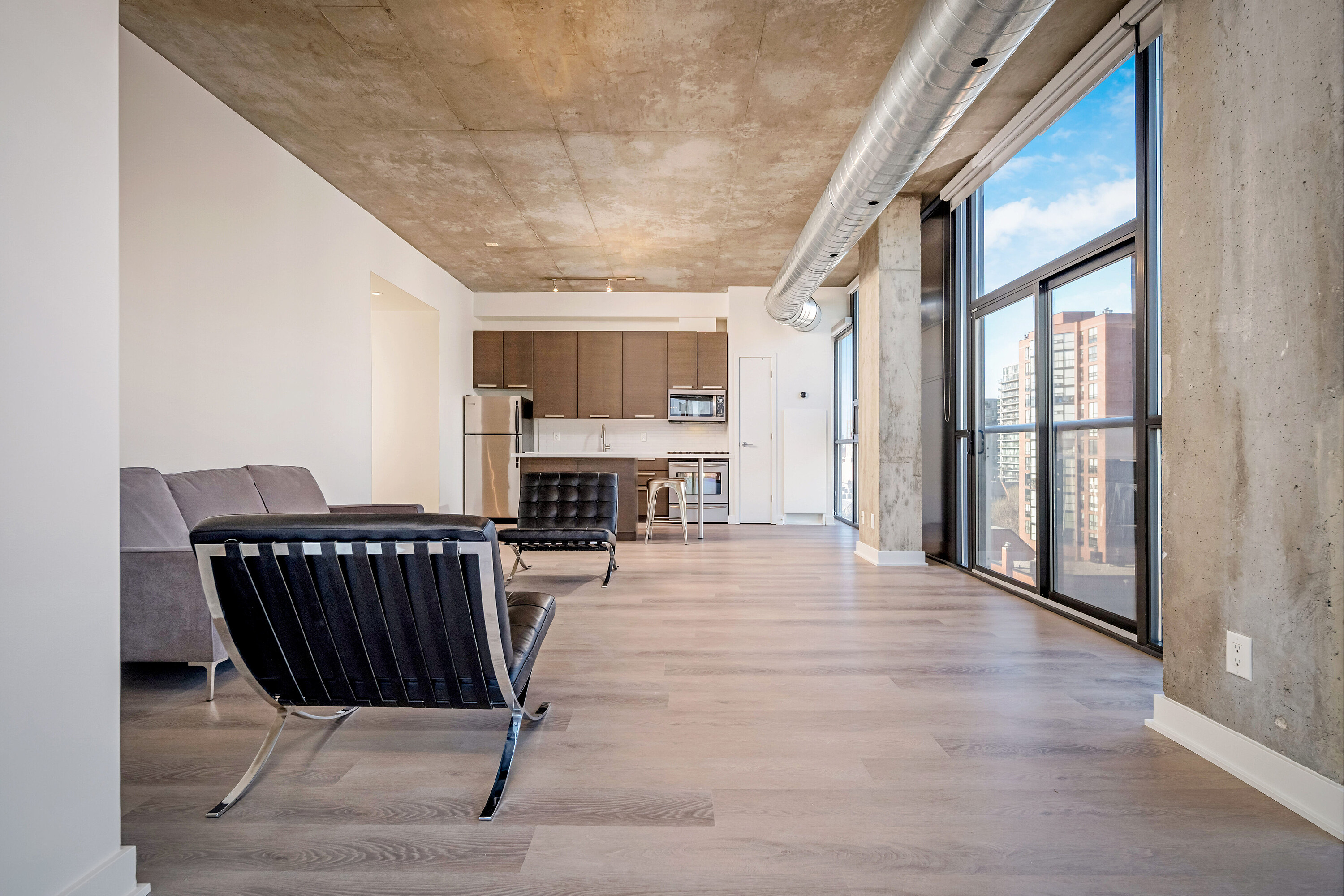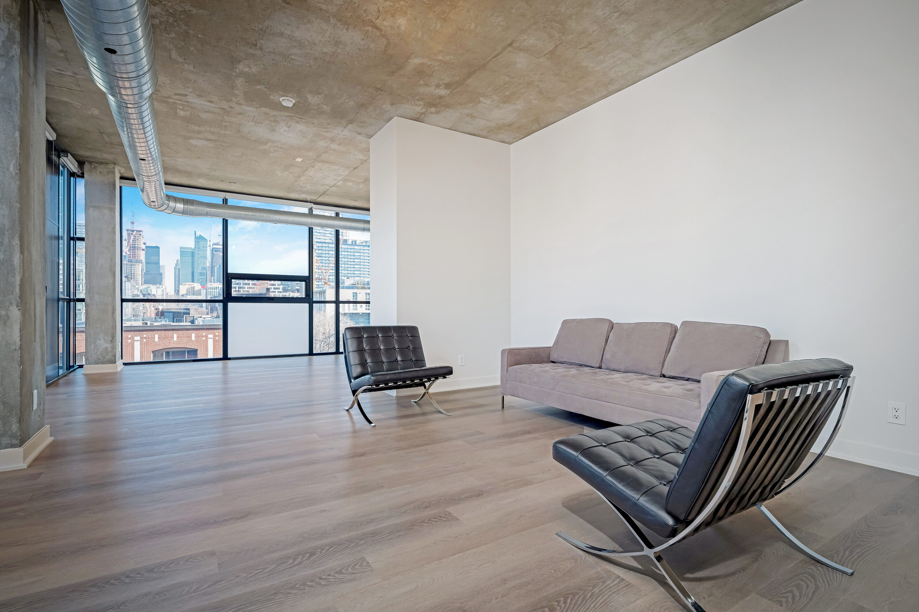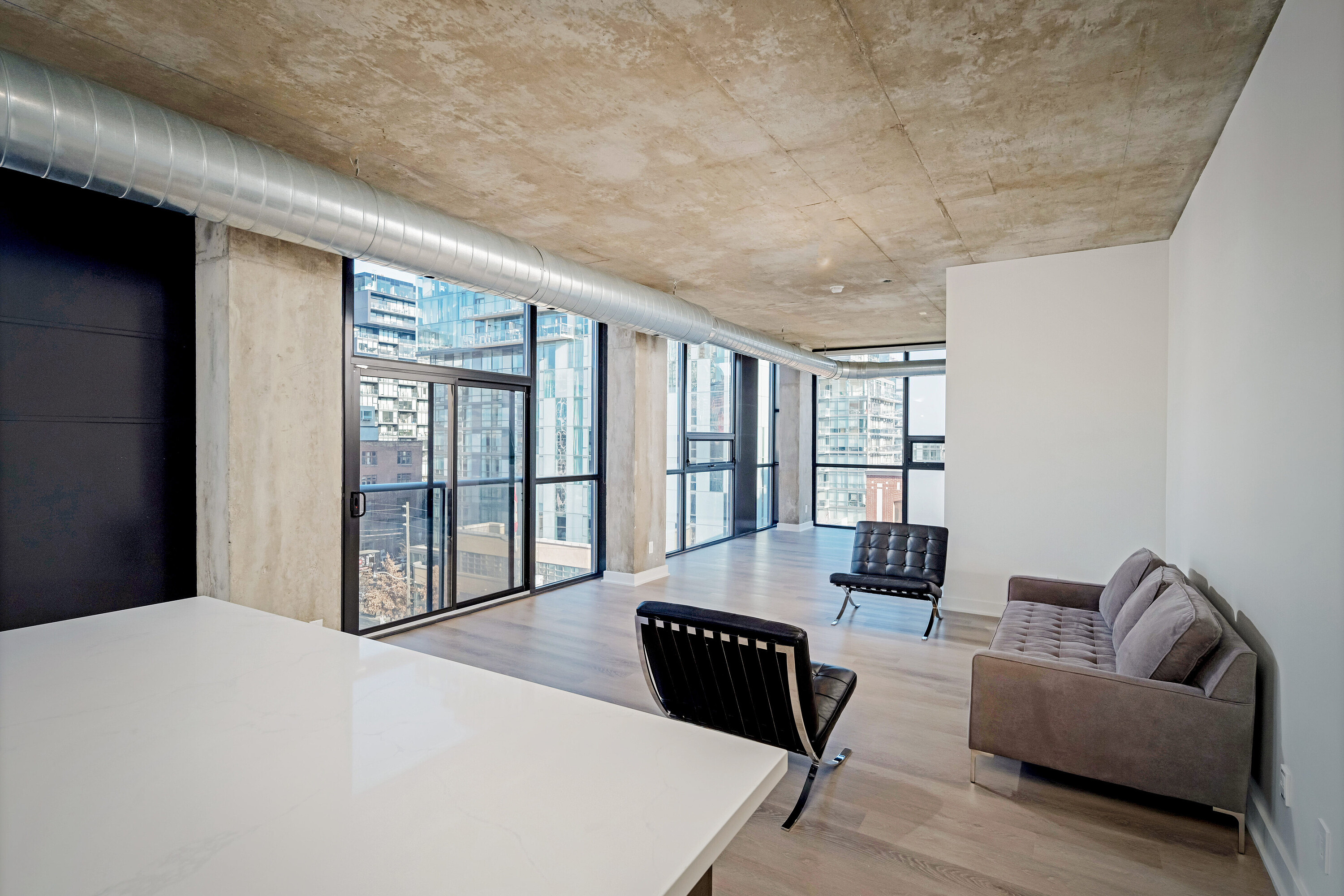 Welcome to Sixty Lofts in the heart of trendy King West. Spectacular open concept corner unit loft featuring 10 feet ceilings, 1081 square feet, 1 bedroom, and 2 bathrooms. Fully renovated with new flooring, new lighting, new kitchen counter, fresh paint, closet organizers, and much more. Finished with exposed concrete ceiling and columns, and industrial style exposed ductwork. Floor to ceiling windows with north and east exposure with tons of natural lighting. Ideal location close to parks, restaurants, shops, nightlife, markets, subway, and major commuter routes.