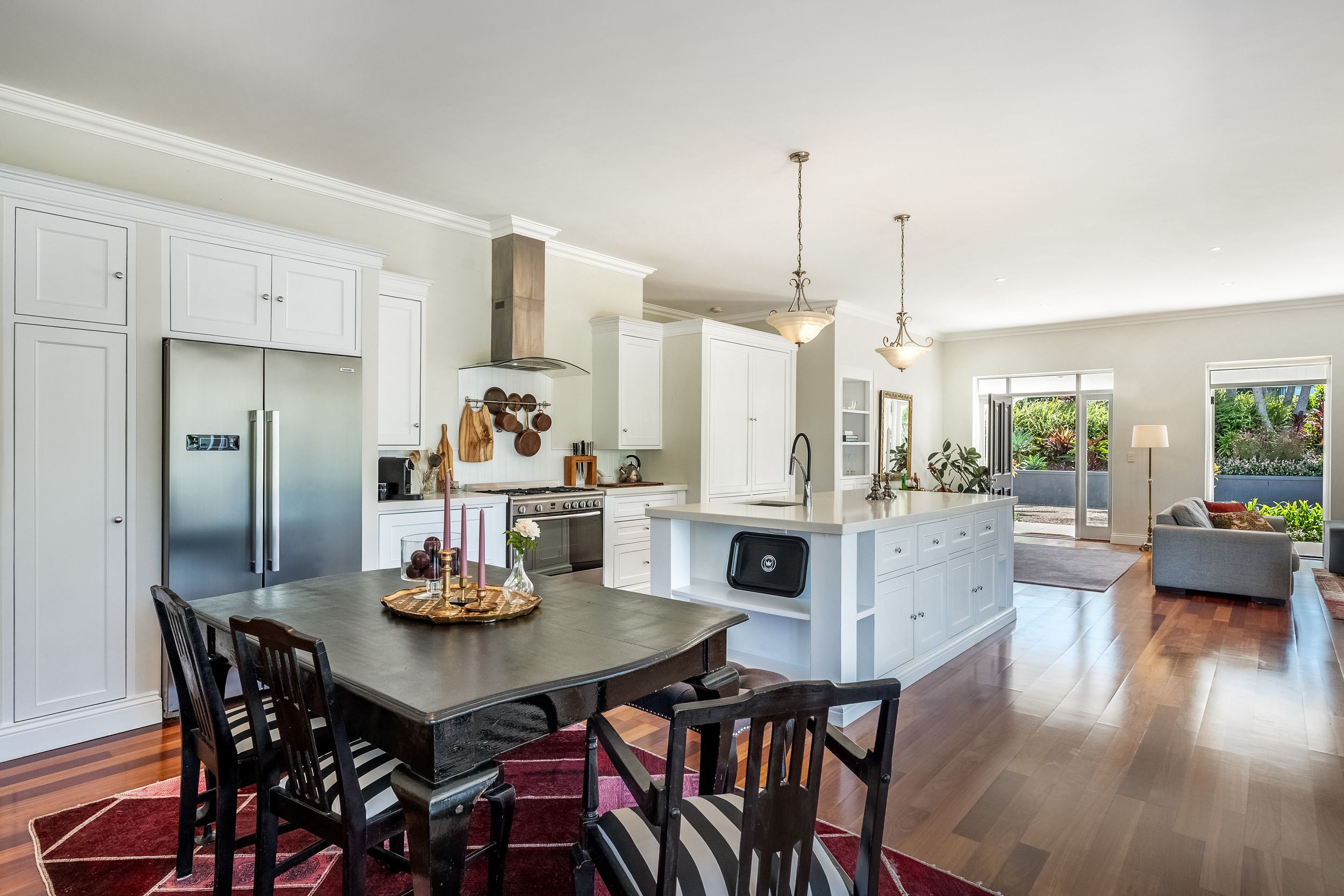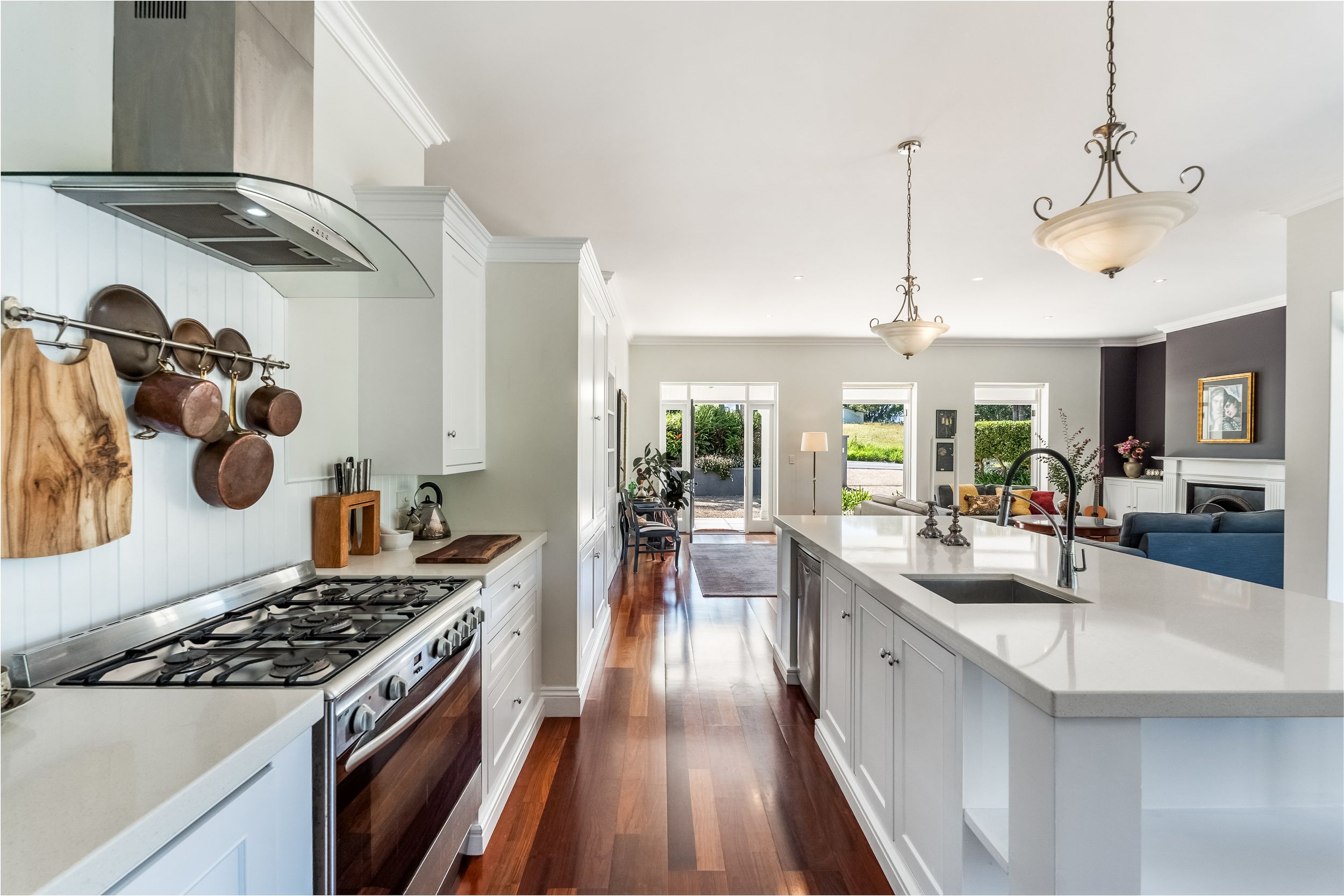 - Quality kitchen with stone benchtops, freestanding large gas range and timeless Shaker-style cabinetry