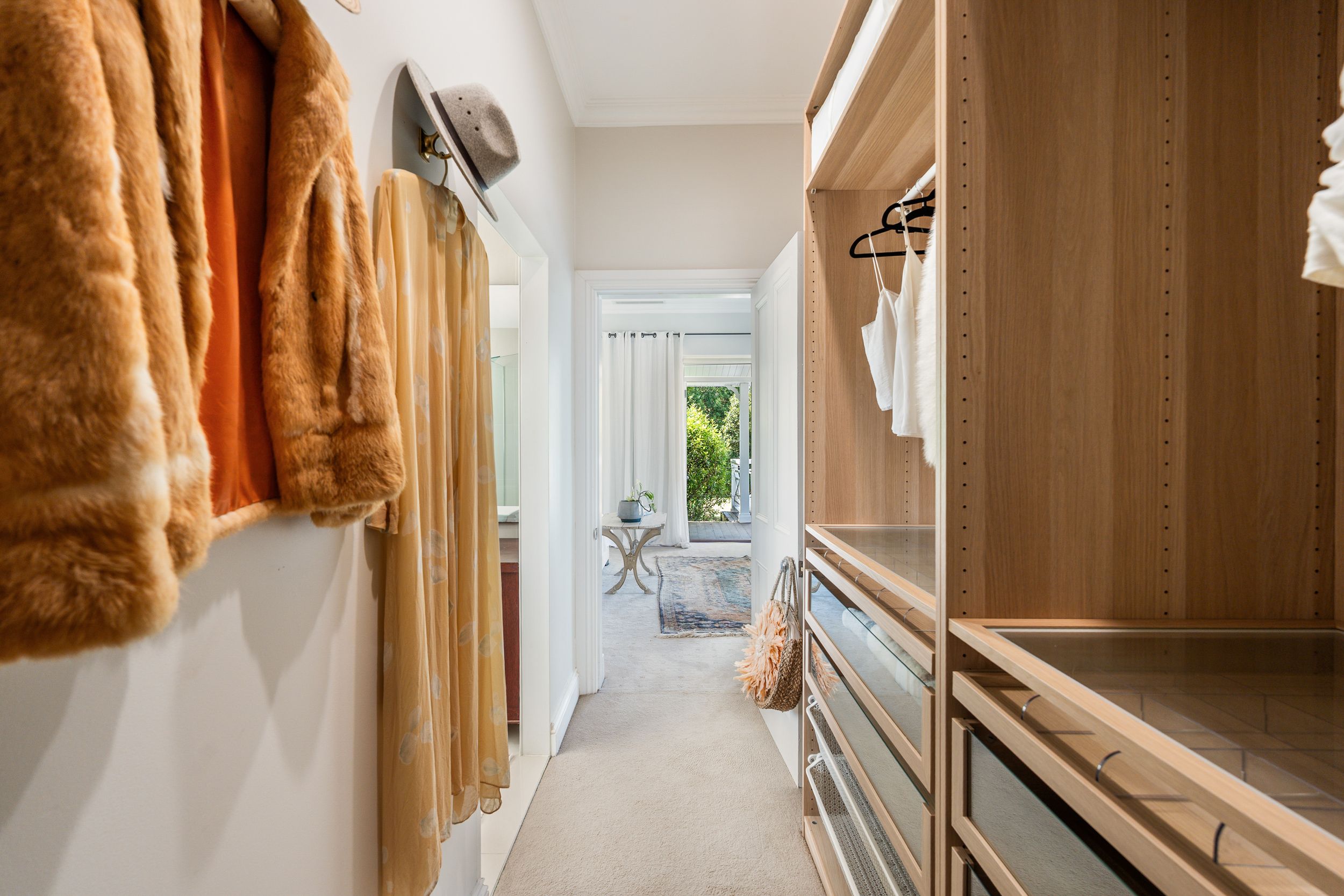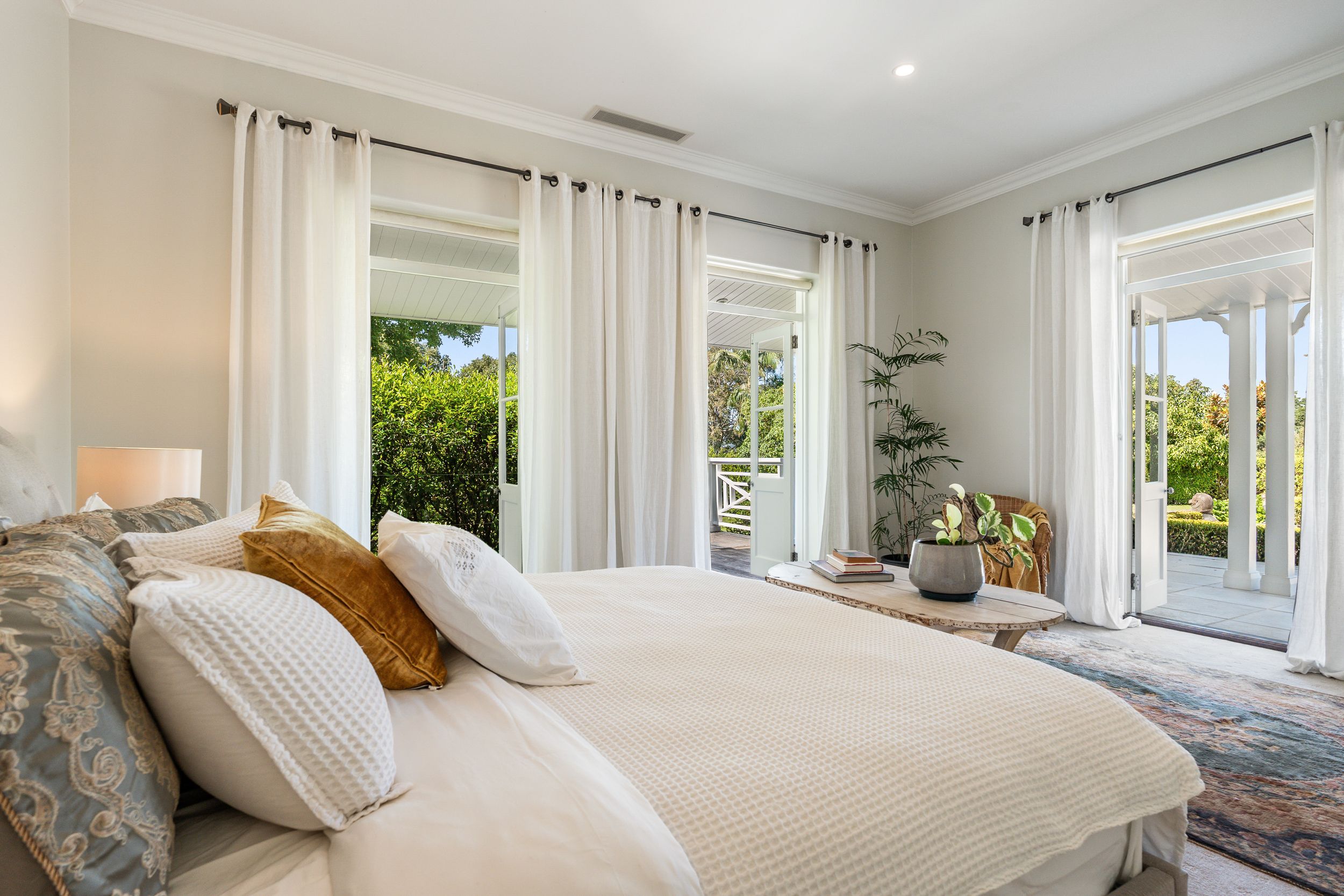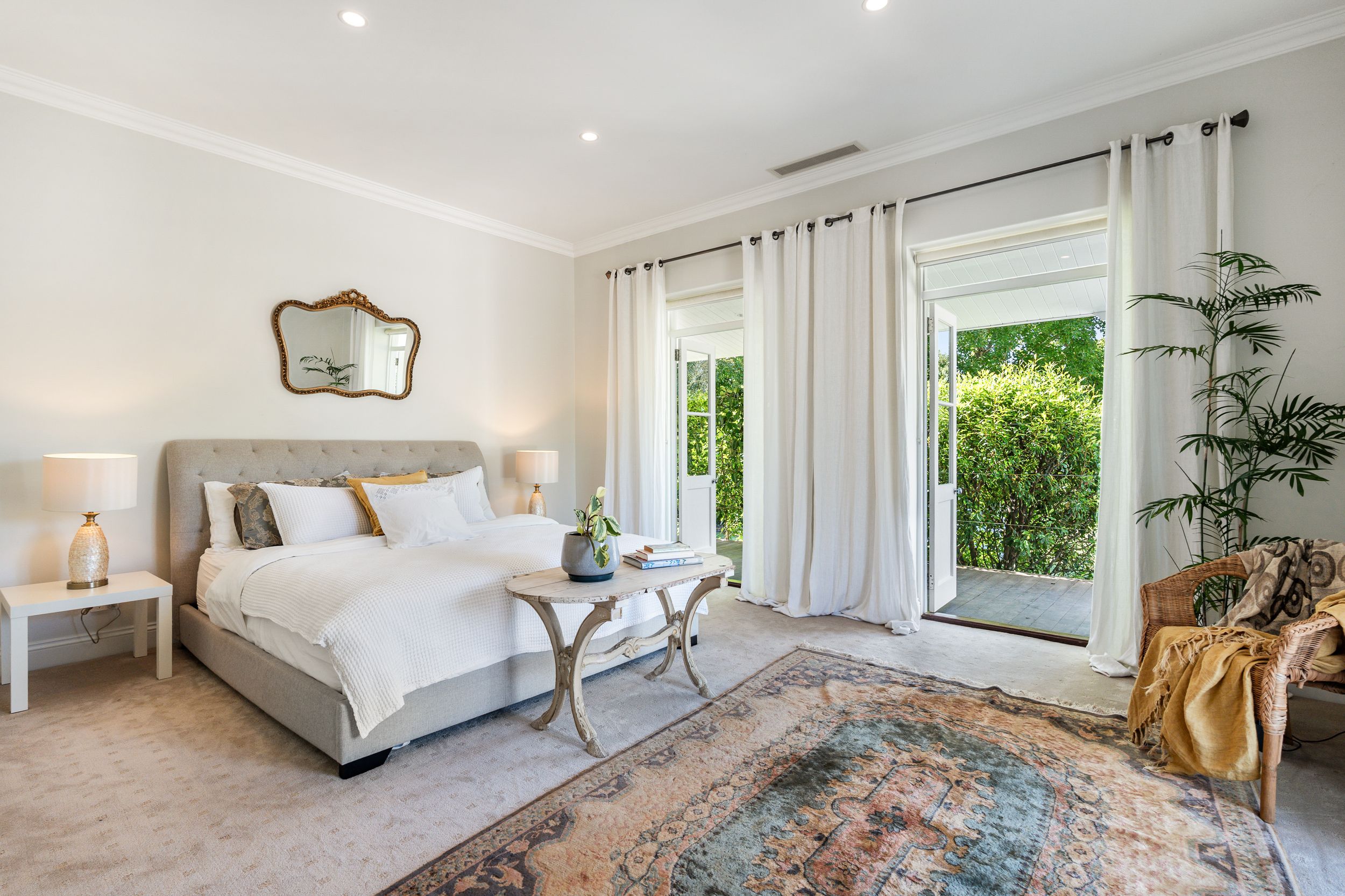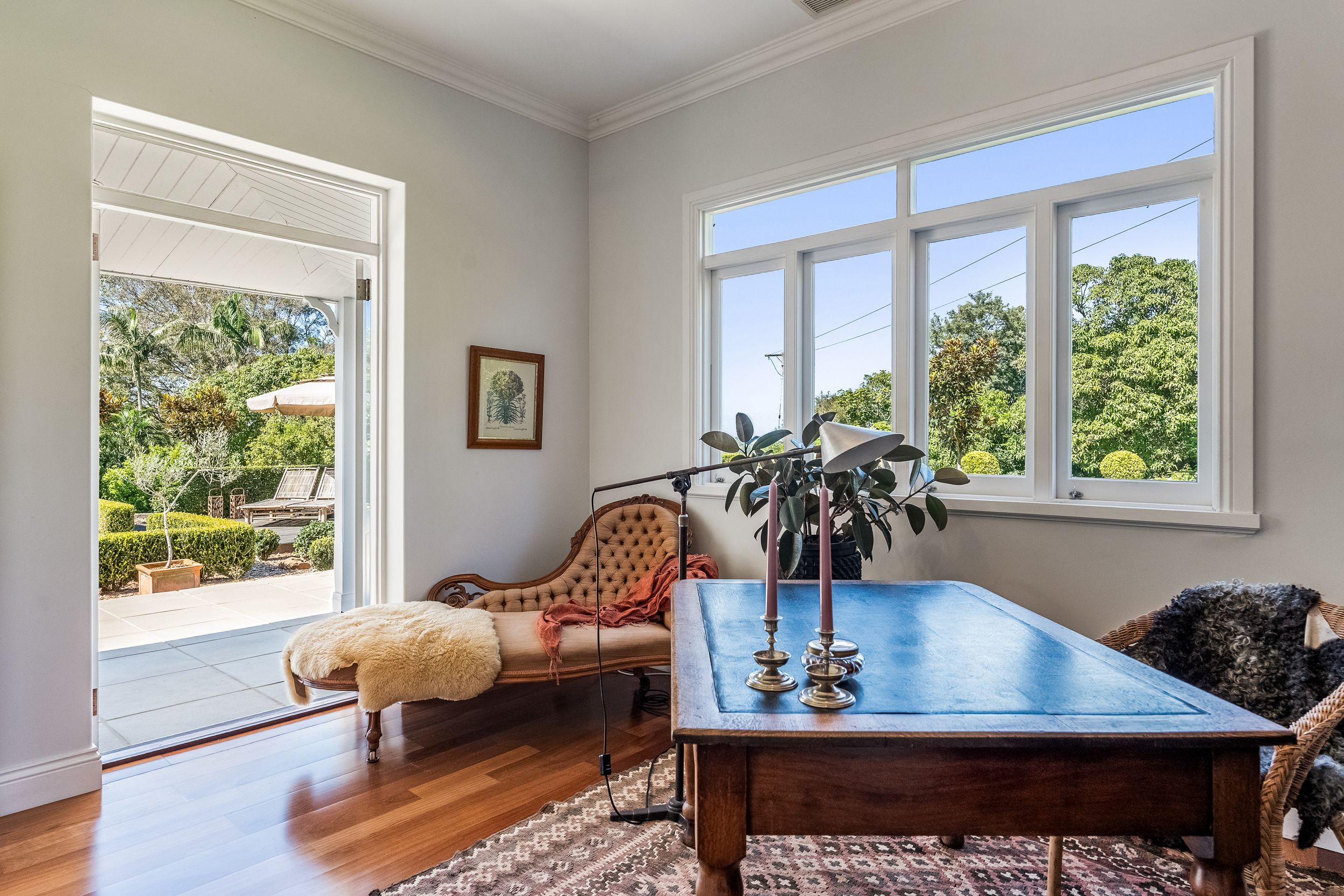 The house itself is a masterpiece in yin yang balance. Straight lines and curves interplay in classic architecture. The high ceilings, crown mouldings, rich timber floors, arched cast iron fireplaces and abundance of French double doors are all a graceful protest against fast fashion and the generic. Every room is airy, bright and calm. Nothing is missing, nothing is an afterthought. House and nature integrates: the many rooms open up onto the abundant garden carefully curated with roses, flowers, hedges and trees, balancing free flow with geometrical shapes.