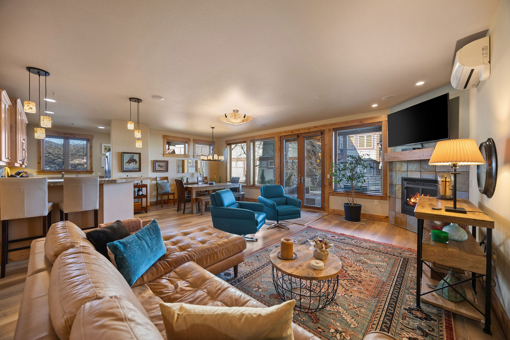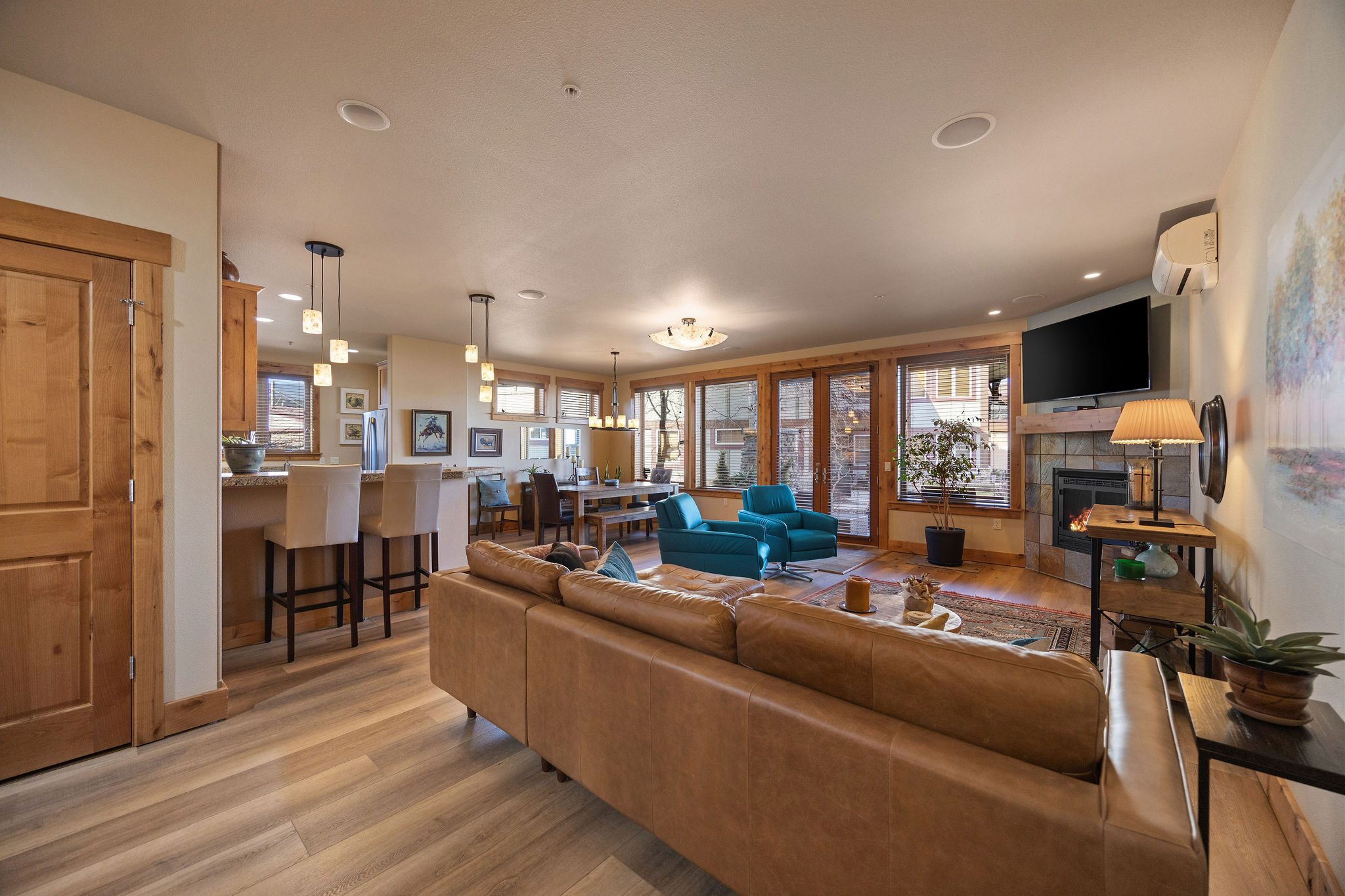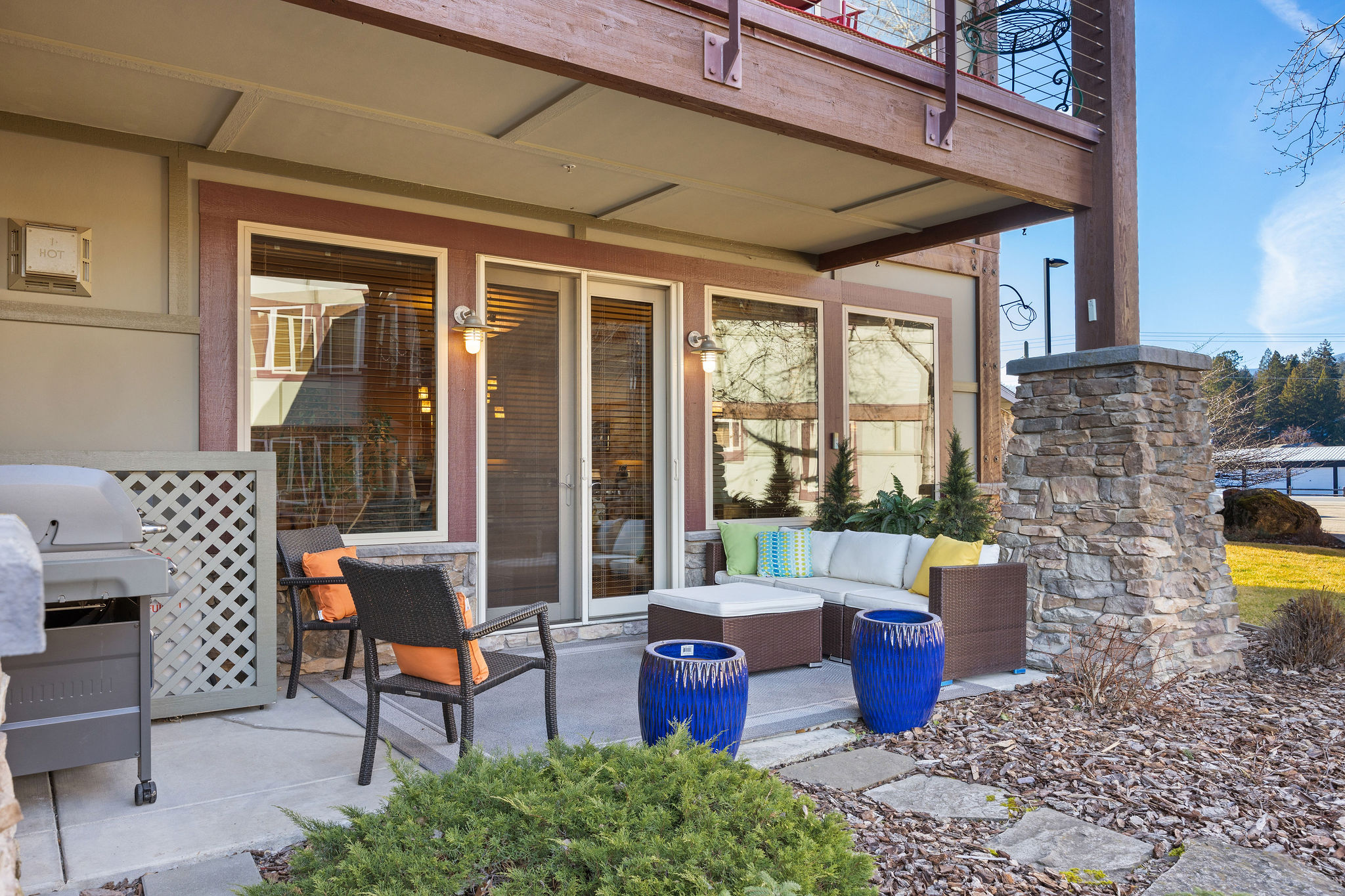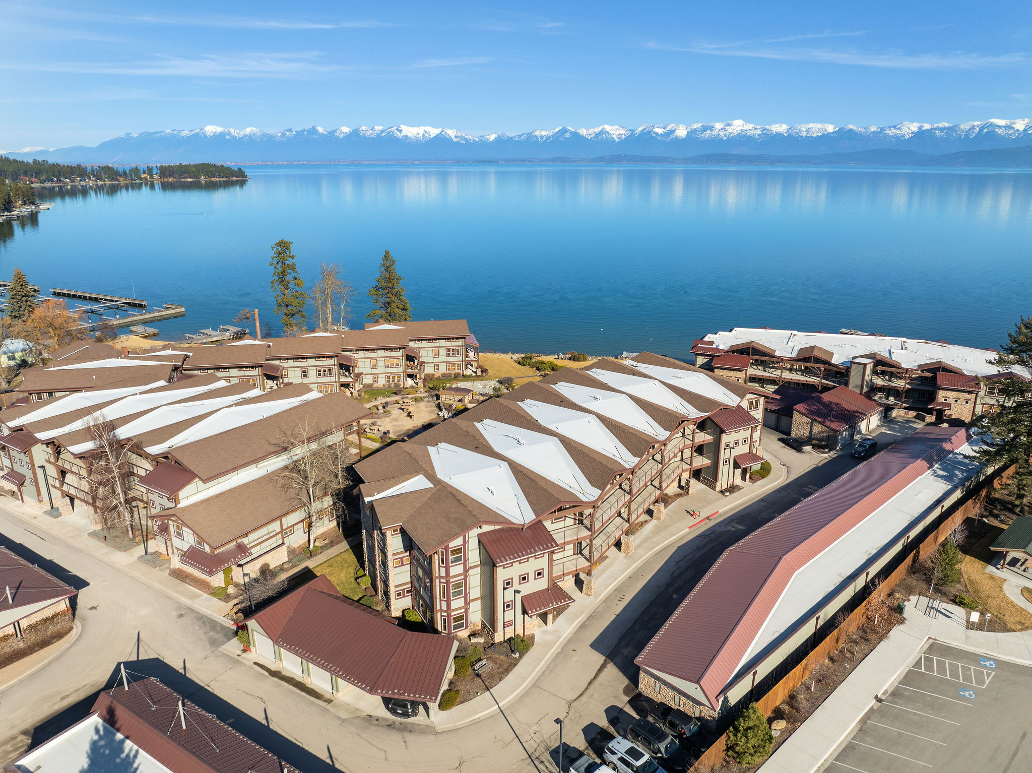 Nestled along the shores of Flathead Lake, this ground level condo in Waterside is an inviting retreat that offers the perfect blend of comfort, convenience, and natural beauty. Step inside to an open-concept living space filled with natural light, where large windows and a cozy patio showcase stunning water and mountain views. The well-equipped kitchen flows seamlessly into the living and dining areas, making it ideal for entertaining or relaxing after a day on the lake. This desirable end unit offers added privacy along with the ease of single-level living—featuring zero stairs for effortless access and wide doorways that enhance comfort and accessibility throughout the home, and an extra wide, single car garage steps from the front door. Enjoy direct access to the water, whether you're boating, swimming, or simply soaking in the serene surroundings. This condo also features 2 bedrooms and 2 bathrooms, providing ample space for family and friends alike. Situated in the heart of Lakeside, with easy access to local shops, dining, and outdoor recreation, including hiking, skiing at Blacktail Mountain, or take a drive to Glacier National Park. This property is perfectly situated for year-round enjoyment. Don't miss your chance to own a slice of paradise on Flathead Lake.