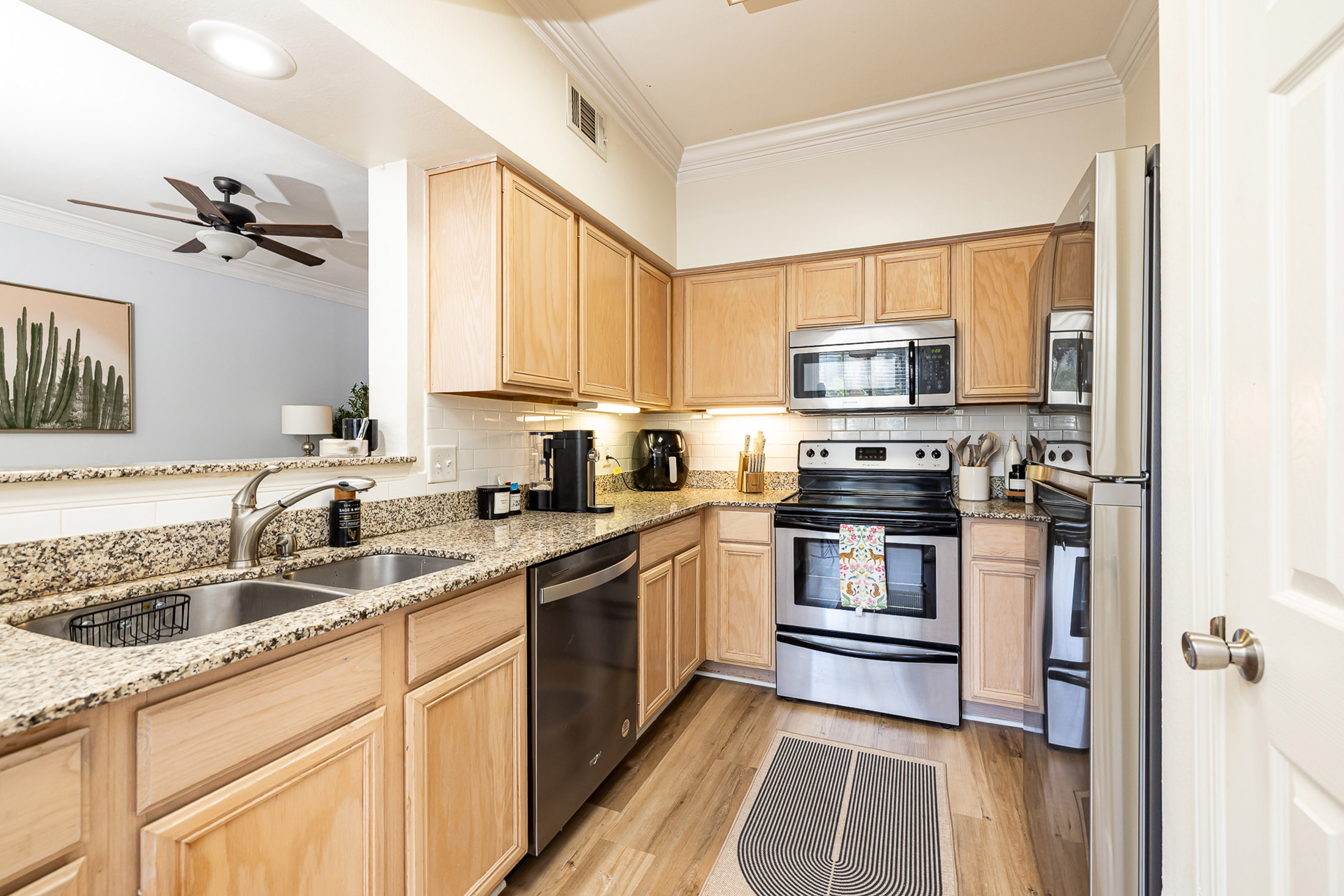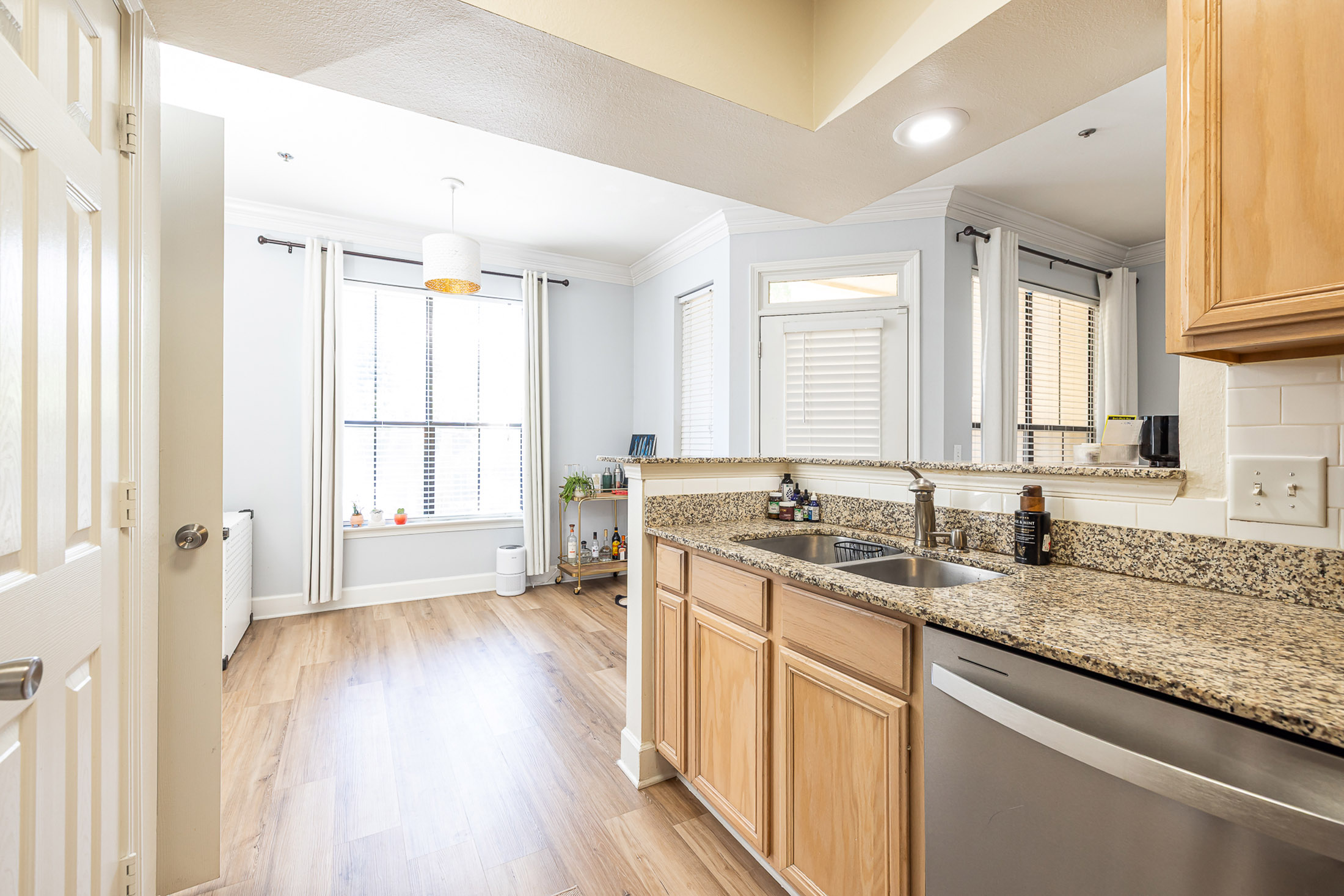Best one bedroom in the city, see for yourself. Great subdivision, gated with everything including great amenities, pool, fitness, etc. One parking spot steps from front door. Unit 712 is special with stainless appliances, granite, high ceilings, fancy flooring, best master closet ever!