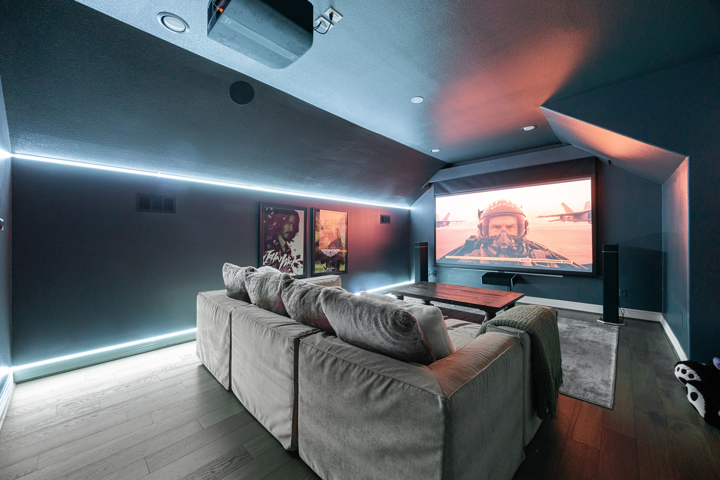 flexible floor plan includes a fifth bedroom currently used as a dedicated movie theater and an upstairs game room