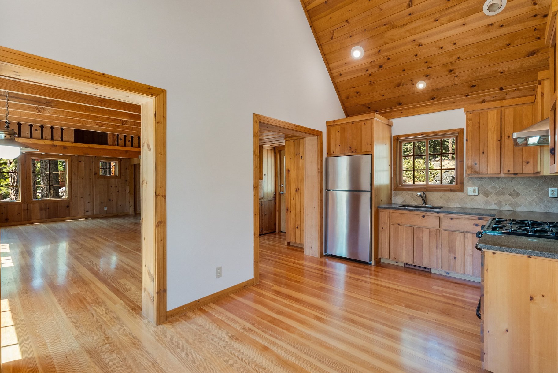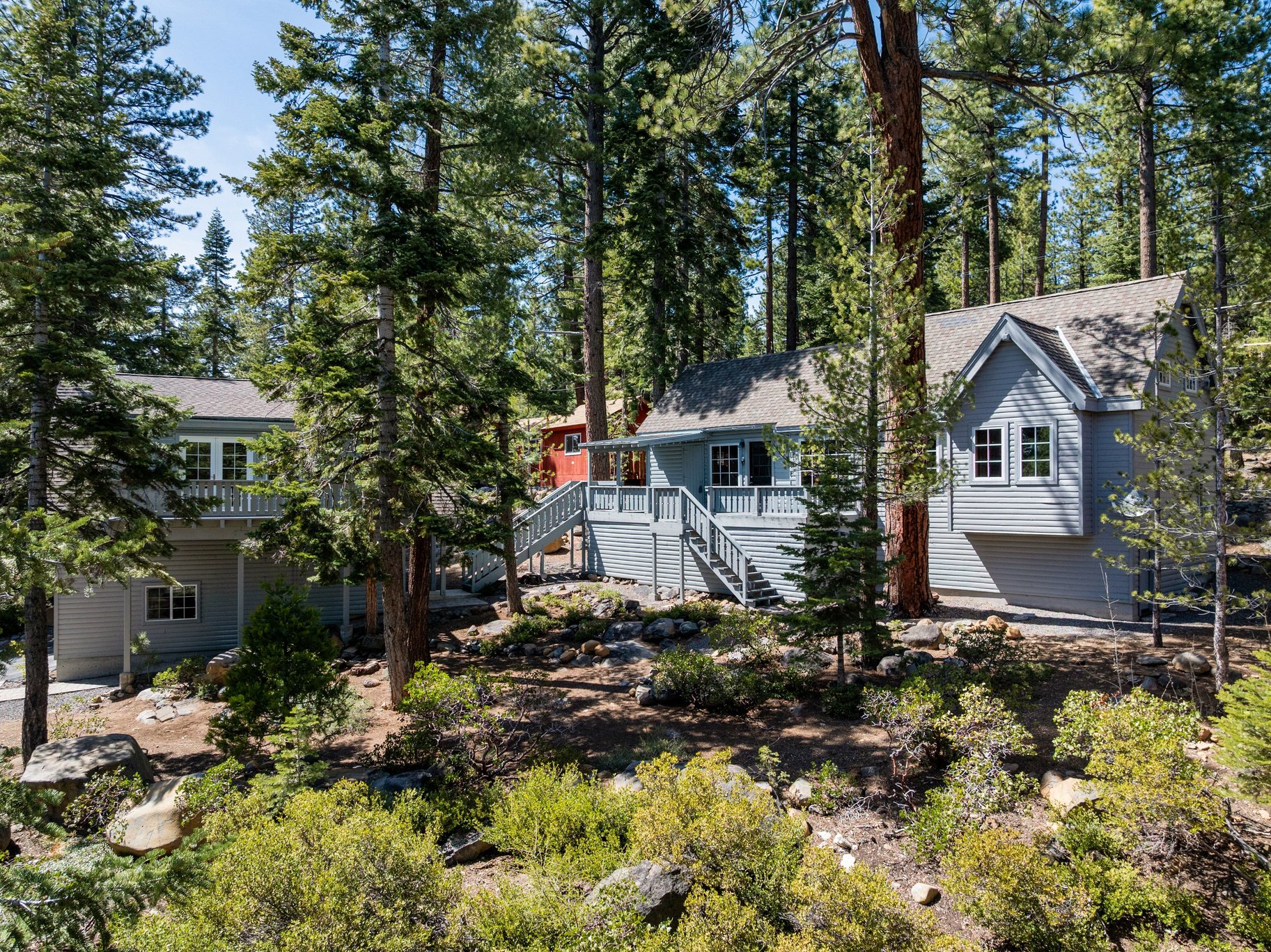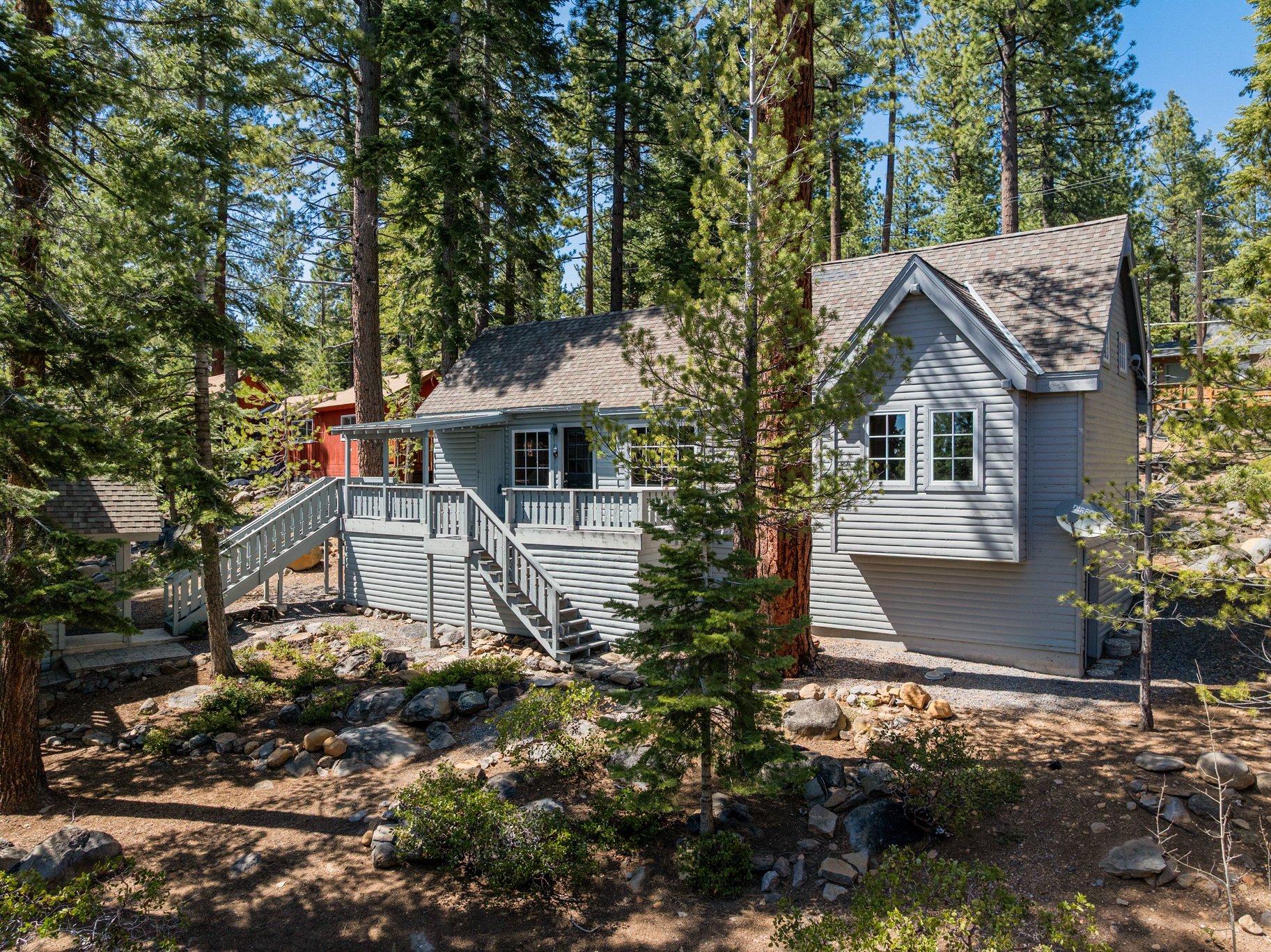 Tucked on a spacious, sun-filled parcel in desirable Tahoe Vista, this charming Tahoe cabin captures the essence of mountain living with a warm, inviting feel. Originally built in 1946, the home blends classic Tahoe character with comfortable living. The main residence features 1 bedroom and 1.5 bathrooms, along with a large private deck—an ideal spot to relax, entertain, and take in the peaceful, natural surroundings. Above the garage, a separate 1-bedroom, 1-bath ADU offers excellent flexibility for guests, extended family, or rental income, with washer and dryer hookups and plumbing in place for a potential kitchenette. A third detached structure adds even more versatility—perfect for a home office, bunk room, or creative retreat. The setting is a true highlight—south-facing for great natural light and located just minutes from North Tahoe Regional Park, miles of trails, the bike path, Tahoe beaches, and world-class skiing. Whether you’re drawn to its classic Tahoe charm or see the potential to make it your own over time, this is a special opportunity on the North Shore.