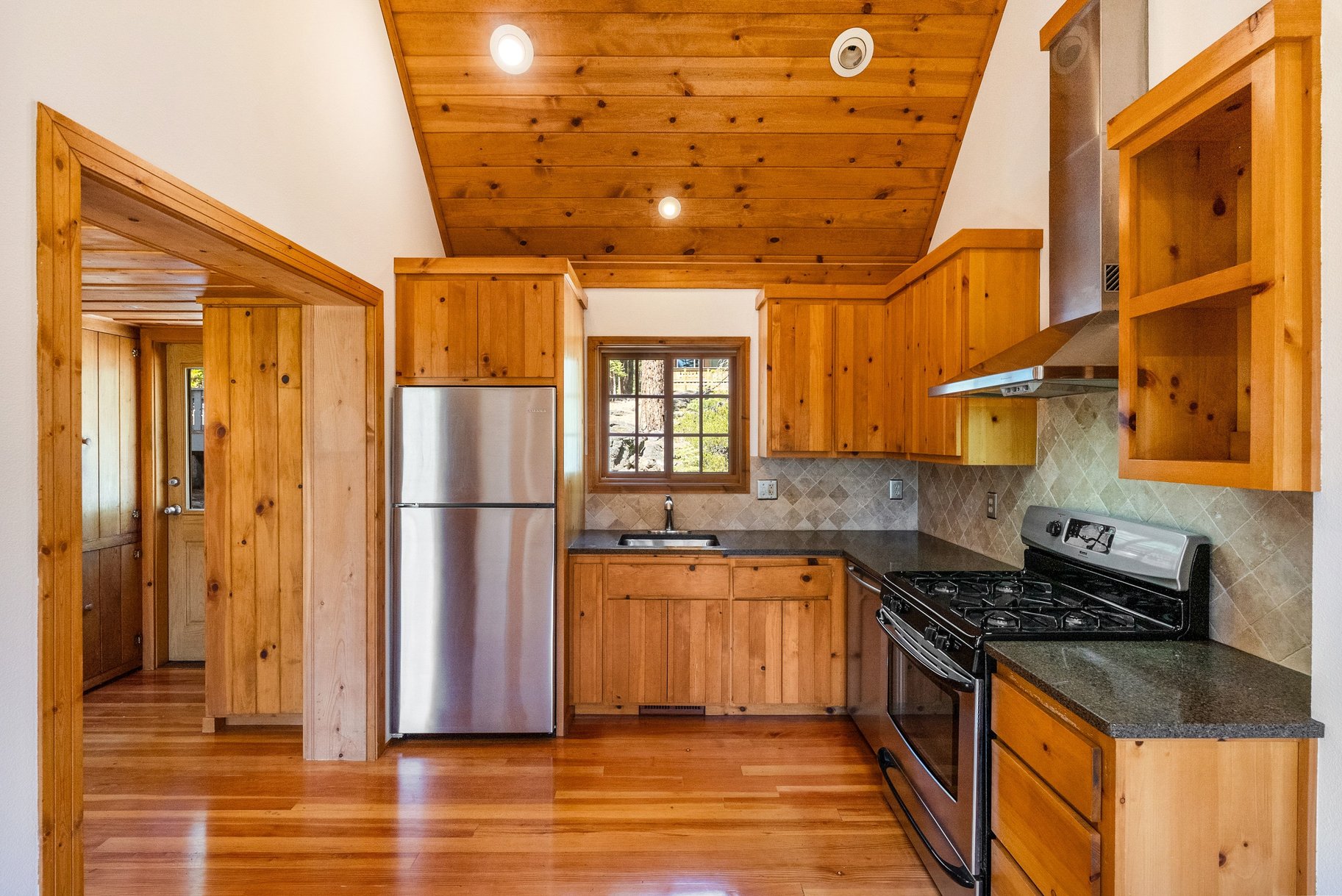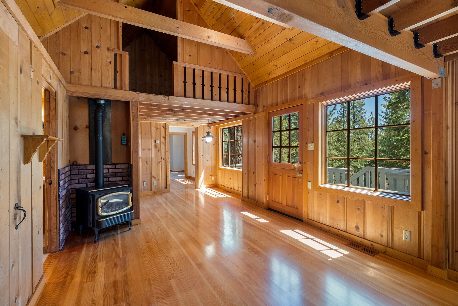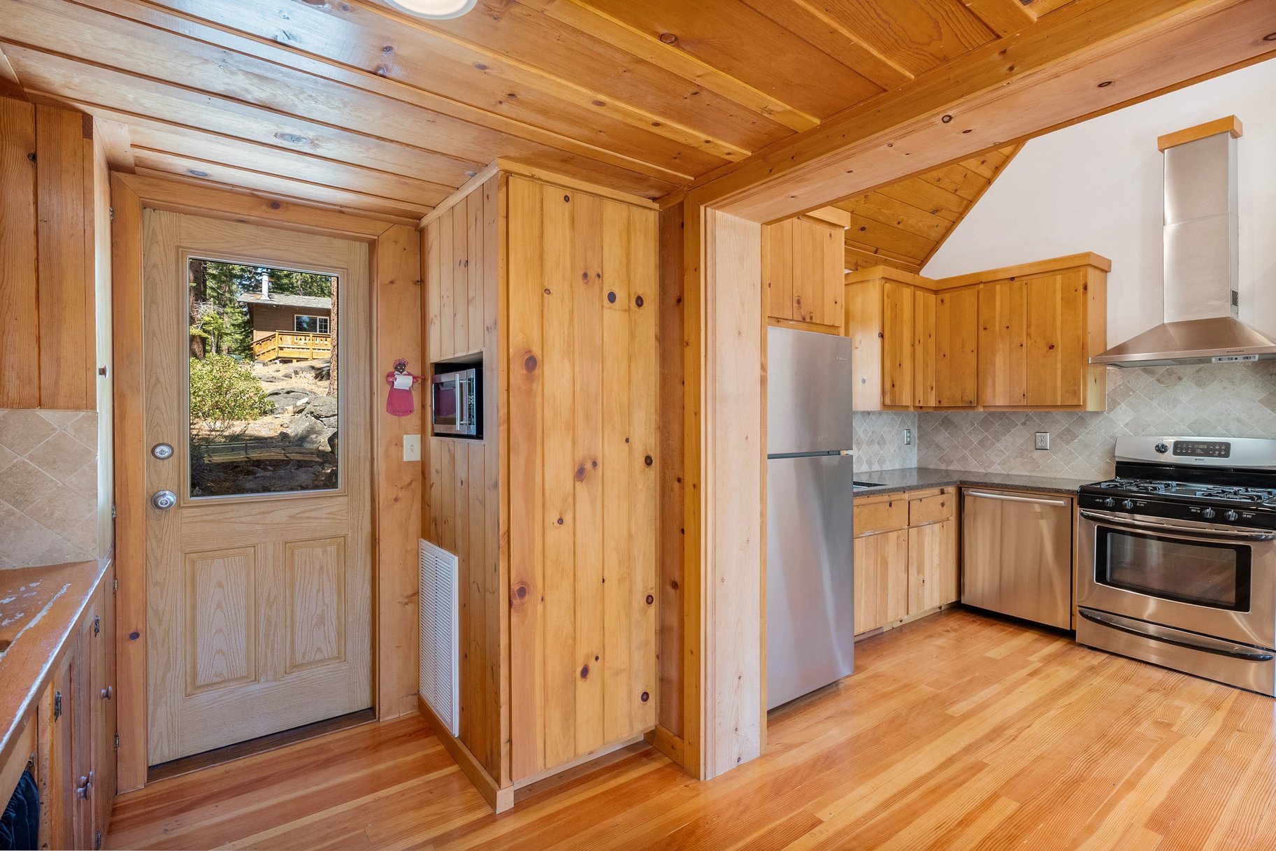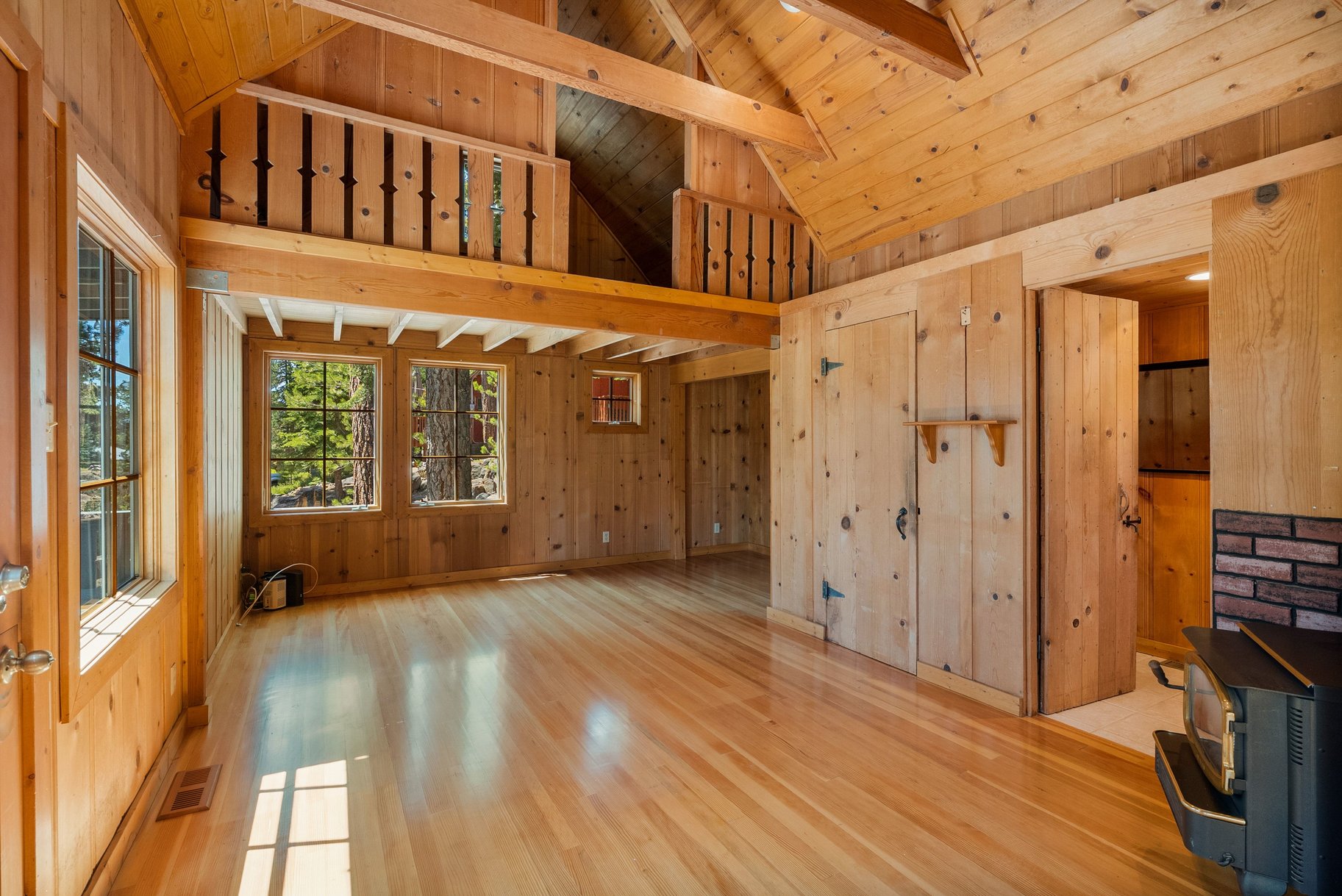 Tucked on a spacious, sun-filled parcel in desirable Tahoe Vista, this charming Tahoe cabin captures the essence of mountain living with a warm, inviting feel. Originally built in 1946, the home blends classic Tahoe character with comfortable living. The main residence features 1 bedroom and 1.5 bathrooms, along with a large private deck—an ideal spot to relax, entertain, and take in the peaceful, natural surroundings. Above the garage, a separate 1-bedroom, 1-bath ADU offers excellent flexibility for guests, extended family, or rental income, with washer and dryer hookups and plumbing in place for a potential kitchenette. A third detached structure adds even more versatility—perfect for a home office, bunk room, or creative retreat. The setting is a true highlight—south-facing for great natural light and located just minutes from North Tahoe Regional Park, miles of trails, the bike path, Tahoe beaches, and world-class skiing. Whether you’re drawn to its classic Tahoe charm or see the potential to make it your own over time, this is a special opportunity on the North Shore.