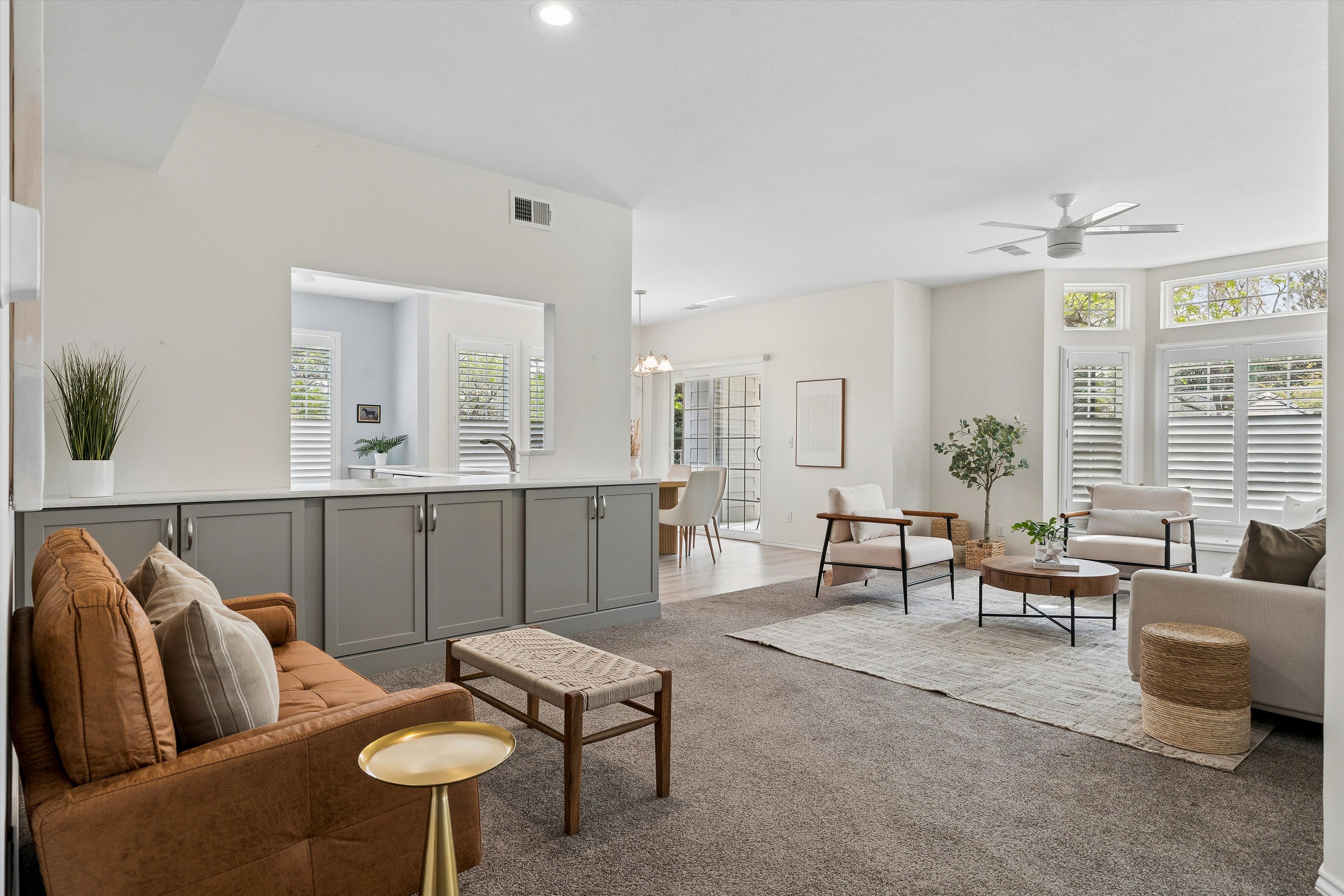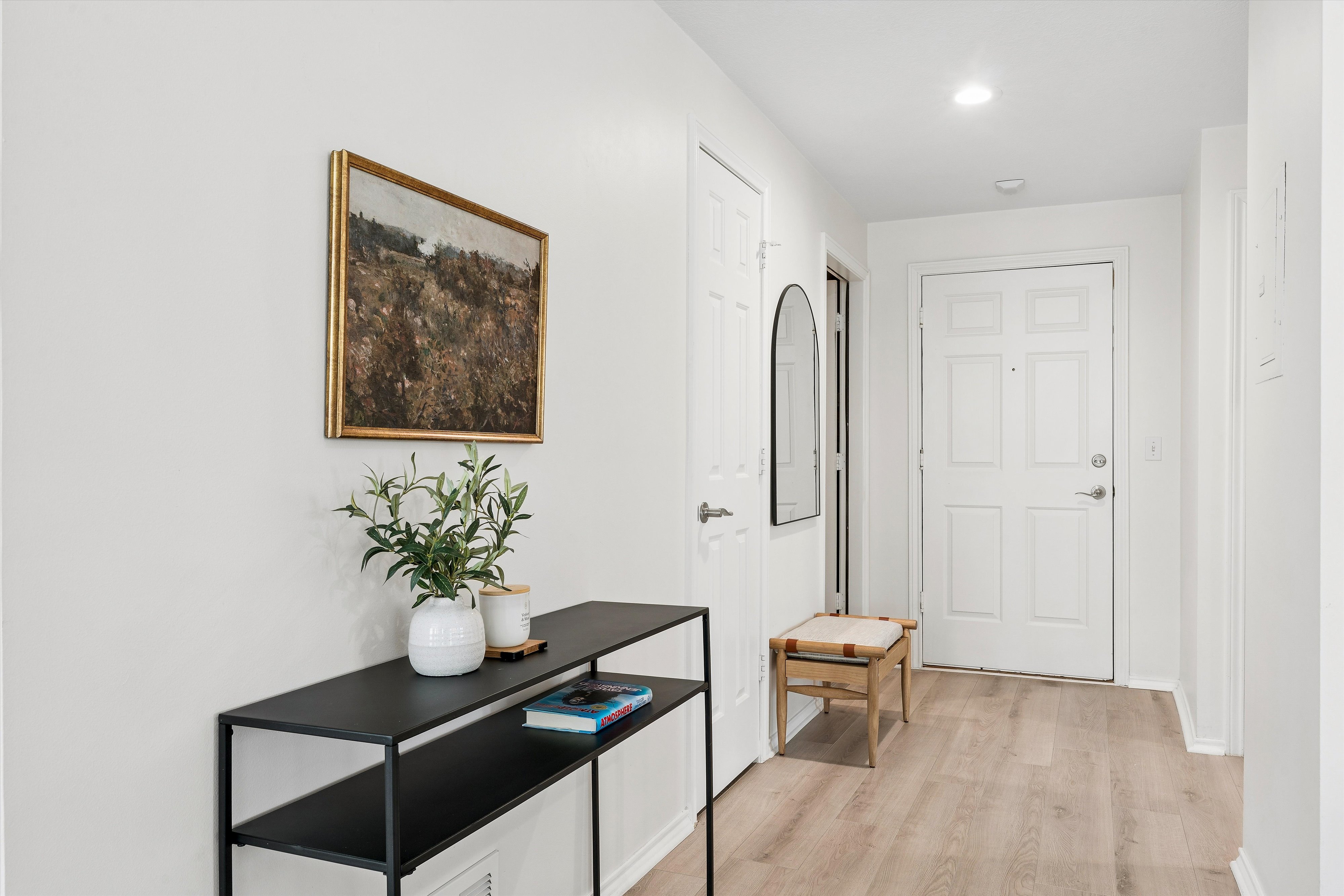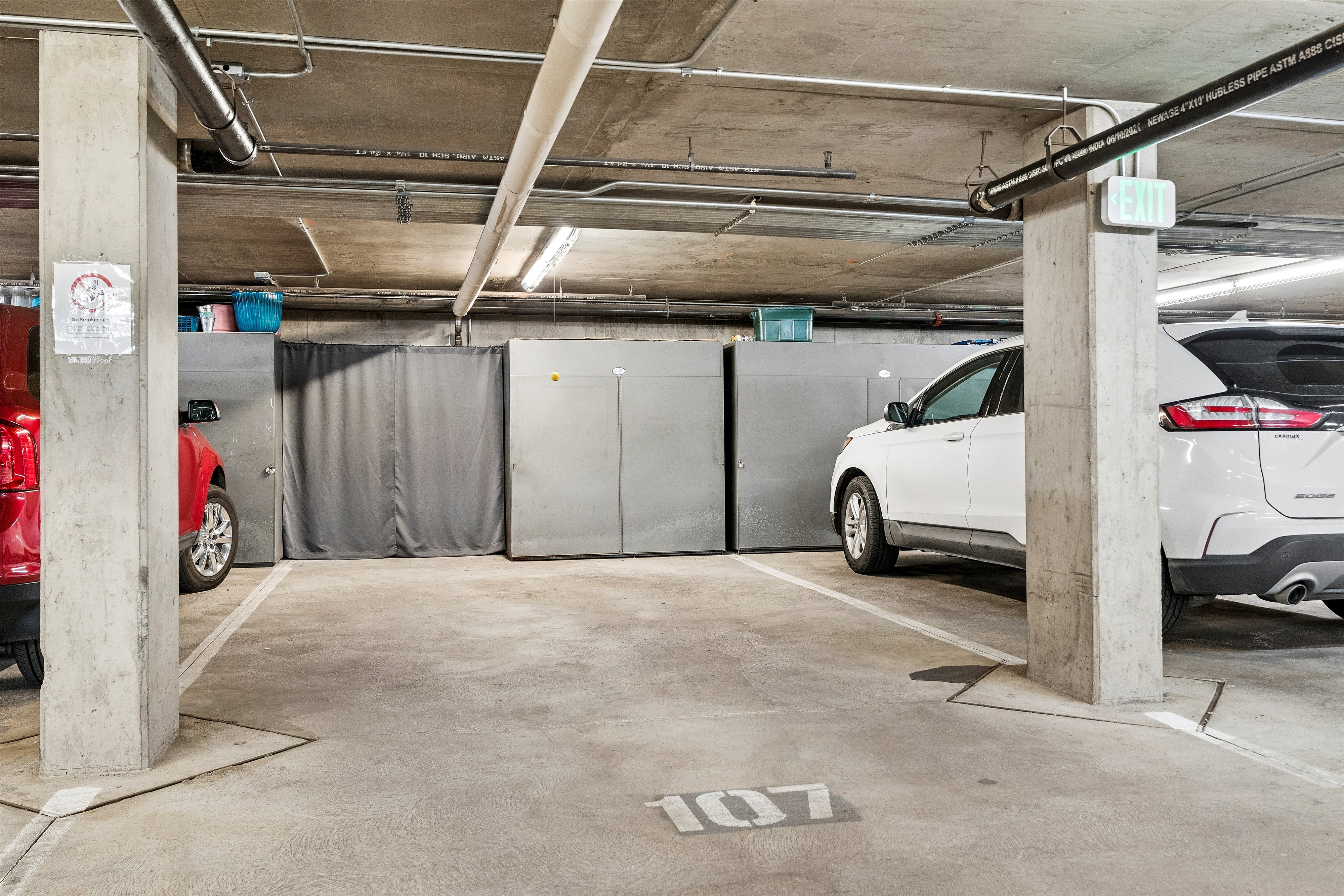 First floor, corner unit condo in 55+ Centennial at Riverwalk in Littleton. Main level access and a functional, low-maintenance layout. Open living area with abundant natural light. Newer carpet and LVP flooring throughout. Kitchen features quartz countertops, soft close cabinets, and ample storage. Primary suite includes an updated bathroom with folding shower seat. Secondary bedroom suitable for office or flex use. Oversized northeast-facing patio provides additional outdoor space with tree coverage. Includes private underground parking near building entry with storage. Community amenities include clubhouse, fitness center, outdoor pool, hot tub, library, billiards, social spaces, and walking trails. Convenient access to downtown Littleton, light rail, shopping, and golf. Secured building with HOA covering maintenance for true lock-and-leave living.