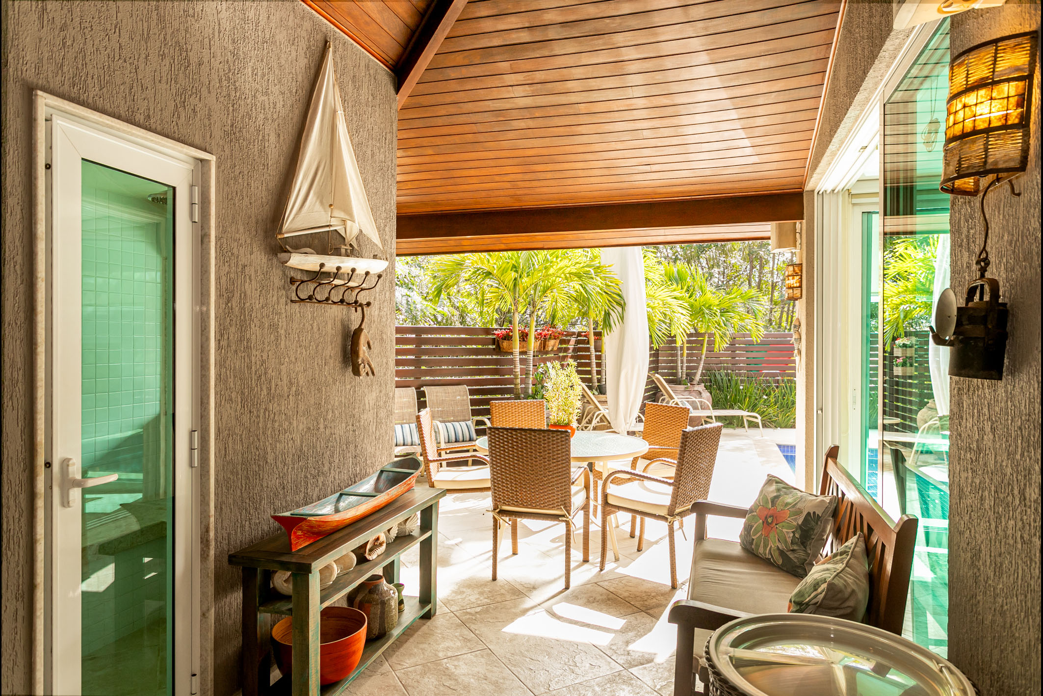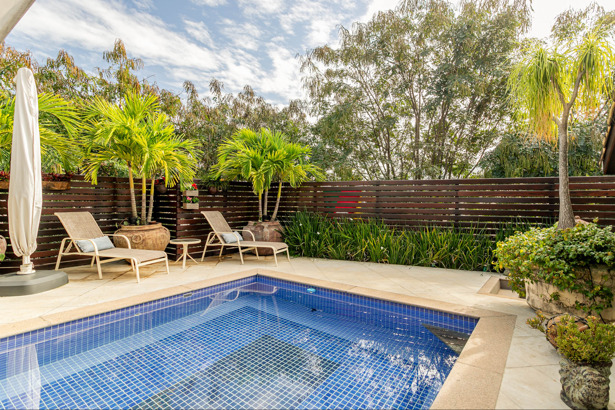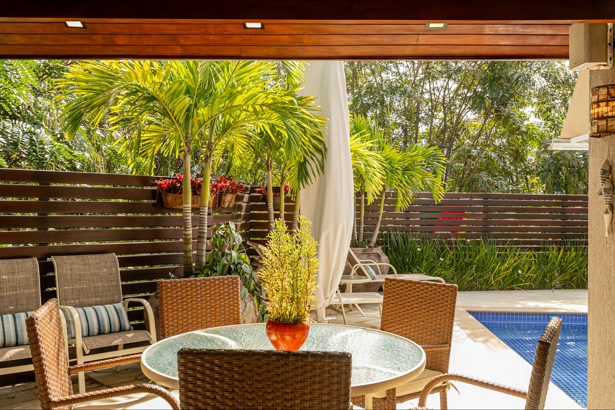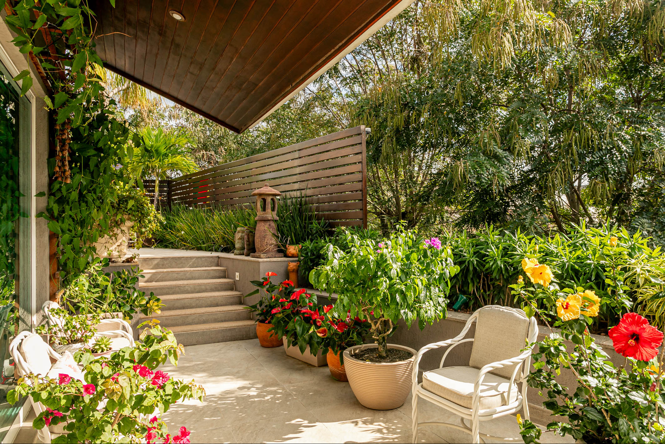 This penthouse is located in Jardim Oceânico, just one block from the beach, and features a well-distributed layout with open views of Pedra da Gávea. The social area includes three spacious living areas, arranged as living room, TV room, and dining room on a slightly elevated level, all connected to a landscaped terrace. Two powder rooms serve this area. The private quarters offer a primary suite with walk-in closet and a second suite, also with closet. On the upper level, there is a guest suite with walk-in closet and a private balcony. The service area includes a kitchen with dining space, laundry area, and complete staff quarters. The outdoor area features a barbecue space, sauna, and a swimming pool, along with solar energy and an automatic irrigation system for the gardens. The property includes five parking spaces and a storage room located in the service hall.