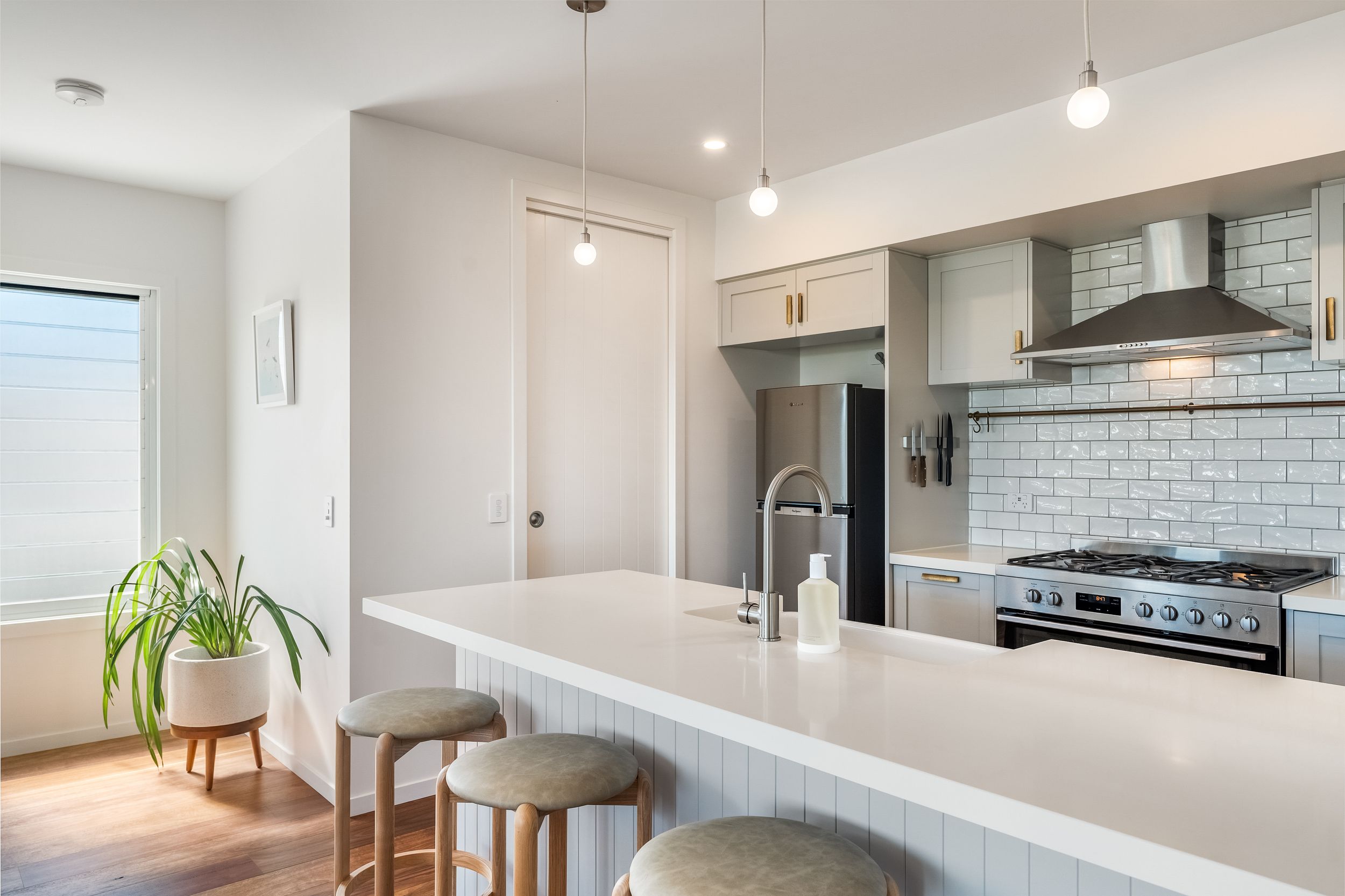 - Open plan living and dining on the upper level flowing to the kitchen and generous balcony