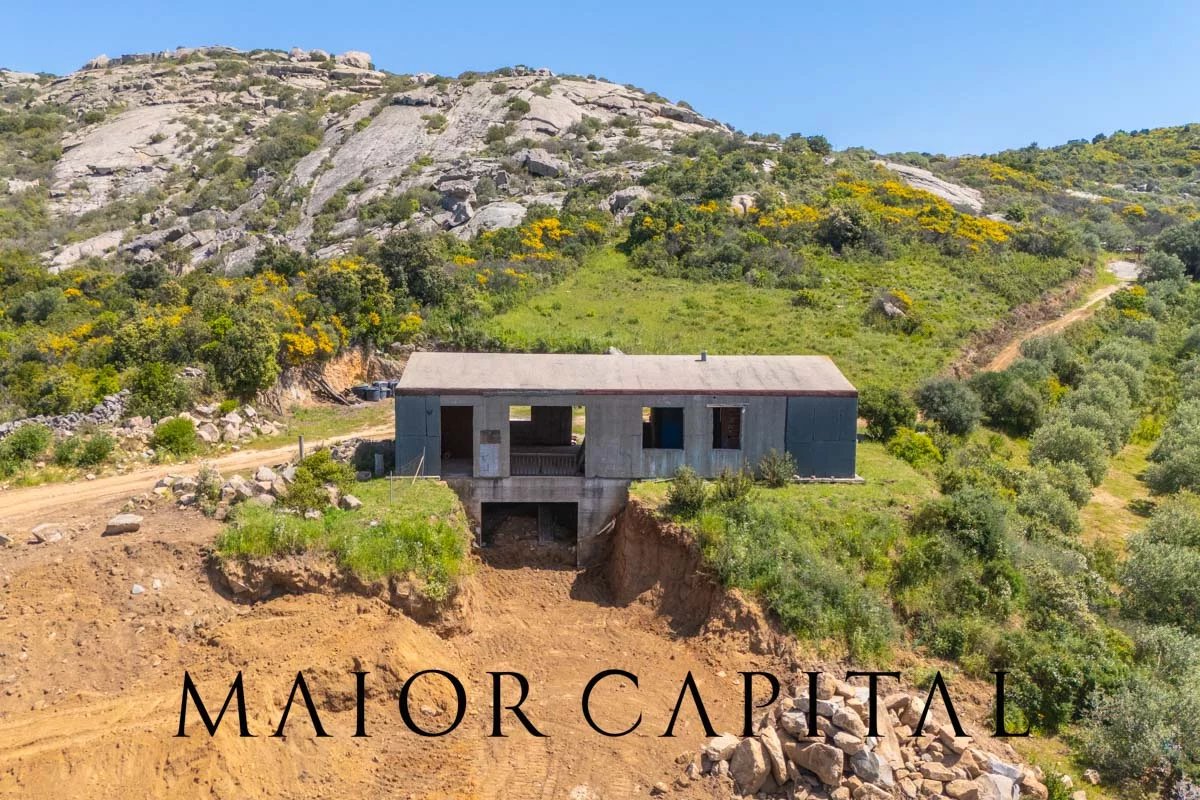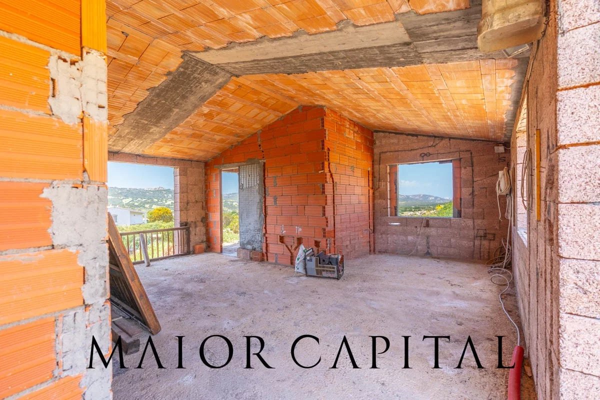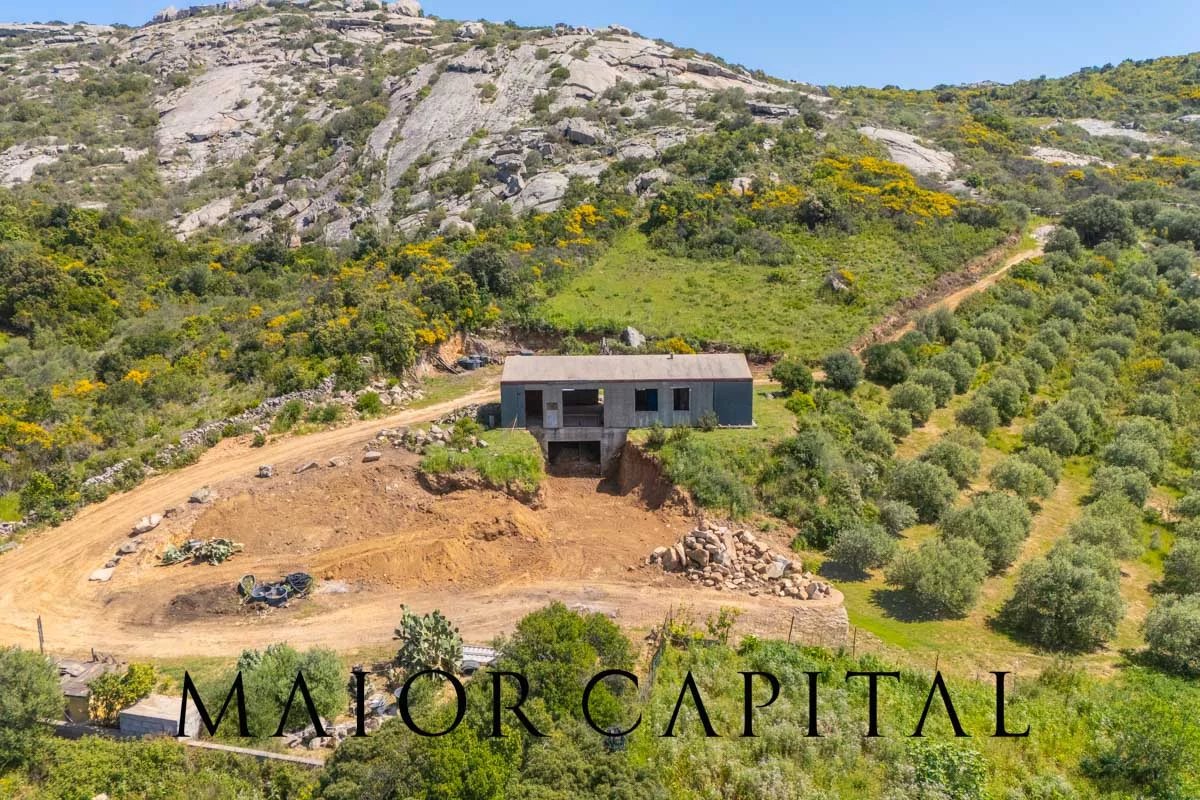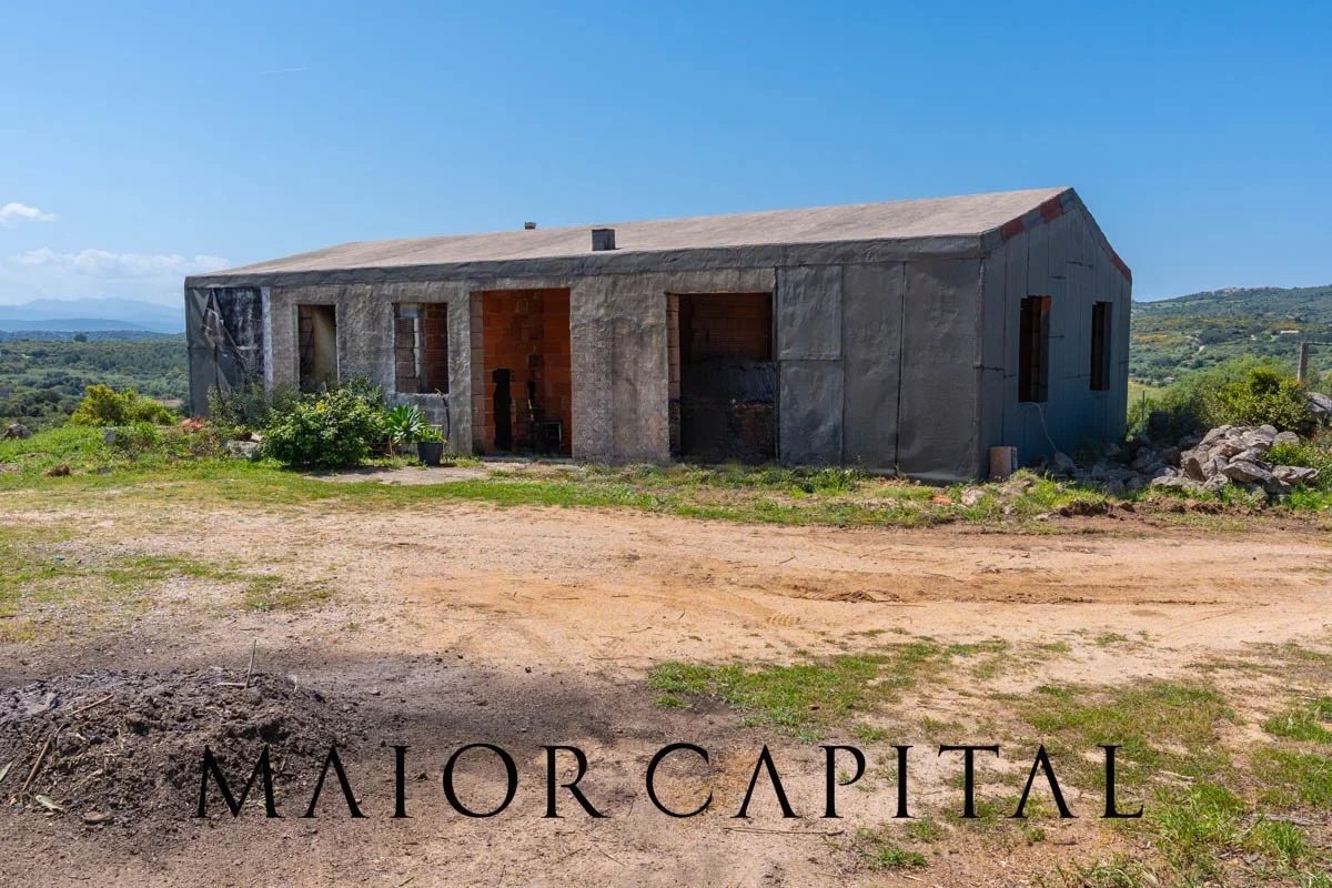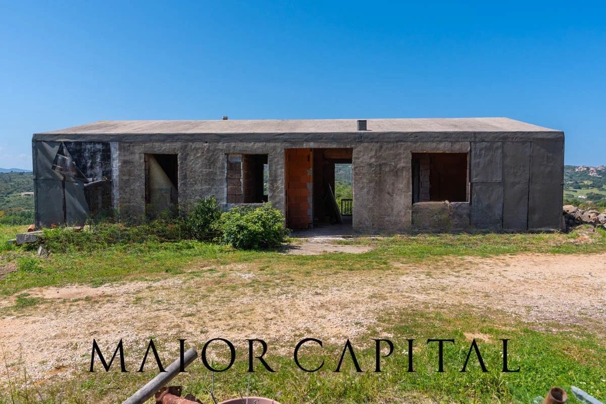 Arzachena | Location Cuccu | Country house with 1 hectare of land and a glimpse of the seaIn Arzachena, in the Cuccu area, amidst the landscapes of the Costa Smeralda, we are offering for sale a country house in its unfinished state, set amidst greenery and surrounded by approximately 1 hectare of private land, with a pleasant glimpse of the sea and an open view of the surrounding countryside.The property is set in a natural setting of great charm, where the typical Gallura landscape, characterised by Mediterranean vegetation, offers a pleasant sense of tranquillity and privacy. It is an attractive option for those wishing to live in an authentic environment, far from the hustle and bustle, yet well connected to the main destinations in the area.The house, currently in its unfinished state, features comfortable and well-organised interior spaces. The plans include a living room, a separate kitchen, three bedrooms (one with an en-suite bathroom), a second bathroom, and a practical storage room. The property also includes a cellar with separate access, a practical space that can be used for storage or arranged according to individual needs. A particularly appealing aspect is the opportunity to complete the property to your own taste, choosing finishes, materials and details to suit your living requirements.Outside, the grounds, covering approximately 1 hectare, are one of the property’s main assets. The presence of around 120 olive trees further enhances the setting, providing character, privacy and an atmosphere deeply rooted in the local area. In addition to its scenic appeal, this feature also offers a practical advantage, thanks to the opportunity to produce olive oil for personal use, making the property even more appealing to those seeking a direct connection with the land and the rhythms of nature.The secluded yet strategic location allows for easy access to Arzachena and the renowned resorts of the Costa Smeralda™, whilst the port and airport of Olbia are approximately 55 minutes’ drive away. A solution that combines privacy, nature and convenient transport links in one of the most sought-after areas of northern Sardinia.Composition:•