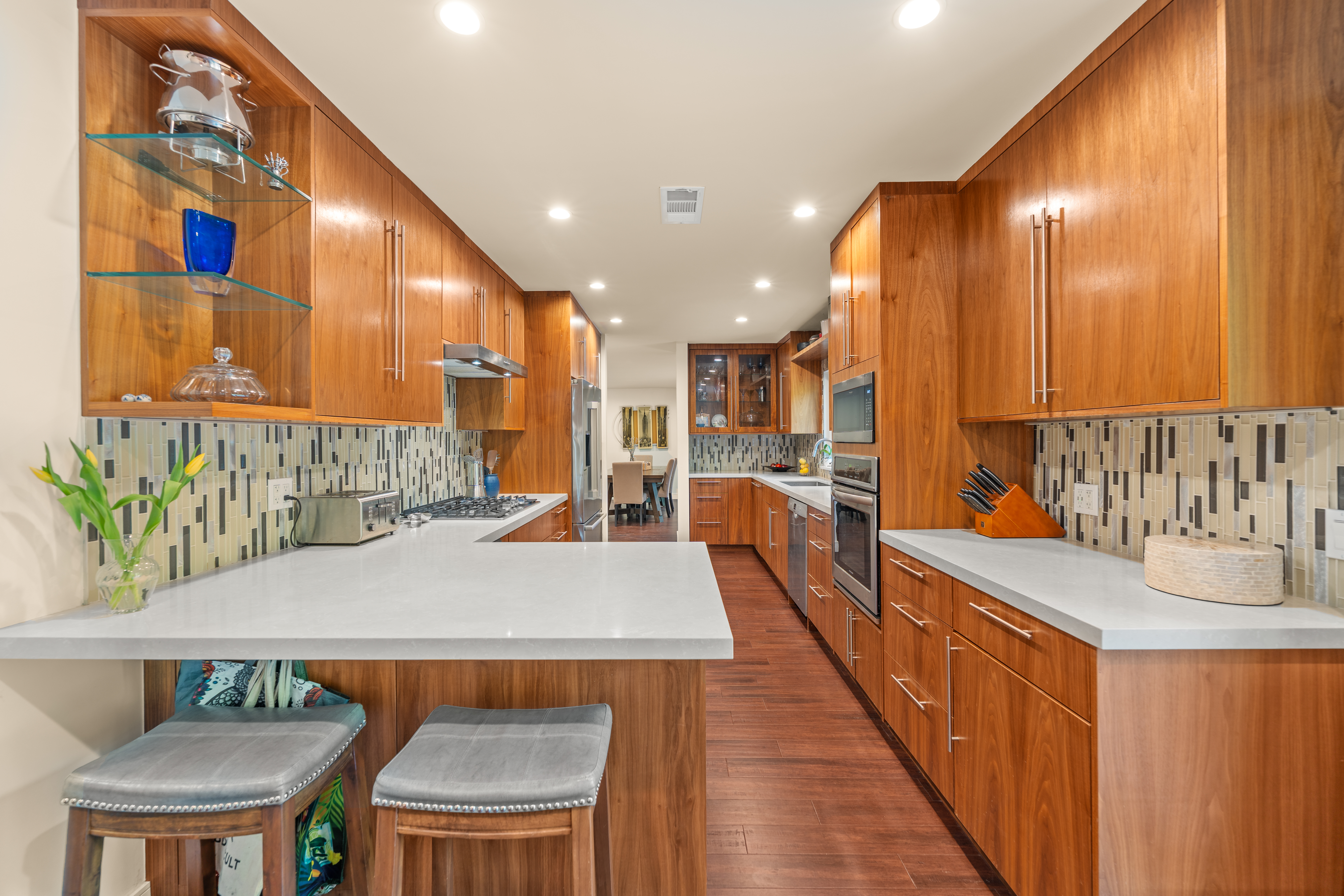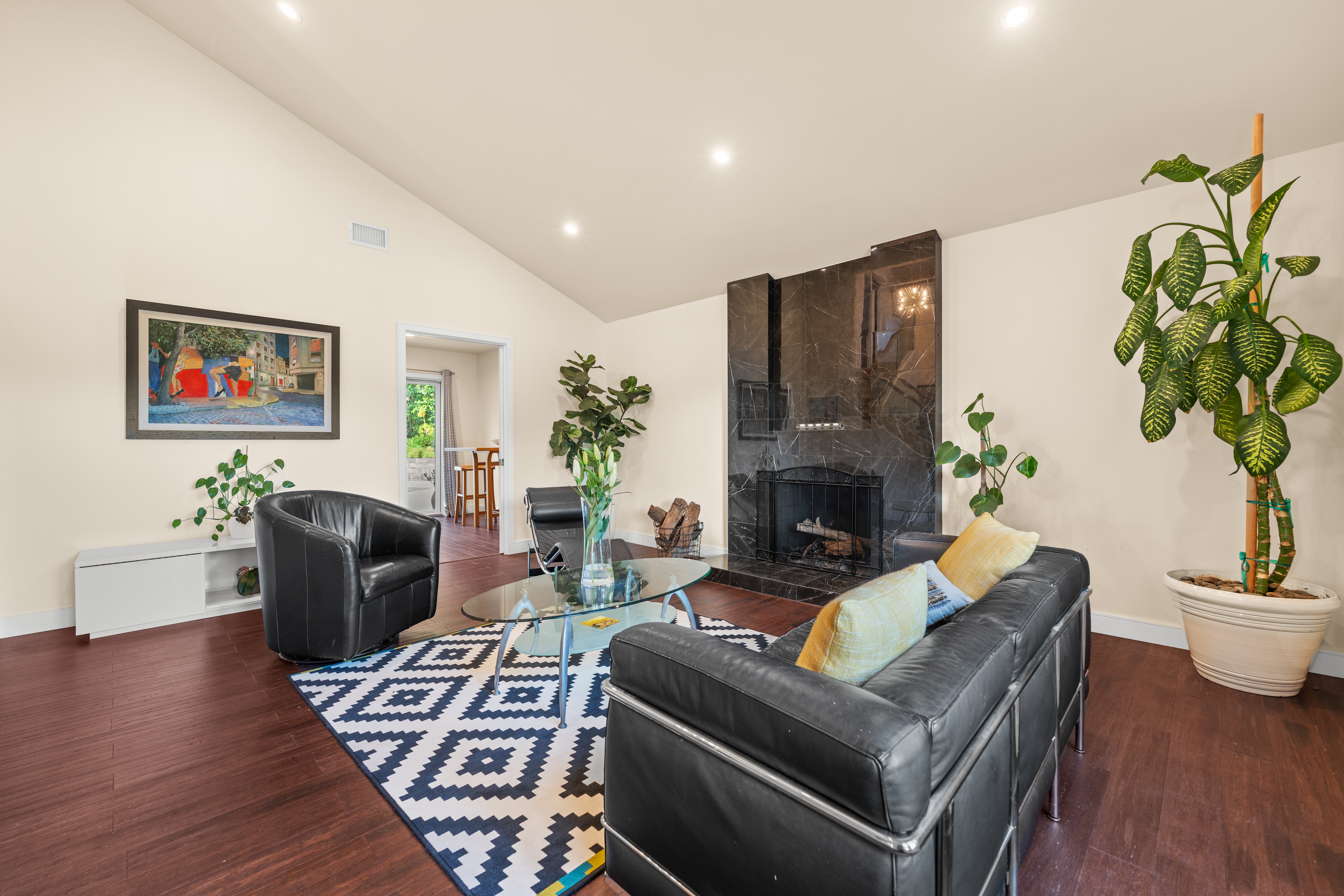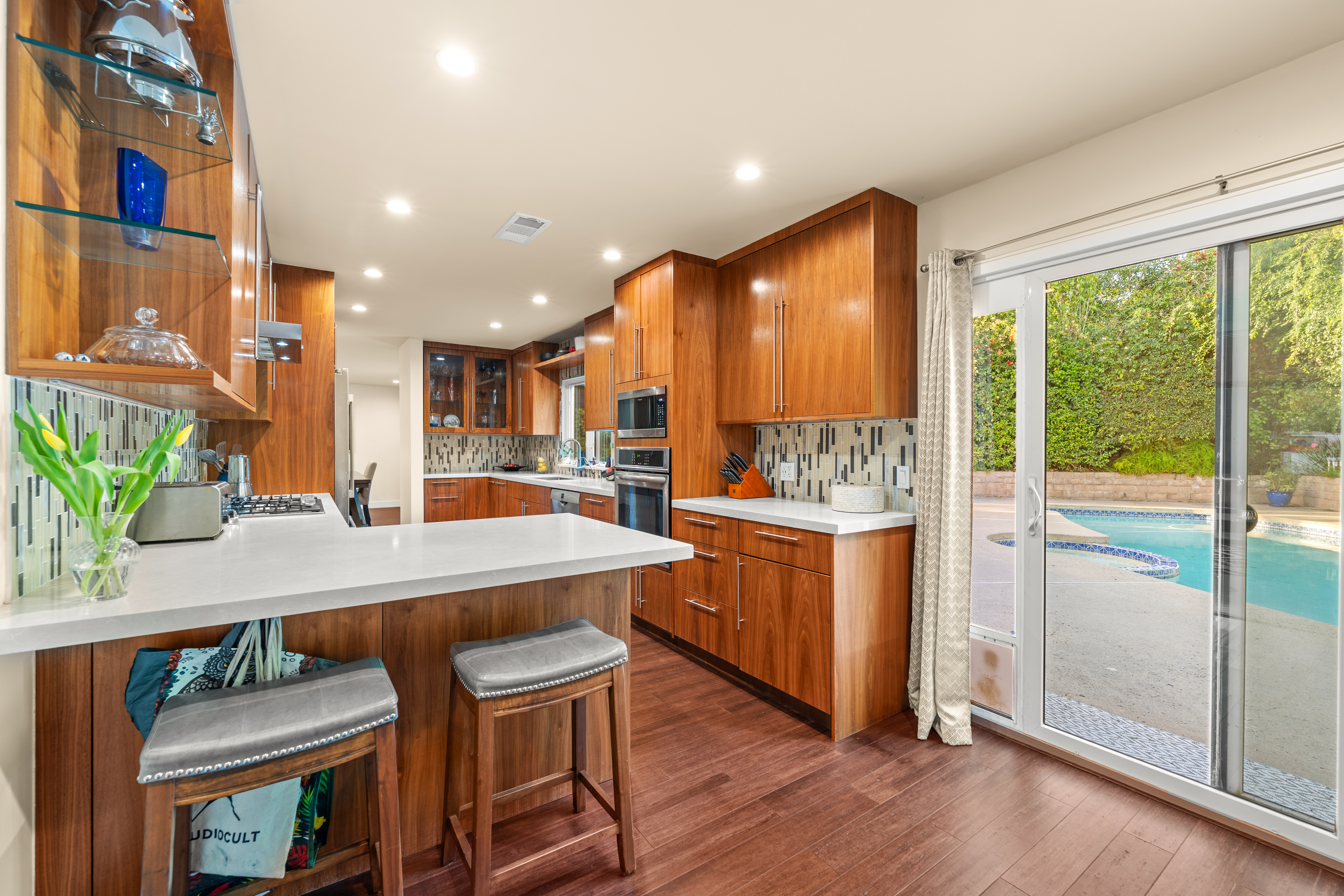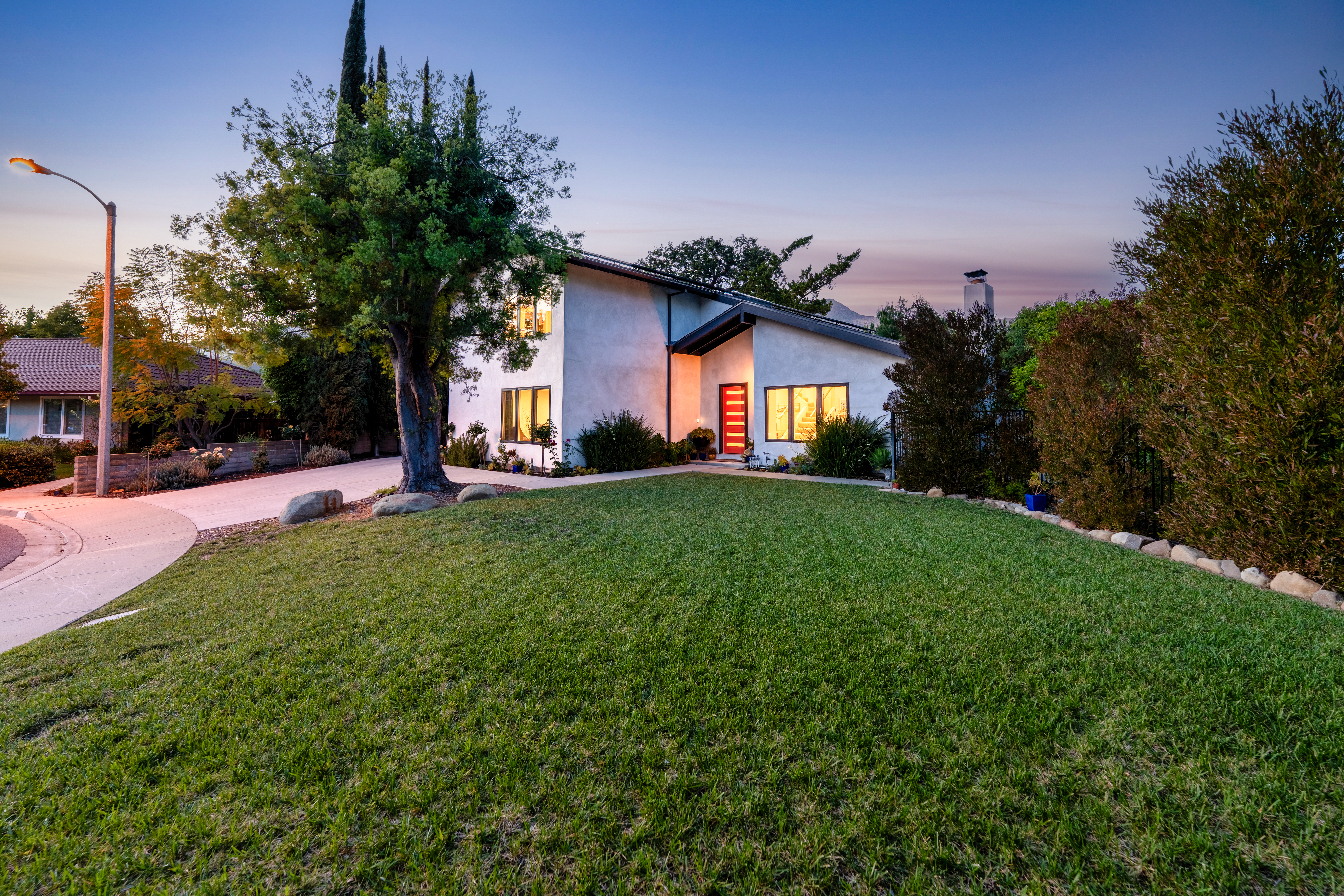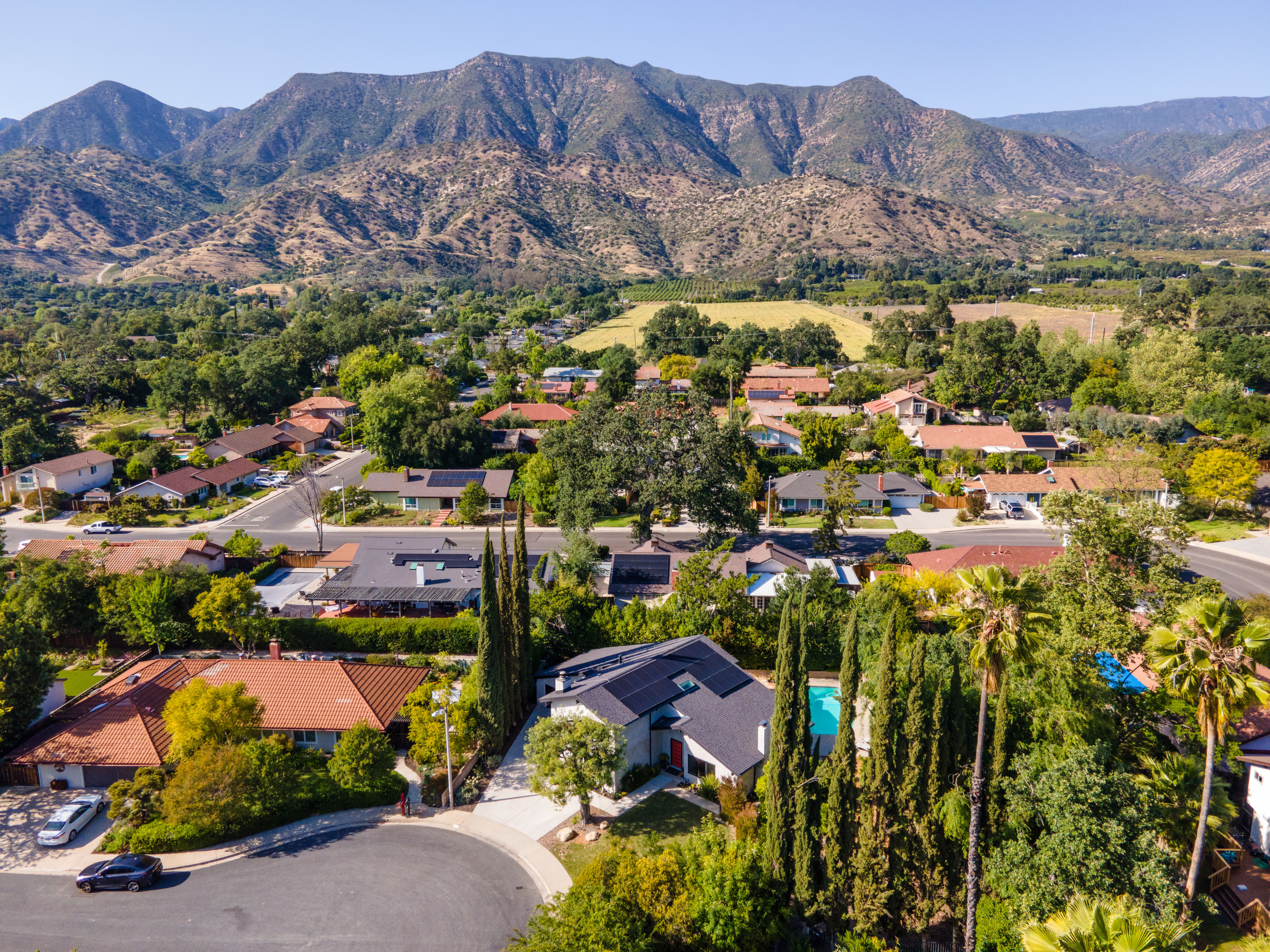 Everything Ojai. Tucked at the end of a cul-de-sac in the highly sought-after Golden West neighborhood, this beautifully updated residence sits on an expansive over 12,000sqft lot framed by lush, mature landscaping--creating a true backyard retreat. Enjoy a resort-style setting with a sparkling pool and spa, multiple patios for lounging and entertaining, a pergola-covered gathering space, and your own mini citrus orchard with views of Chiefs Peak. Inside, an inviting open entry leads to light-filled living spaces, including a living room with vaulted ceilings and a fireplace, as well as a spacious family room with exposed beams and a second fireplace--perfect for relaxed everyday living. A thoughtful 2020 renovation enhanced both style and function, featuring exterior stucco, interior finishes, updated bathrooms, custom railing, doors and windows, upgraded lighting, and beautifully refined fireplaces. The kitchen is a standout, showcasing rich walnut cabinetry, Caesarstone countertops, tile backsplash, wine storage, breakfast bar, and soft-close cabinetry--all overlooking the backyard oasis. Additional highlights include formal and casual dining areas with seamless indoor-outdoor flow, a dedicated laundry room, and a two-car garage. A recently replaced roof and fully owned solar panels add efficiency and long-term value. Located just moments from downtown, this home offers effortless access to everything that defines the Ojai lifestyle.