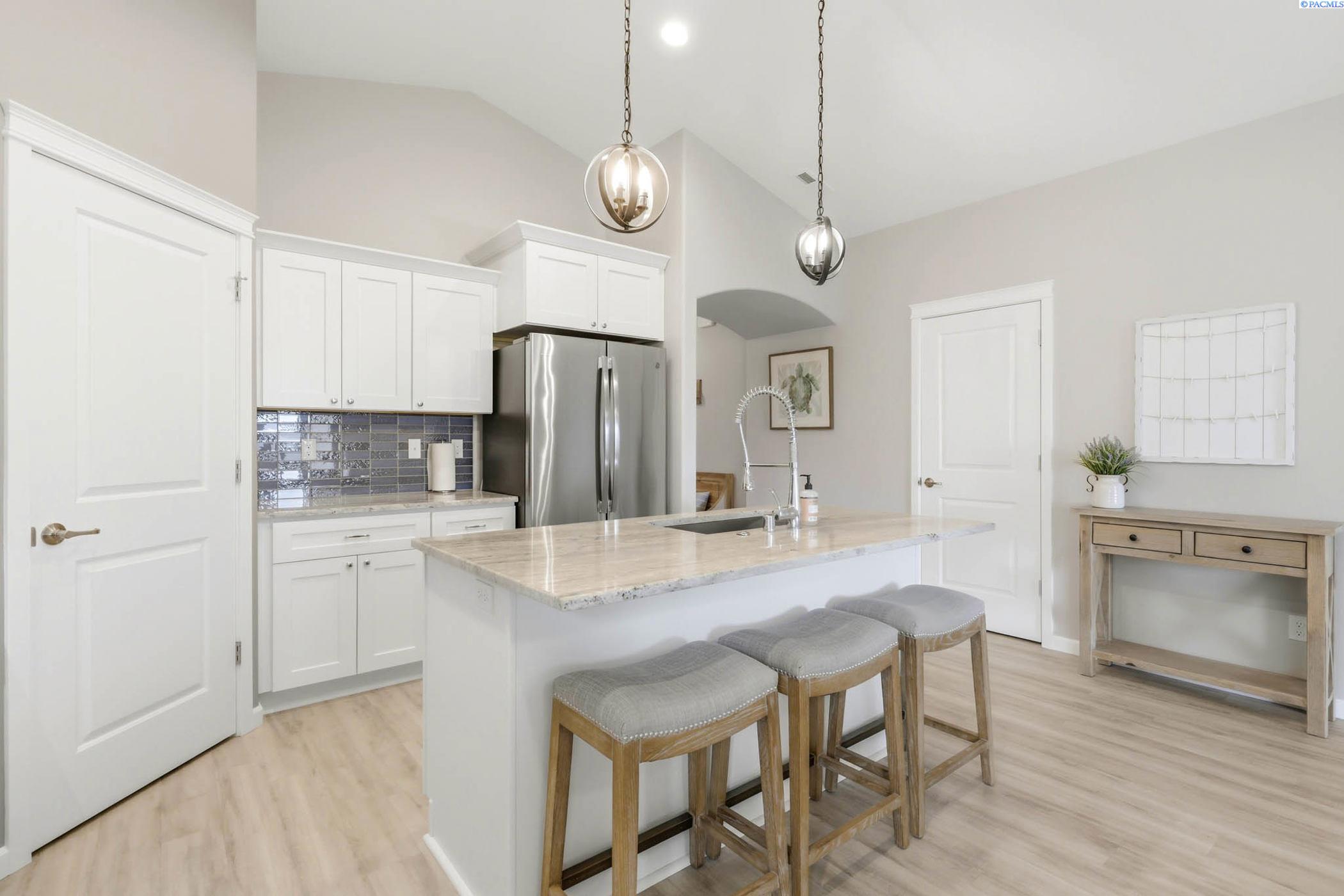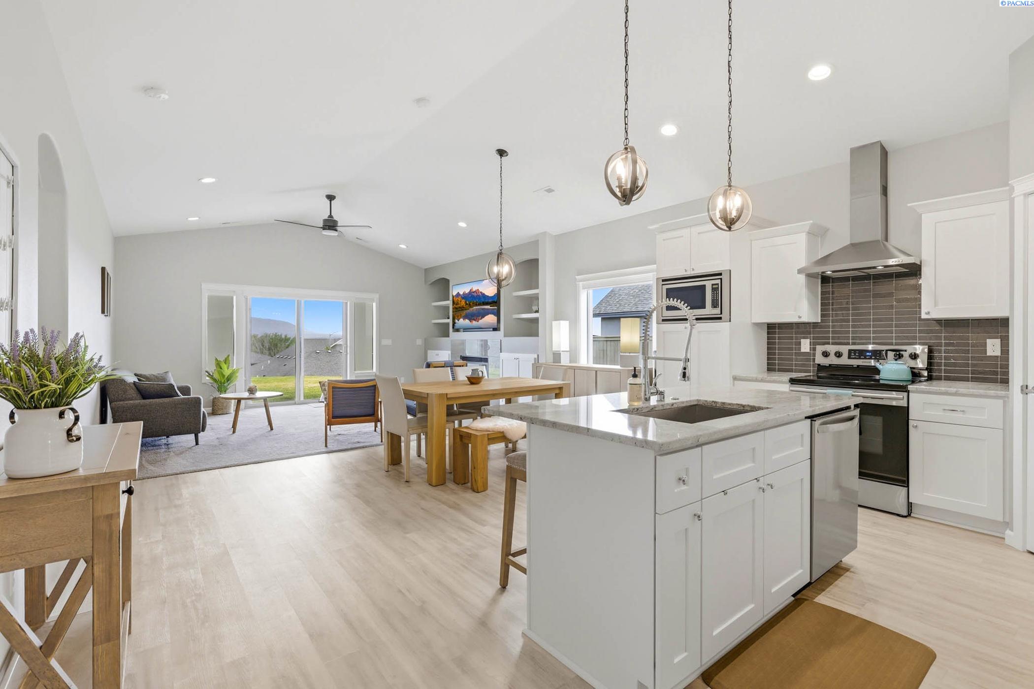 MLS# 292355 Welcome to a home that blends comfort, quality and stunning scenery in the highly desirable Horn Rapids community. Which offers community pool, pickleball and tennis courts, several parks, community events throughout the year! This beautifully maintained 1,543 SF residence offers 3 bedrooms and 2 bathrooms, thoughtfully laid out for both everyday living and easy entertaining. Inside, you'll find a warm and inviting living area anchored by a cozy gas fireplace - perfect for relaxing evenings while enjoying the incredible sunsets over Rattlesnake Mountain. The kitchen and bathrooms feature beautiful quartz countertops, paired with soft-close cabinets and drawers that bring both style and practicality to the space. The oversized 3-car garage provides plenty of room for vehicles, storage or hobbies and includes an electric vehicle charging port for added convenience. A natural gas tankless water heater offers energy efficiency and the comfort of on-demand hot water. Step outside and take in the peaceful setting and sweeping views, all while being just minutes from golf without the concern of stray balls. Conveniently located near the Hanford area, this home makes commuting simple while still offering a quiet place to unwind. A perfect combination of comfort, functionality and Eastern Washington beauty - this is one you won't want to miss. Call your favorite Realtor today to schedule a private showing.