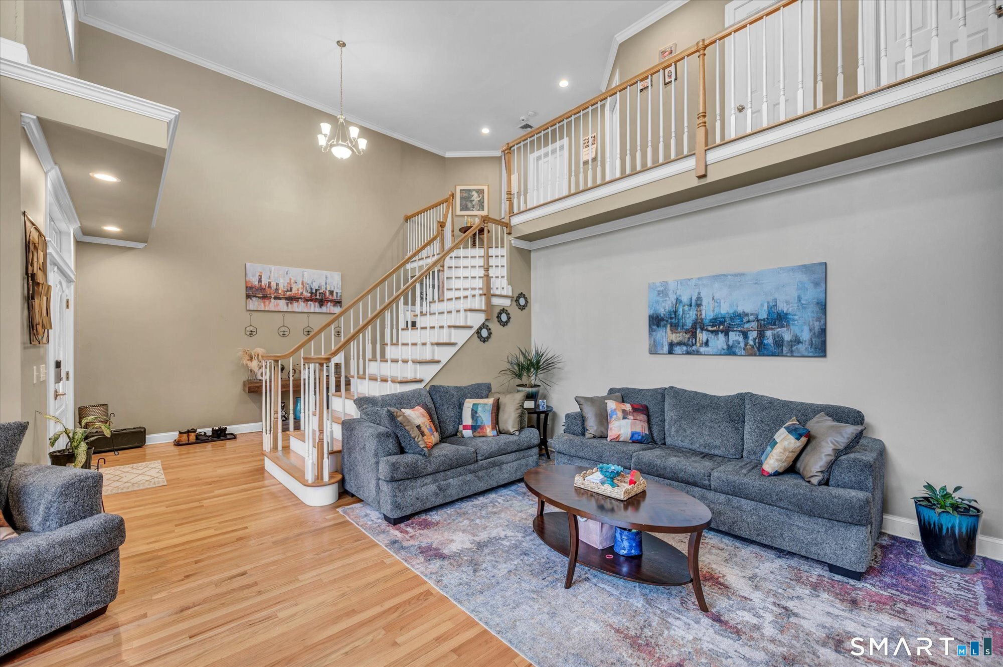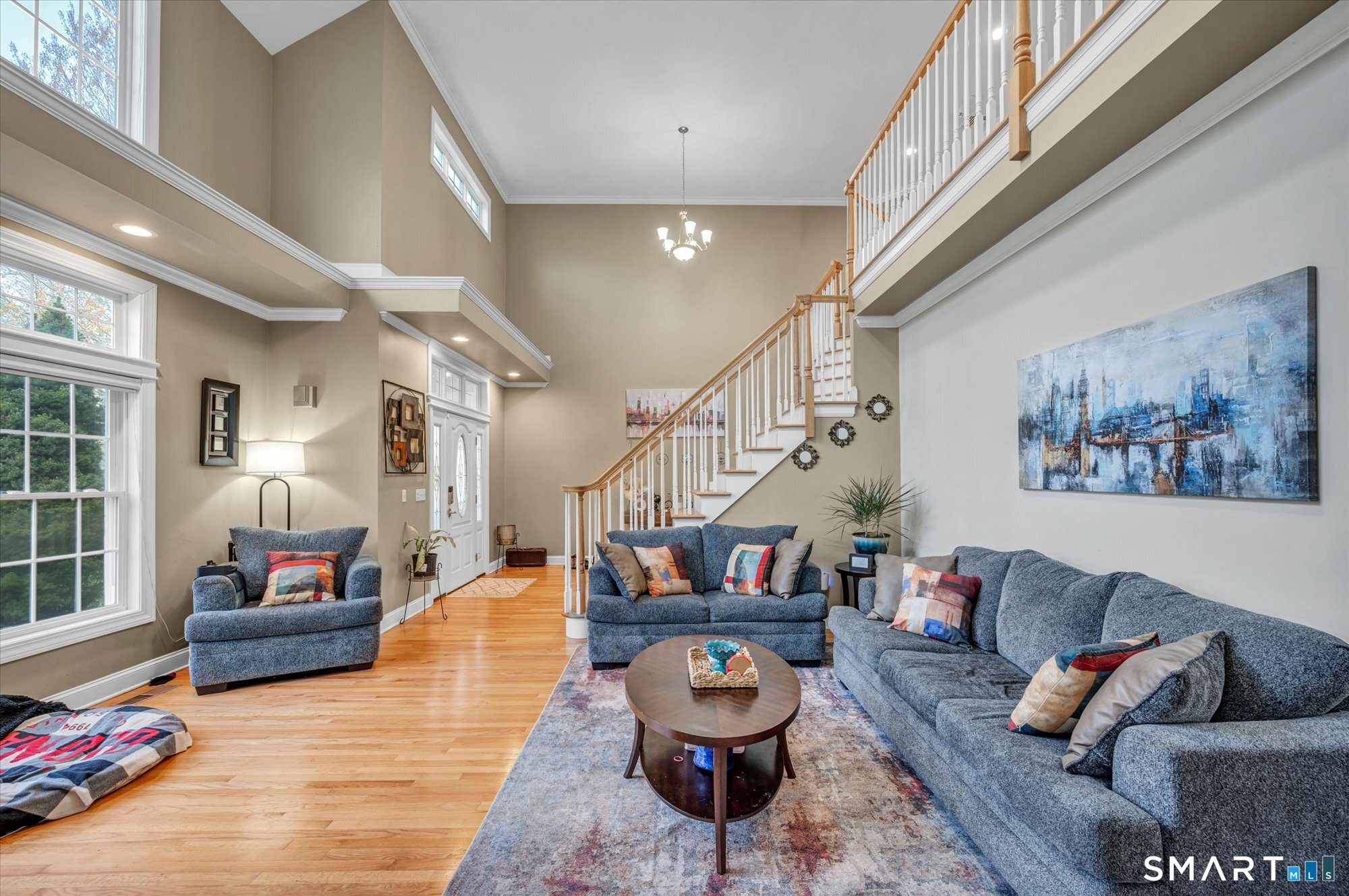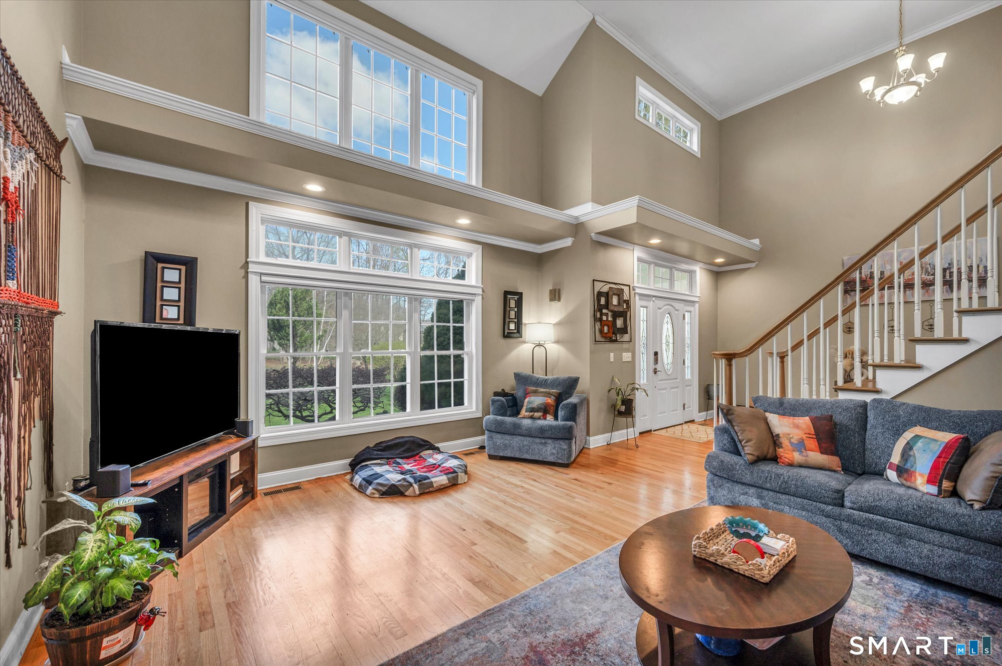 This exceptional Burlington home delivers it all-set on a level 1.26-acre lot in a highly sought-after neighborhood designed for those who love to live and entertain in style. A stunning two-story living room makes an unforgettable first impression, with soaring ceilings and oversized windows that flood the home with natural light. Rich hardwood flooring runs throughout, elevating every space. The open-concept layout flows seamlessly into a spacious kitchen with breakfast nook, formal dining room, and a warm, inviting family room featuring a fireplace and custom built-ins. Perfectly positioned just off the kitchen are a private home office and a main-level laundry room-offering both convenience and functionality where it matters most. The first-floor primary suite is a standout, complete with dual walk-in closets and a spa-inspired bath featuring a whirlpool tub and separate shower. Upstairs, you'll find generously sized bedrooms-most with walk-in closets-and a beautifully designed full bath with both a standalone shower and whirlpool tub. A balcony overlooking the living room adds a dramatic architectural touch. The finished lower level is a game changer-featuring a massive recreation room, workout space, full bathroom, and a bonus room with closet currently used as an additional bedroom. Ideal for guests, extended stays, or future in-law potential, this space adapts to your needs.