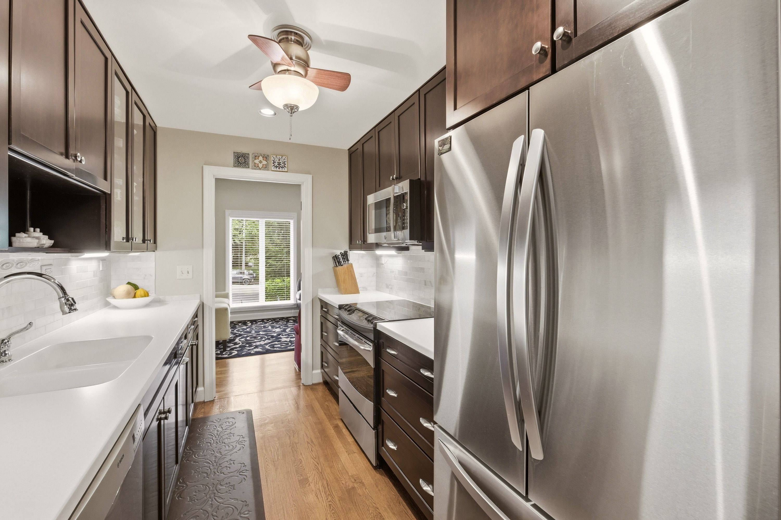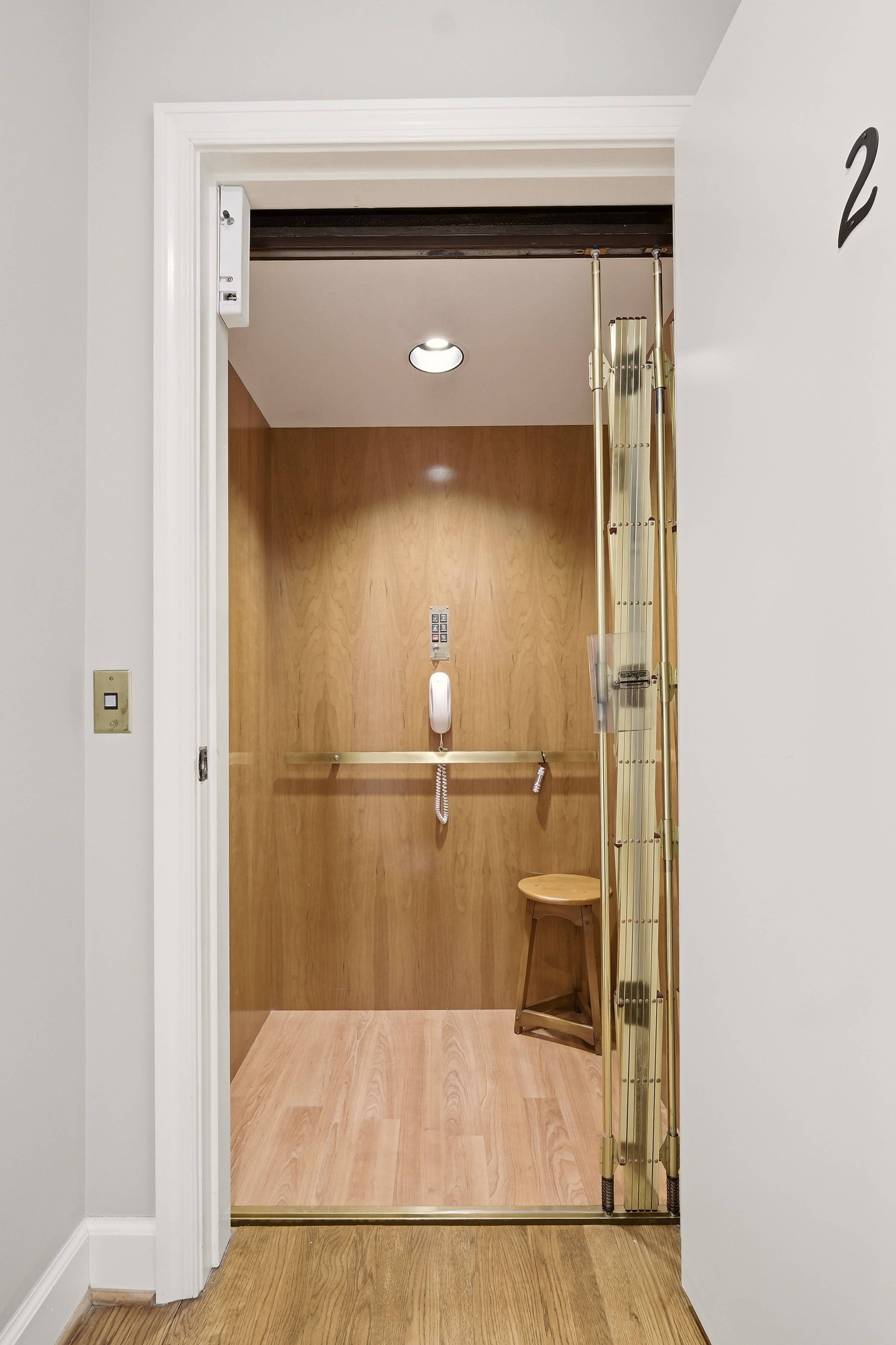 Tucked within the heart of Cherokee Triangle, this thoughtfully designed end-unit townhome offers a rare blend of refined living and everyday ease. Rebuilt from the studs in 2009, the residence lives beautifully across three levels, all fully accessible by elevator - ideal for both convenience and long-term flexibility. Natural light pours in from three sides, enhanced by tall stairwell windows that allow sunlight to move gracefully throughout the day. Custom, locally forged iron railings create a striking architectural thread from the entry level to the top-floor bedrooms, adding a layer of craftsmanship that feels both timeless and distinctive. The second level serves as the heart of the home, where polished hardwood floors and a gas log fireplace create a warm, inviting atmosphere. A well-appointed kitchen flows seamlessly into the living space, while sliding glass doors open to a private, gated patio framed by mature landscaping - perfect for quiet mornings or relaxed evenings. Upstairs, the primary suite offers a peaceful retreat with a walk-in closet and a spacious bath. A second bedroom with its own full bath, along with conveniently located laundry, completes the top floor. The entry level provides exceptional flexibility, featuring a generous bonus room ideal for storage, hobbies, or a secondary living space, along with a half bath and direct access to the attached one-car garage. Guest parking is conveniently located just out front. Residents enjoy access to a shared in-ground pool and additional patio space, offering a private oasis just steps away. All of this, just minutes from Cherokee Park and the boutiques and restaurants of Bardstown Road, with easy access to downtown Louisville - making this an exceptional opportunity for those seeking a low-maintenance, lock-and-leave lifestyle in one of the city's most cherished neighborhoods.