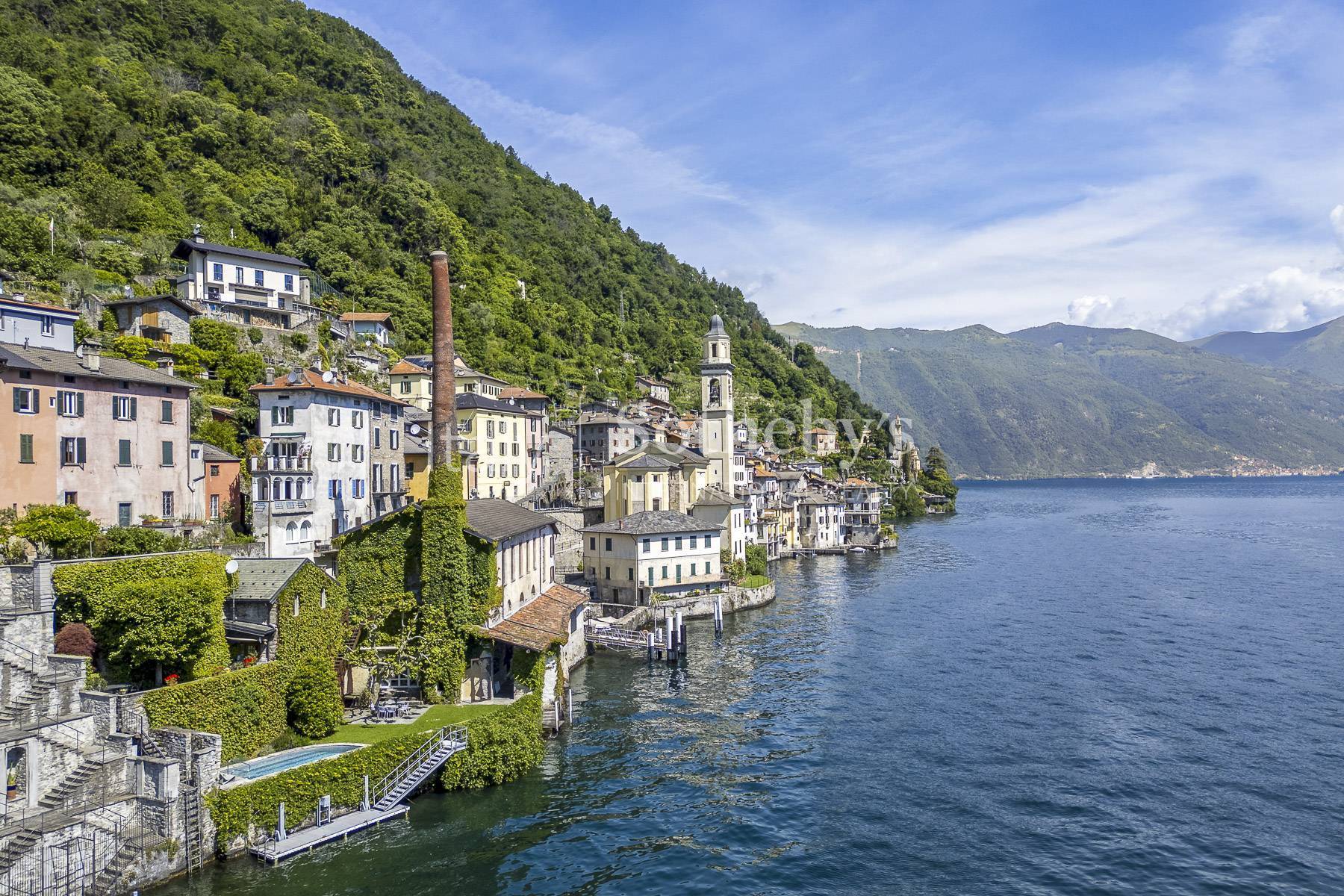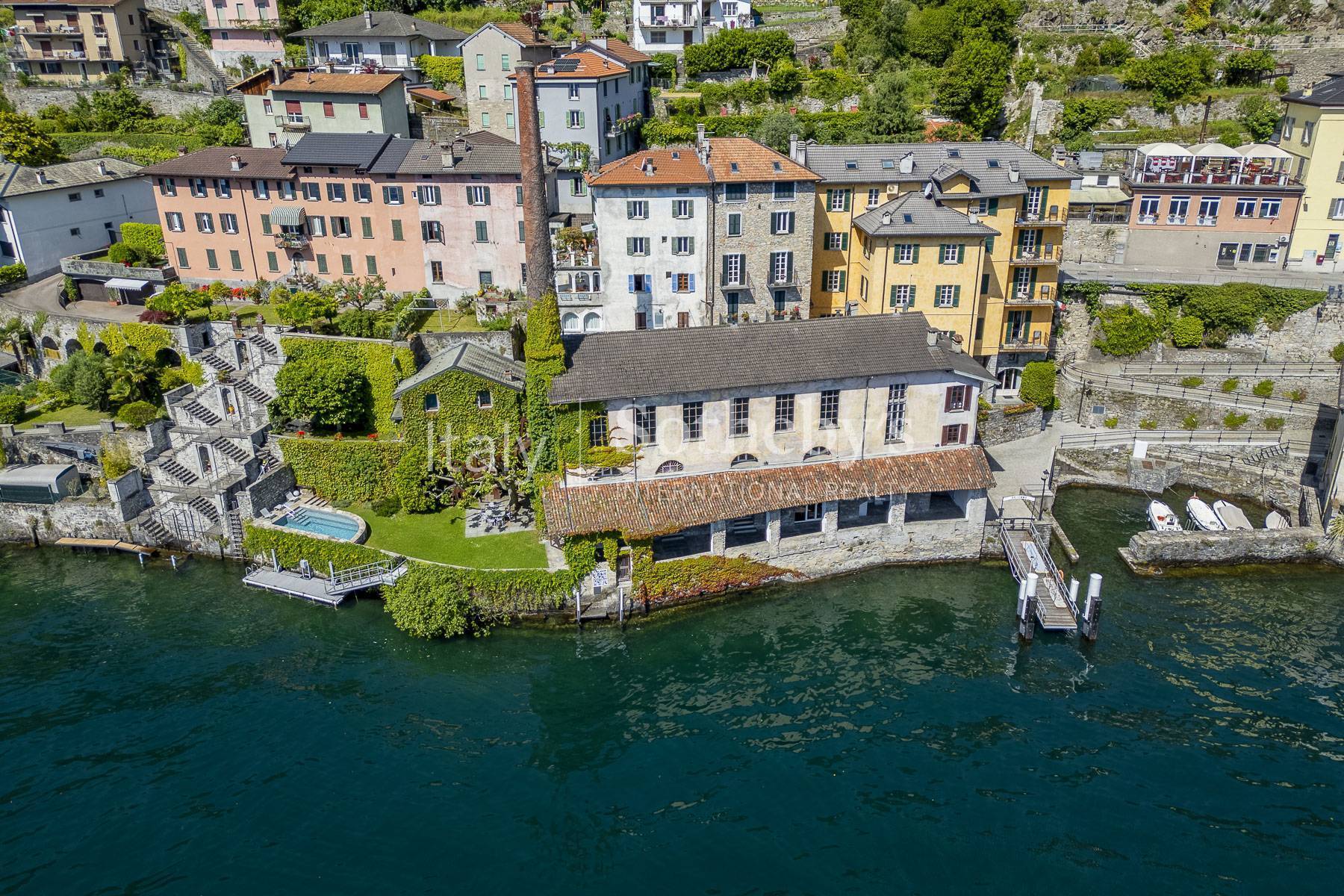 In the picturesque village of Brienno, directly overlooking the waters of Lake Como, stands an extraordinary property: a historic 19th-century silk mill, expertly restored and transformed into an elegant luxury residence for holidays. The building, which has preserved the full charm of its historic architecture, has been converted into an exclusive home, perfectly integrated into the surrounding landscape and equipped with all modern comforts. The property is arranged over two levels and includes a double living room, dining room, kitchen, four bedrooms, five bathrooms, a laundry room, and two cellars. The structure is completed by two single garages. The property directly faces the lake and features a private garden, a swimming pool with panoramic views, and a private mooring dock for motorboats, as well as direct access to the Navigazione Lago di Como pier. The prime location, combined with the richness of its features and the quality of the renovation, makes this residence suitable as a prestigious private home, with the possibility of adding additional apartments for guests or staff and a large hall for ceremonies or conferences. Its proximity to the city of Como, Milan, and Switzerland, together with the authentic beauty of the village and the rare opportunity for direct lake access, give this property a unique value in the Lake Como real estate market.