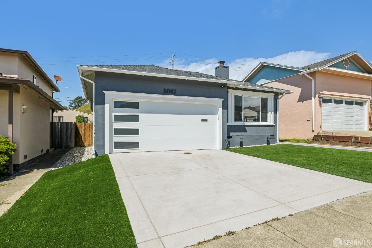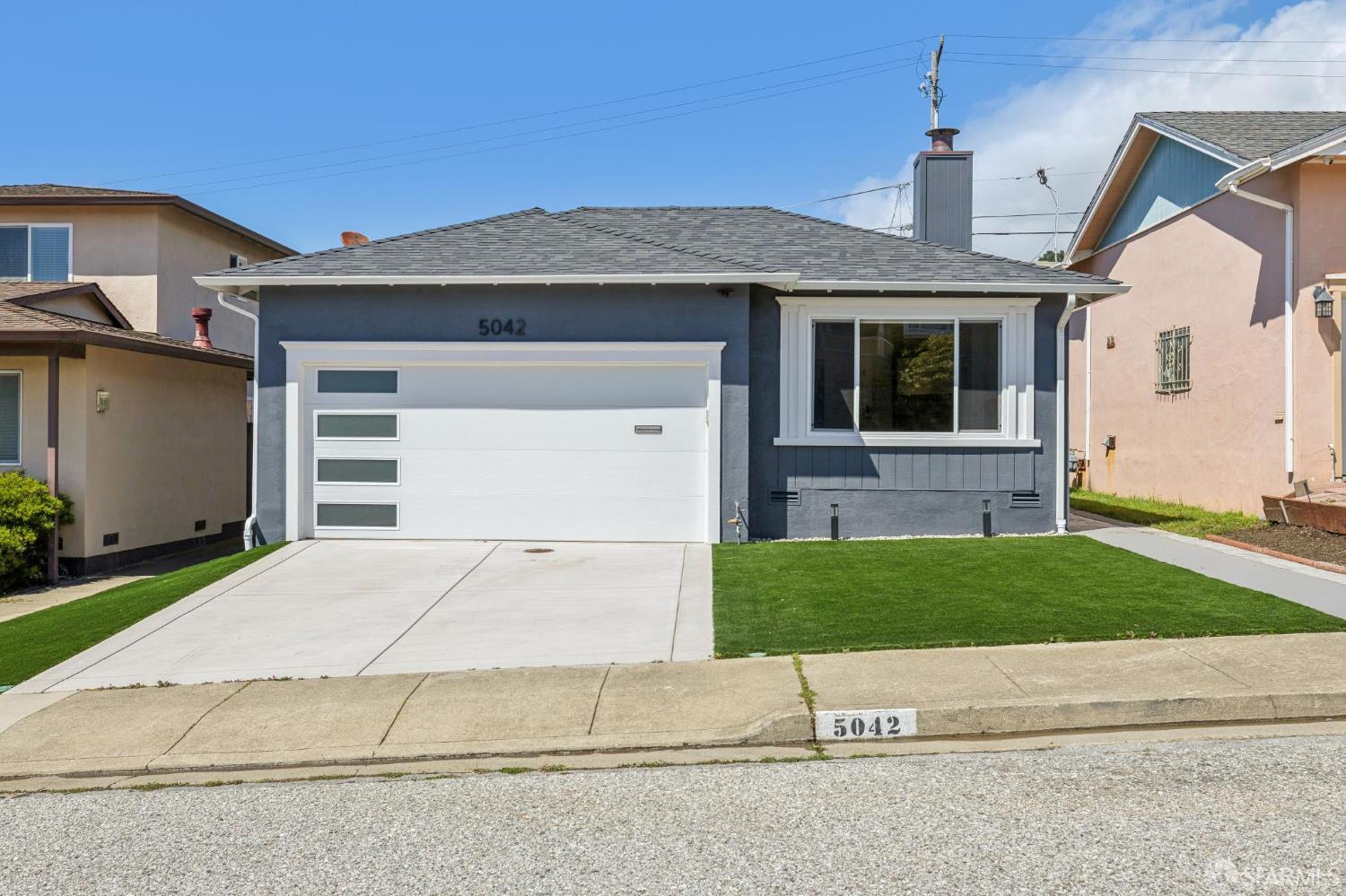 Welcome to 5042 Palmetto Avenue, a beautifully remodeled coastal retreat offering an unbeatable location on the border of Pacifica and Daly City. This stunning 3-bedroom, 2-bathroom home has been thoughtfully updated throughout-truly a perfect ten! Step inside to discover warm hardwood floors and an inviting living room anchored by a charming wood-burning fireplace. The formal dining area flows freely into the open-concept kitchen and the space is designed for both everyday living and entertaining, featuring handsome shaker cabinetry, sleek quartz countertops, tile backsplash and stainless steel appliances. The beautifully remodeled bathrooms offer modern finishes, with the primary suite showcasing a dual vanity and over-sized walk in shower with elegant tile work. Recent upgrades include a new roof, new hvac, upgraded plumbing, an upgraded electrical panel, a new tankless water heater, a new garage door, and a freshly refinished driveway. Additional features include dual-pane windows, mirrored closet doors, convenient indoor laundry, and a spacious two-car attached garage. The home is also sewer lateral compliant. Outside, relax in the perfectly manicured low maintenance yard and enjoy the newly paved side patio, thoughtfully finished with stylish pavers. Easy freeway access for commuters and just minutes from San Francisco International Airport, this home also offers close proximity to delightful Manor Plaza restaurant and shops, Safeway, beloved Mazzetti's Bakery, and Starbucks. Set in a neighborhood known for its breathtaking ocean views, you'll love embracing the sought-after Pacifica lifestyle, where beaches, whale watching, hiking trails, surfing, and coastal sunsets are all just steps away!