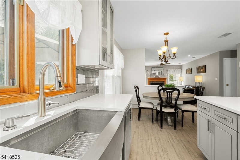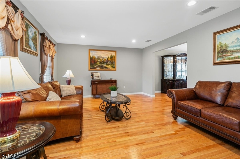 Pride of ownership shines in this move-in ready 5BR Colonial in desirable Forest Hollow, Succasunna. A paver walkway leads to a covered front porch and 2-story foyer opening to the living room, formal dining room, and family room with gas fireplace. Updated powder room, and bright 3-season sunroom overlook a maintenance-free deck and private fenced yard. Renovated eat in kitchen features center island, custom cabinetry, quartz counters, backsplash, farm sink, and premium appliances. Additional highlights include hardwood flooring, recessed lighting, ceiling fans, 1st-floor laundry, and 2-car garage with main level entry. Finished full basement offers flexible living space and lots of storage. Public utilities & natural gas. Sidewalk-lined, tree lined street near schools, Horseshoe Lake, Rec Complex, shopping, Routes 10, 80, 206, 46 and mass transit.