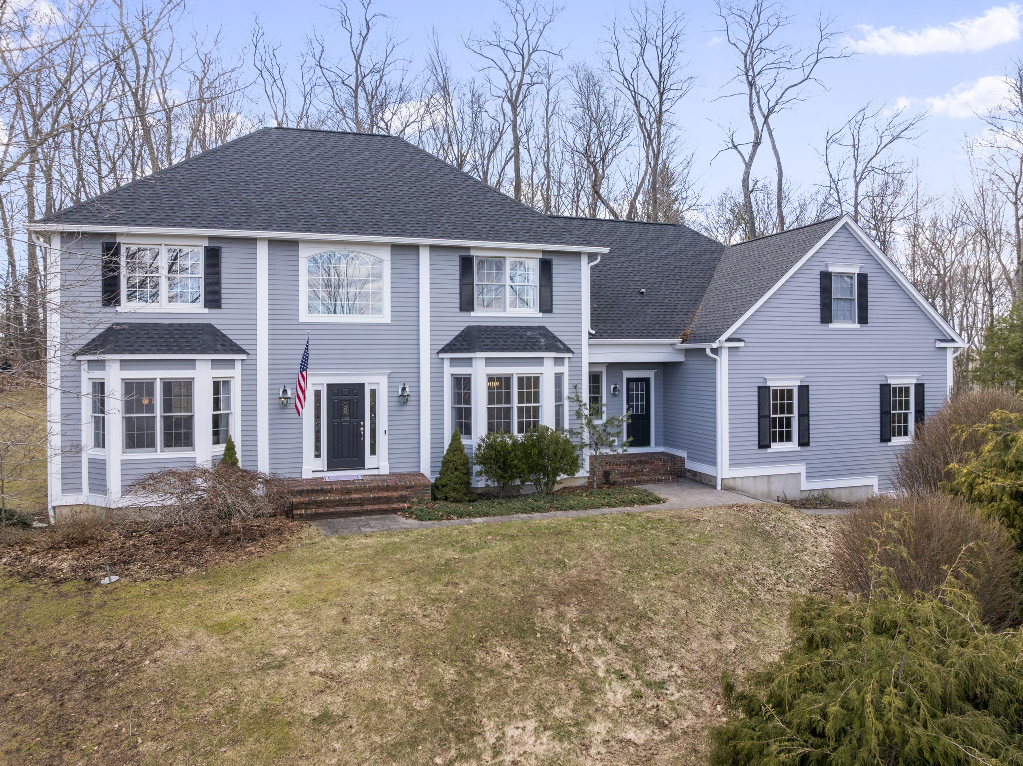 An exceptional offering awaits in Avon - This magnificent residence spans nearly 3,800 square feet and is the perfect synthesis of New England charm and intentional, quality construction. Situated on over 1 acre, this home has seen approx. $100K in upgrades for modern performance, comfort, and efficiency. The first floor features a double-height entryway, living room, home office, dining room, and family room with a new granite gas fireplace. The open, light-filled eat-in kitchen boasts high-end stainless steel appliances, including a new Thermador 48" full-size refrigerator and Thermador dishwasher. The second floor offers the primary suite with ensuite bath, three additional bedrooms, two additional full baths, a dedicated laundry room, and a versatile, HUGE 21' x 32' media room with vaulted ceilings, a gas fireplace, and three skylights. Notable upgrades include: new roof & gutters; whole exterior wood siding re-painted; refinished main level floors; upper level carpets removed and new wood floors installed; chimney brick work and sealant done; a new Lennox gas furnace and tankless water heater for high-efficiency climate control; CNG and natural gas dryer lines; a Tesla L2 60a EV charger; and three new Chamberlain IQ low-noise garage door openers. This is a fantastic, move-in ready property in a highly desirable neighborhood, just 5 minutes to the Farmington River waterfront and historic downtown Collinsville. Schedule your private tour today!