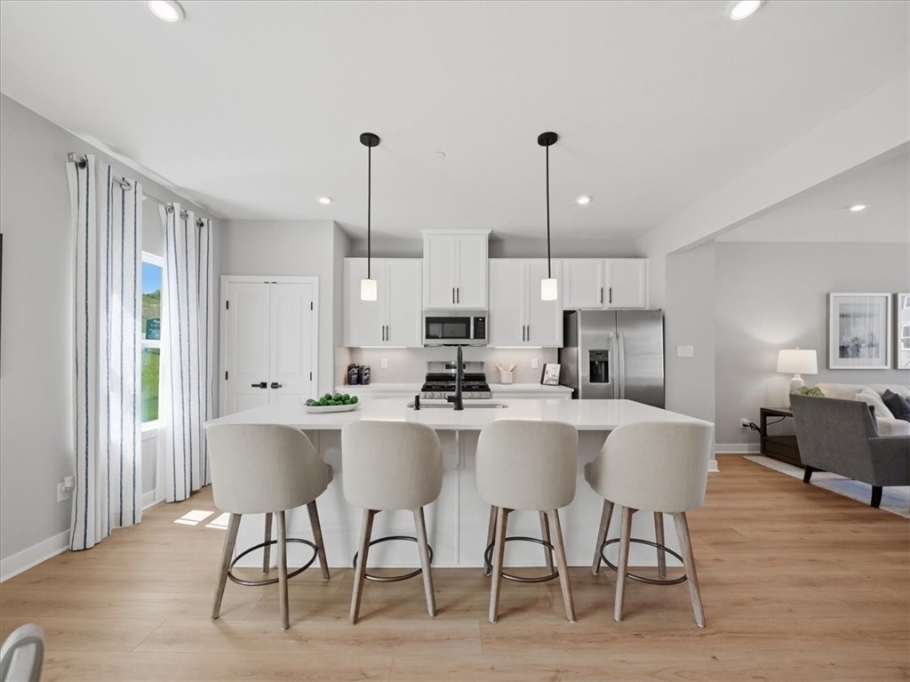 Welcome to 201 Yellowwood Court - where style, space, and convenience come together in this stunning END UNIT with added privacy and extra parking. The open-concept main level is designed to impress, featuring a crisp white kitchen with a large island for seating, sleek quartz countertops, a gas range, and a chic tile backsplash - all flowing seamlessly into a bright, airy living room perfect for entertaining or relaxing. Upstairs, you'll find two spacious bedrooms with ample closet space, a well-appointed hall bath, and a convenient second-floor laundry with room for a side-by-side washer and dryer. The generous Primary Suite is a true retreat, complete with a huge walk-in closet and a private en-suite bath featuring a dual vanity and an oversized walk-in shower. The finished lower level offers versatile bonus space - ideal for a rec room, home office, or gym - adding even more functionality to this already exceptional home Enjoy community amenities such as the pickle ball court and pavillion. Located in the Trinity school district , this home offers easy access to RT 19, I-79, Shopping, Dining, Entertainment, South pointe and so much more.