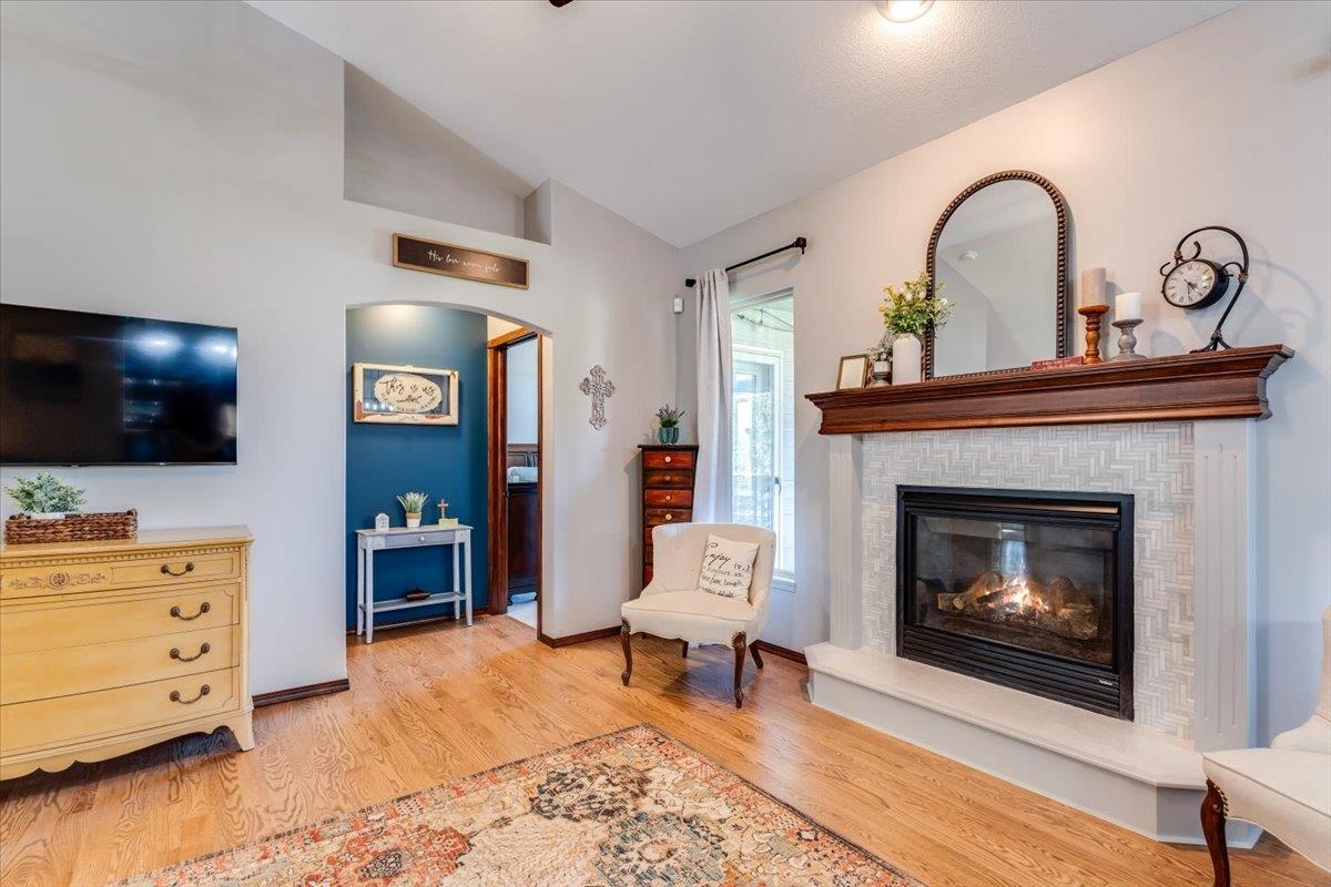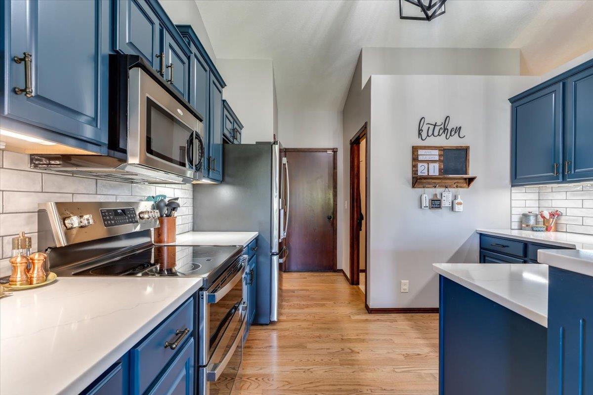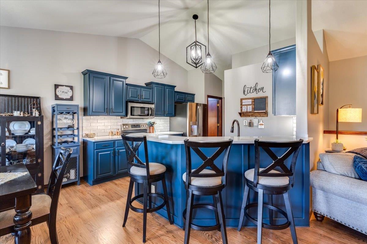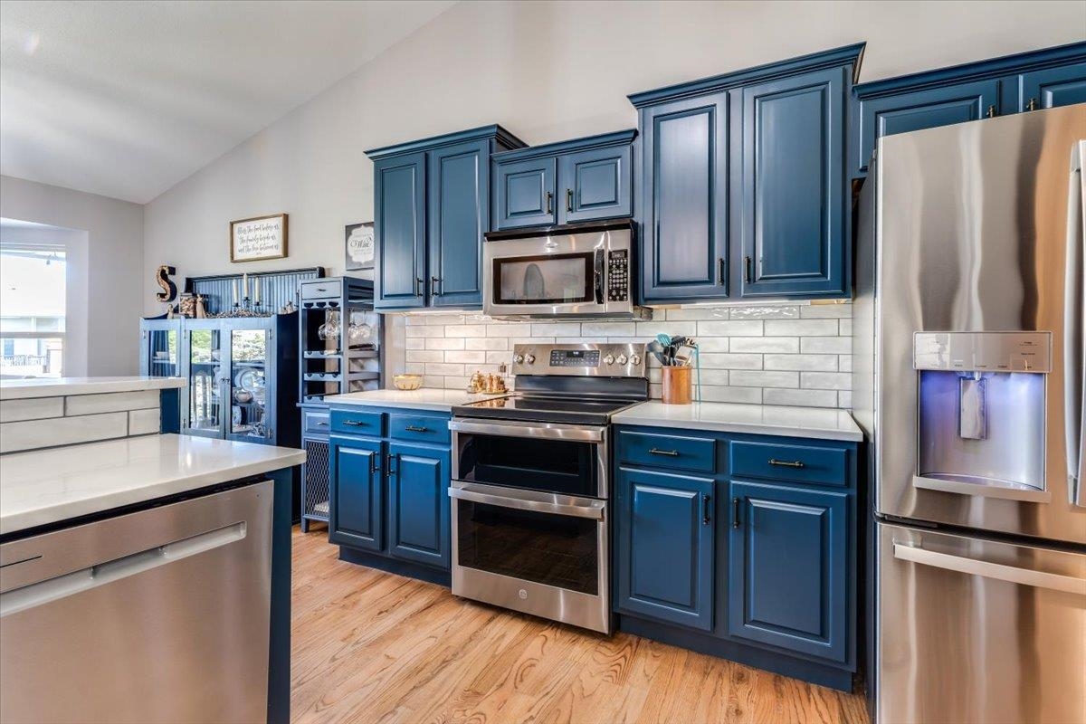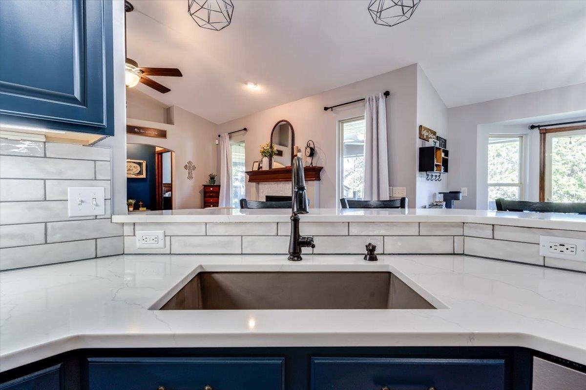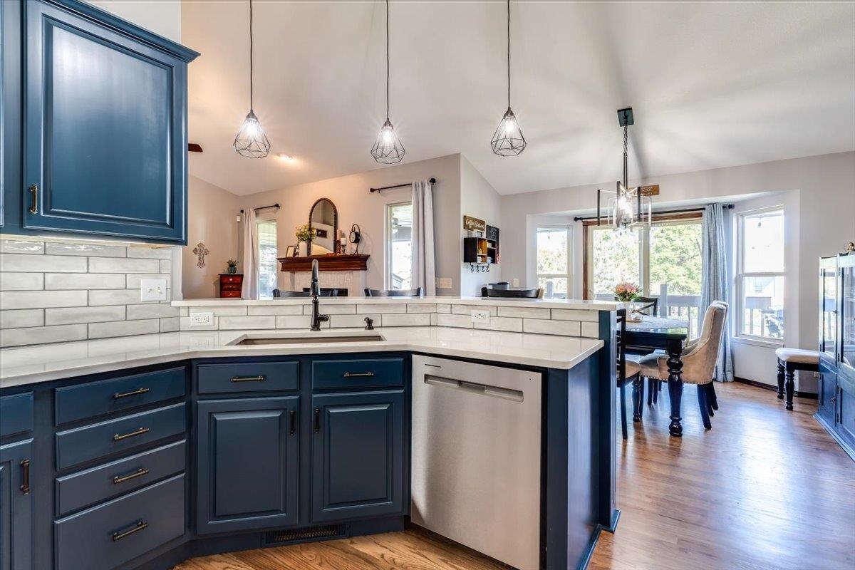 Welcome to Your Dream Home! Nestled in a sought-after neighborhood, this gorgeous property offers the perfect blend of comfort, style and beautiful setting. With 4 spacious bedrooms and 3 bathrooms, this home is designed for both relaxation and entertainment, ensuring you and your family have everything you need to create lasting memories. Experience the seamless flow between the living, dining, and kitchen areas, perfect for hosting gatherings or enjoying family dinners. Vaulted ceilings and abundant natural light create an inviting atmosphere. Delight in the well-appointed kitchen featuring modern appliances, beautiful and stylish blue cabinetry. and a sleek countertop, making it a chef's paradise. Enjoy your morning coffee at the breakfast bar or gather around the dining table for a home-cooked feast. The chic living room boasts stunning wood floors and an elegant fireplace, providing a cozy spot to unwind after a long day. Retreat to the spacious master suite, complete with large windows offering picturesque views. The ensuite bathroom features modern fixtures, ensuring a spa-like experience at home. The additional bedrooms are generously sized, perfect for family, guests, or even a home office. The huge family room and game area in the basement are an entertainer's dream! Updated with tasteful design elements, this versatile space can accommodate movie nights, game tournaments, or simply a space for relaxation, and includes an incredible wet bar area. Step outside to your private covered deck or the fantastic patio area, where you can soak in the gorgeous water views. The expansive backyard is perfect for summer barbecues, kids' play or simply enjoying the serene outdoors. Enjoy the stunning woodwork and high-quality finishes throughout, reflecting attention to detail and elegance. Located in a vibrant community with easy access to parks, schools, shopping, and dining, you'll have everything you need right at your doorstep. This beautifully updated home is not just a house; it's a lifestyle waiting for you. Don't miss the opportunity to make this dream home yours today!