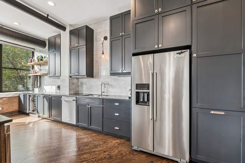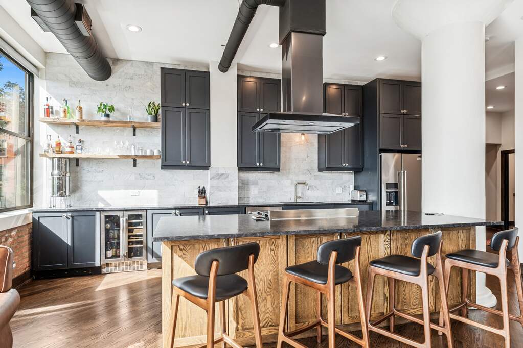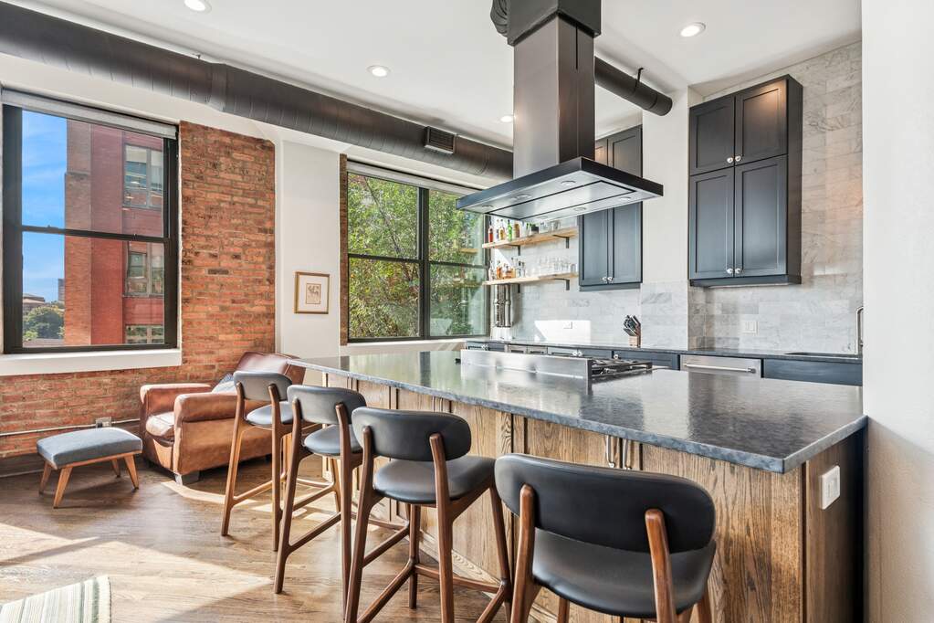 Stunning, full-scale renovation defines this 1,750 sq ft 3-bedroom, 2.1-bath true concrete loft in the heart of the vibrant West Loop. Completely reconfigured & rebuilt in 2021, this exceptional south/east corner residence showcases refined luxury, impeccable craftsmanship, and meticulous attention to detail thru-out. Bathed in natural light all day, the home offers open, airy views above the treetops with the downtown skyline as a striking backdrop. Authentic loft character is preserved with exposed brick walls, dramatic concrete columns & beams, soaring 12' ceilings, and expansive commercial-grade windows-while all three bedrooms are fully enclosed for optimal privacy. The open-concept living, dining, and kitchen space is designed for both entertaining and everyday comfort. At its heart, a show-stopping gourmet eat-in kitchen blends elegance and function with custom bi-level two-tone cabinetry, built-in pantry, and a massive island topped with thick honed designer granite. Professional-grade KitchenAid SS appliances incl a 6-burner gas range, side-by-side refrig, new dishwasher, power vent hood, and wine fridge, all complemented by a full-height marble tile backsplash. Retreat to the expansive, sun-filled primary suite, easily accommodating a king-sized bed and additional furnishings, complete with an organized walk-in closet and blackout shades. The spa-inspired bath features a dual vanity, oversized glass-enclosed shower, and exquisite custom tilework. Two additional generously sized bedrooms each offer walk-in organized closets and beautifully appointed ensuite baths. Throughout the home, thoughtful upgrades elevate every space: stained diagonal real oak hardwood floors, rare overhead dimmable lighting in every room, newly refinished solid-core doors crafted from reclaimed wood, designer lighting, custom window treatments, ceiling fans, premium plumbing fixtures, and built-in wall-mounted speakers. A new high-efficiency Trane HVAC system ensures year-round comfort. This move-in ready residence leaves nothing overlooked. Ideally located just steps from renowned dining, coffee shops, Mariano's, Whole Foods Market, UIC Chicago, and the CTA Blue Line, with convenient access to I-90 and I-290. Situated within the highly regarded Skinner Elementary School district. Additional amenities include two heated garage parking spaces available for $30K each, extra storage for a monthly fee, two passenger elevators plus a large freight elevator, and high-speed internet included in the HOA. This is the one!